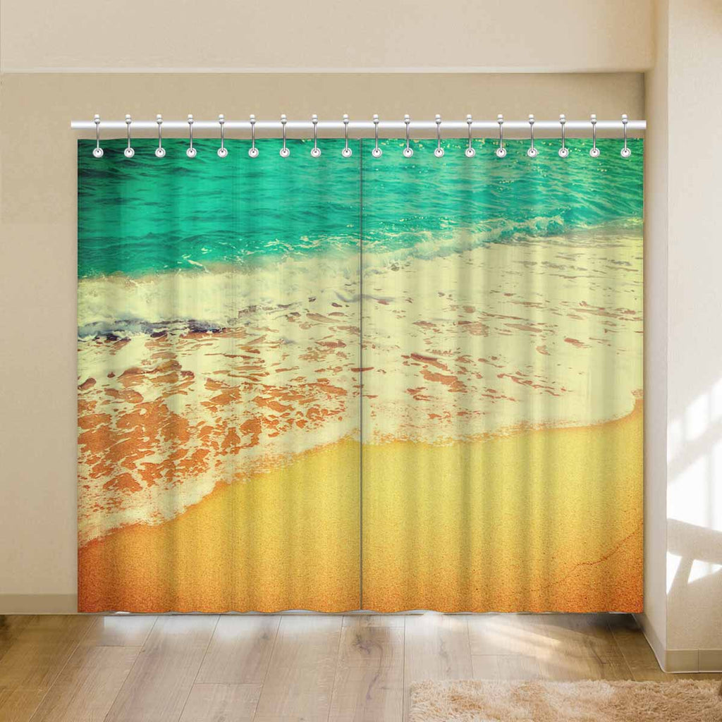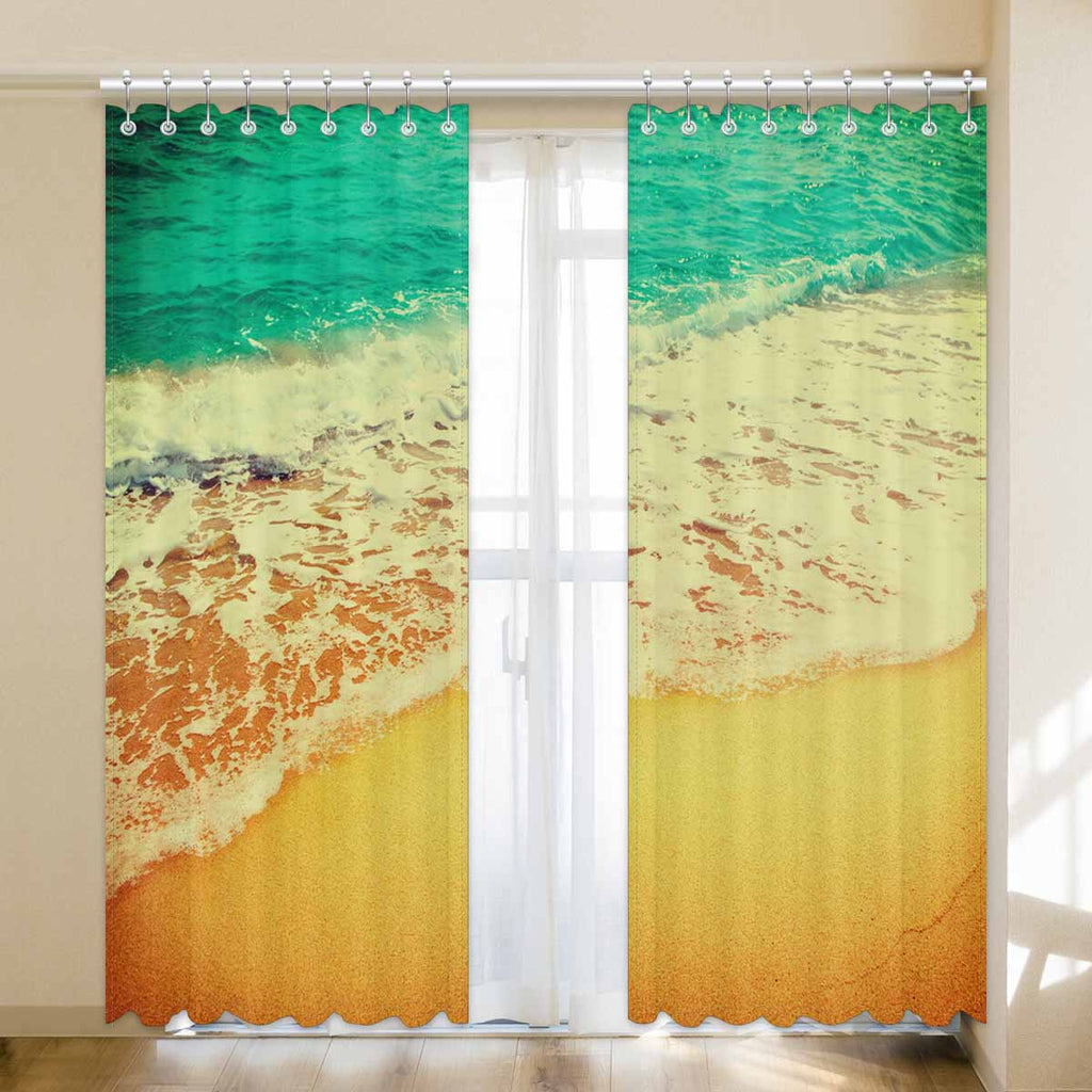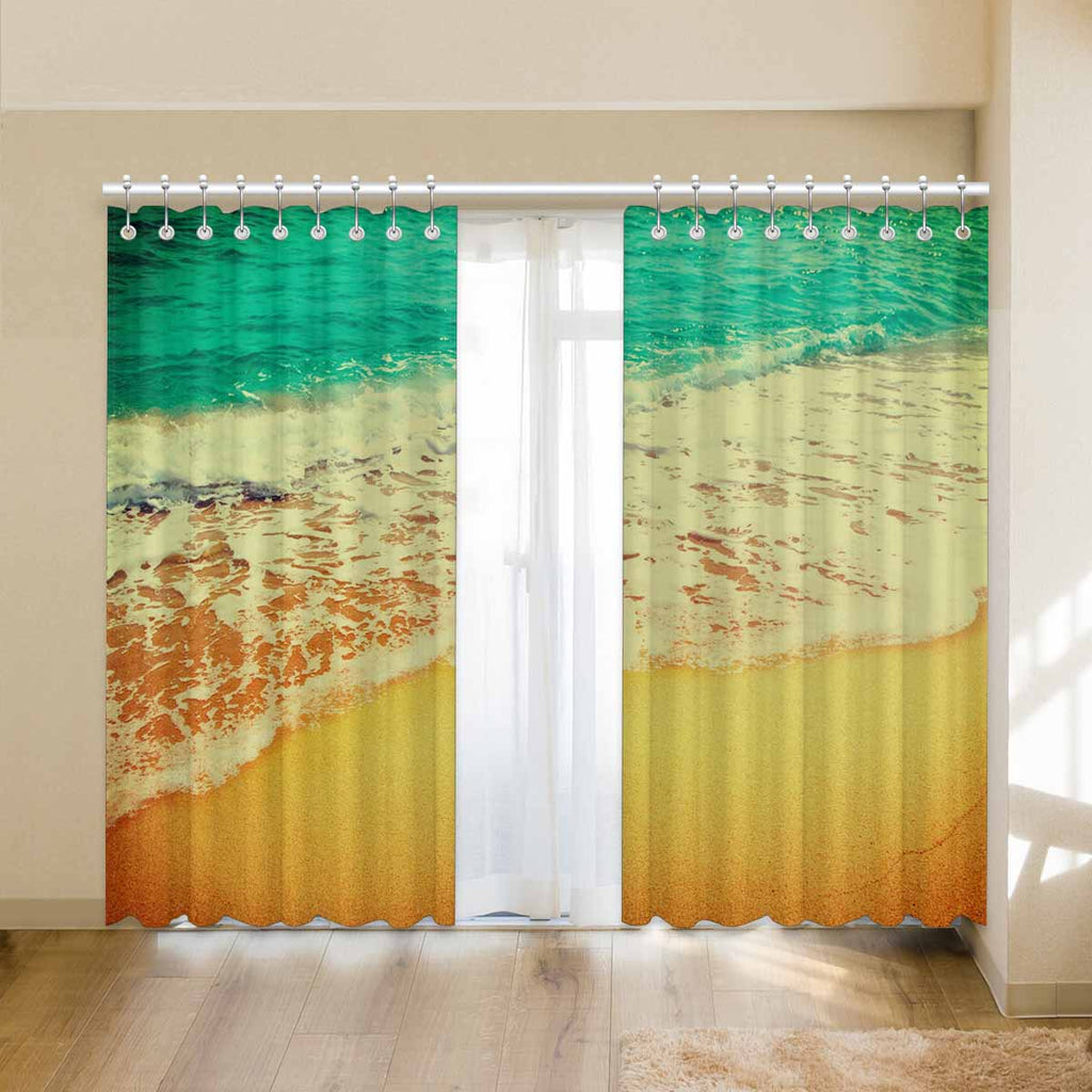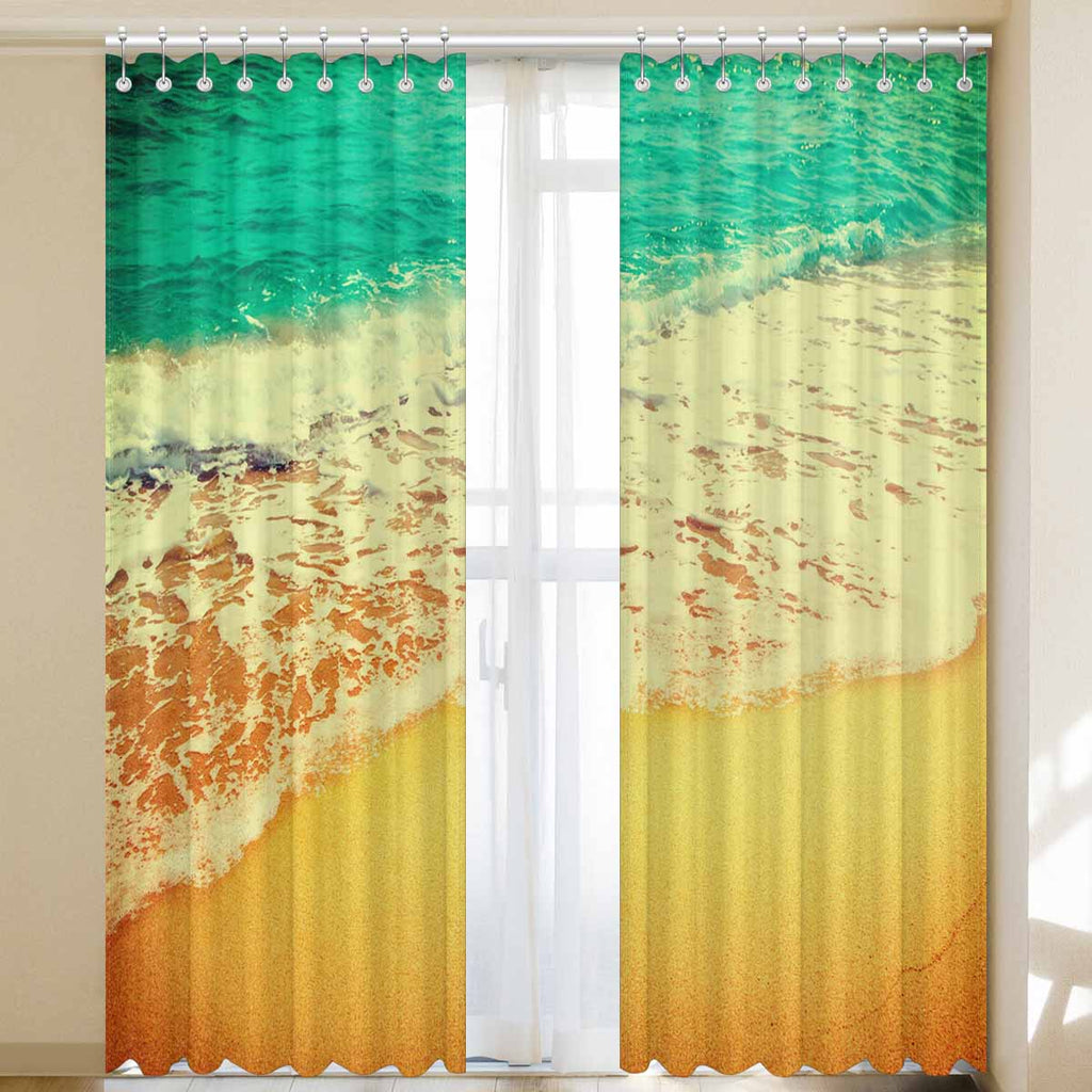 Window Curtains print Golden sand beach with waves
