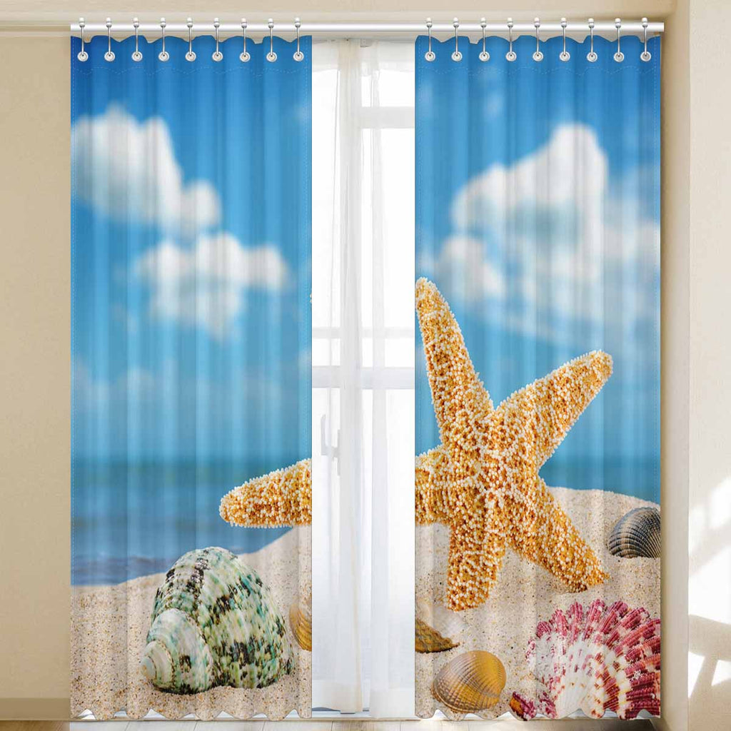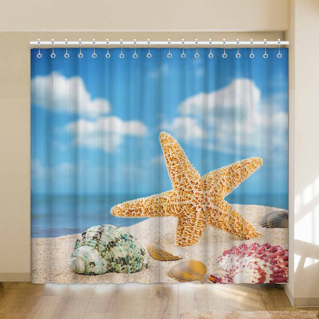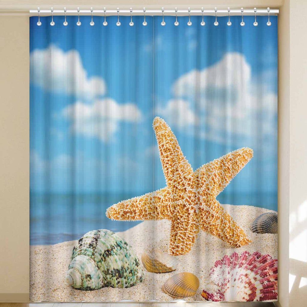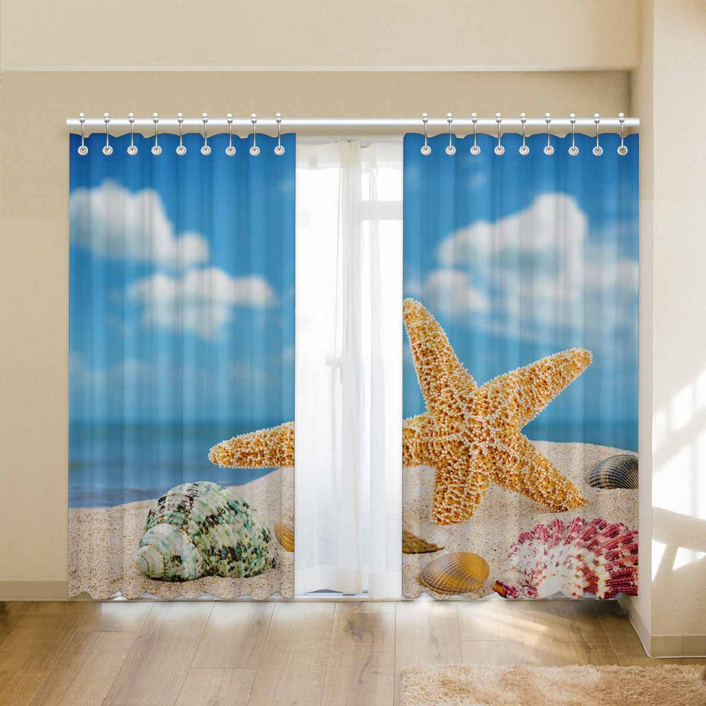 Window Curtains print Sea star and colorful shells