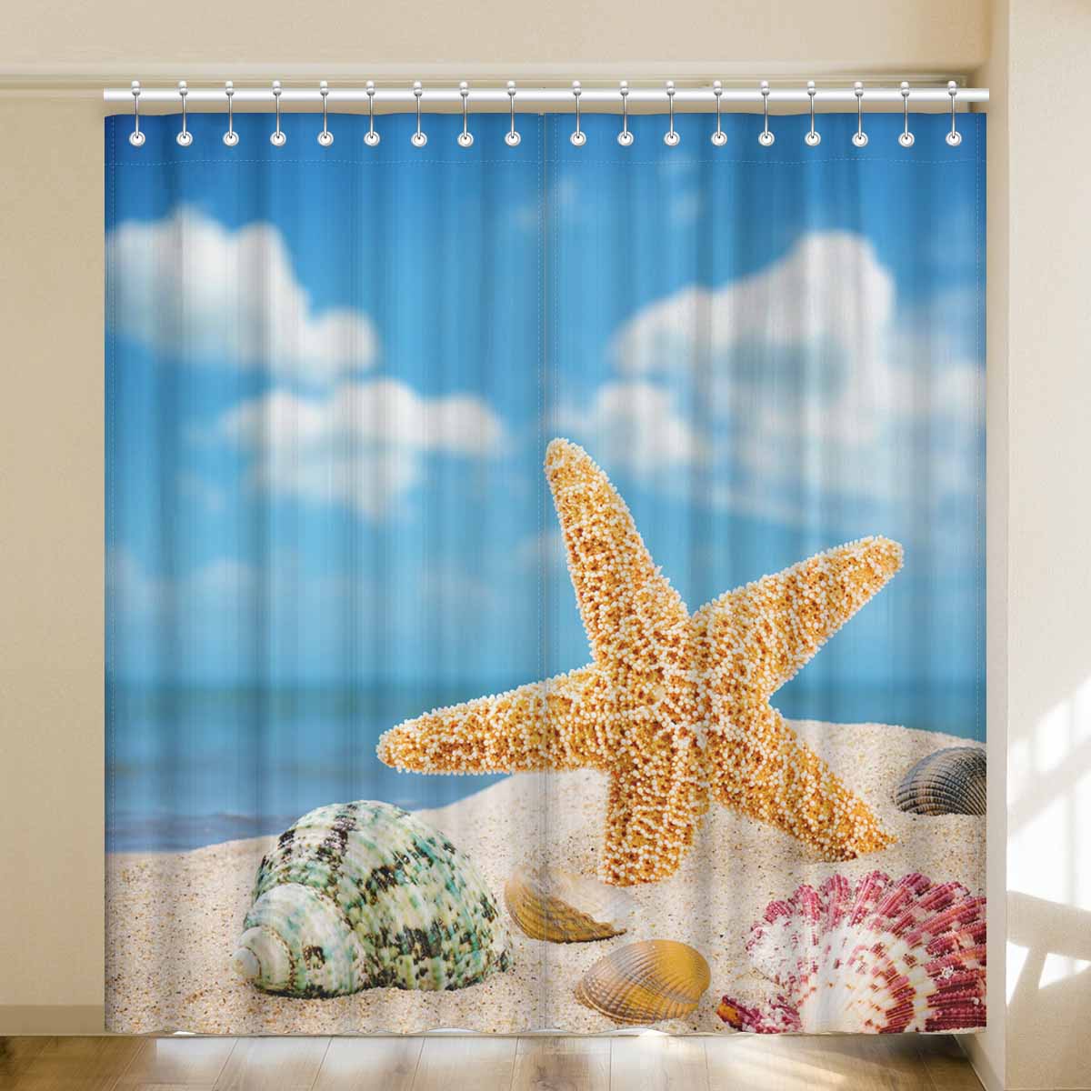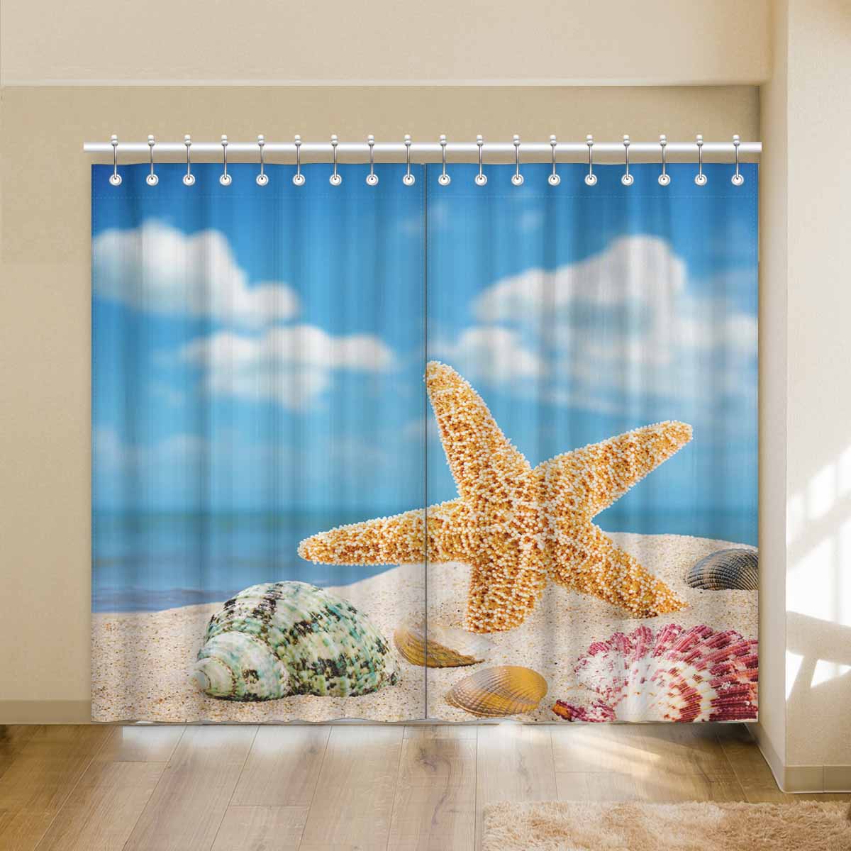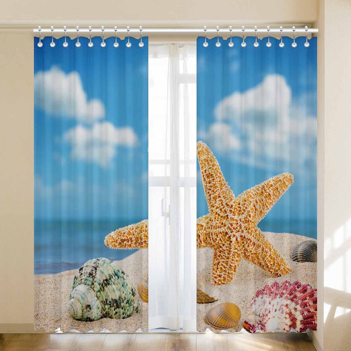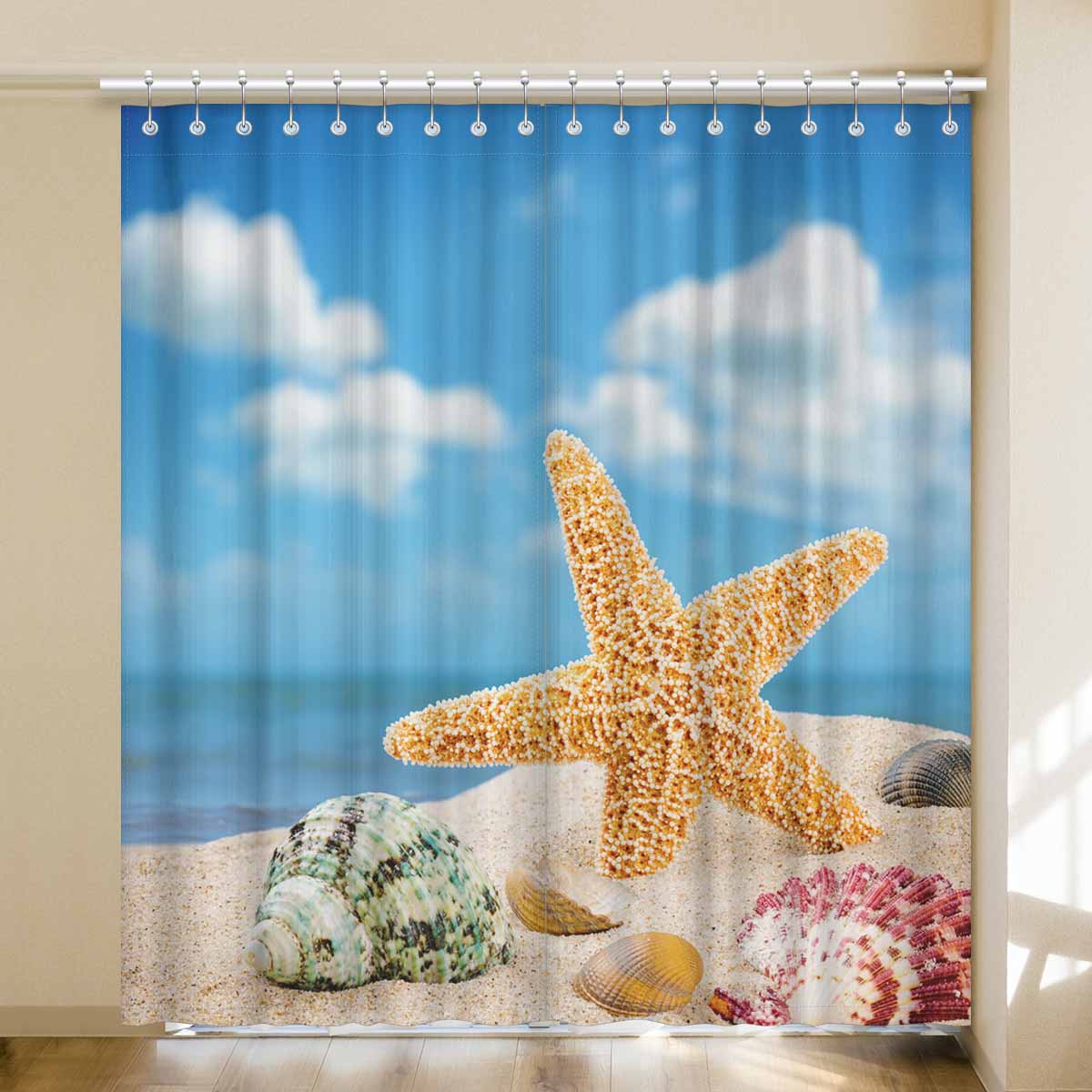 Window Curtains print Sea star and colorful shells
