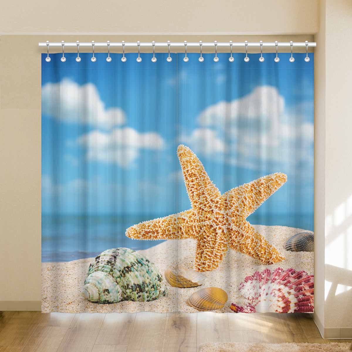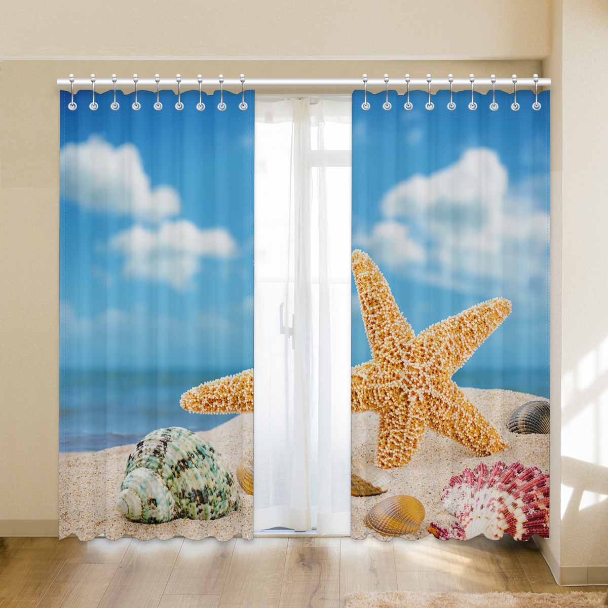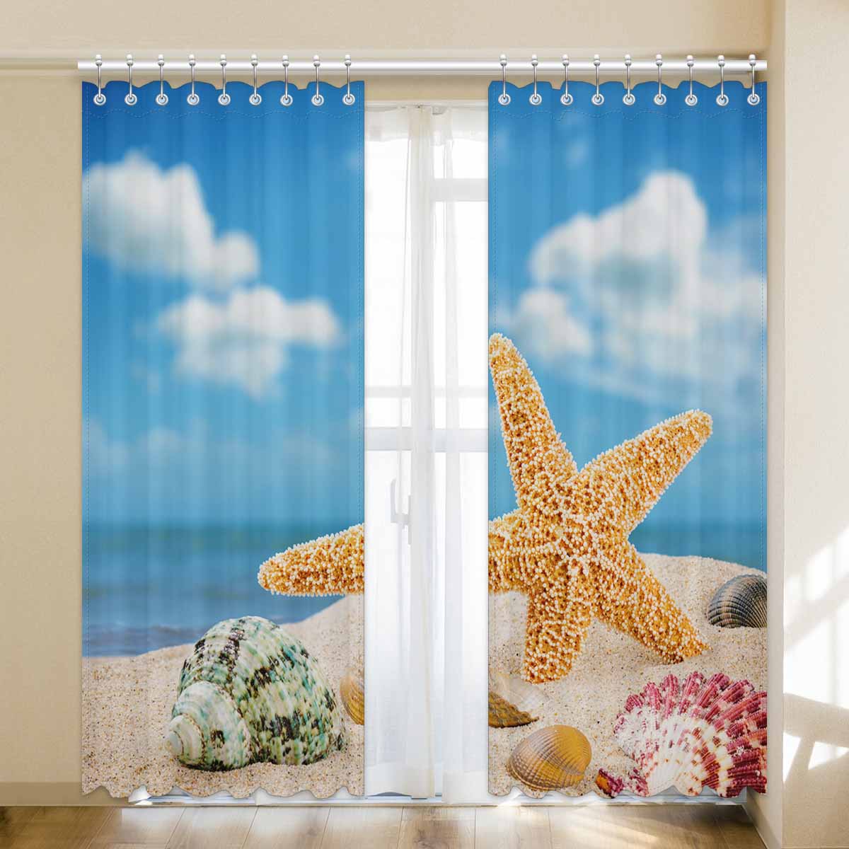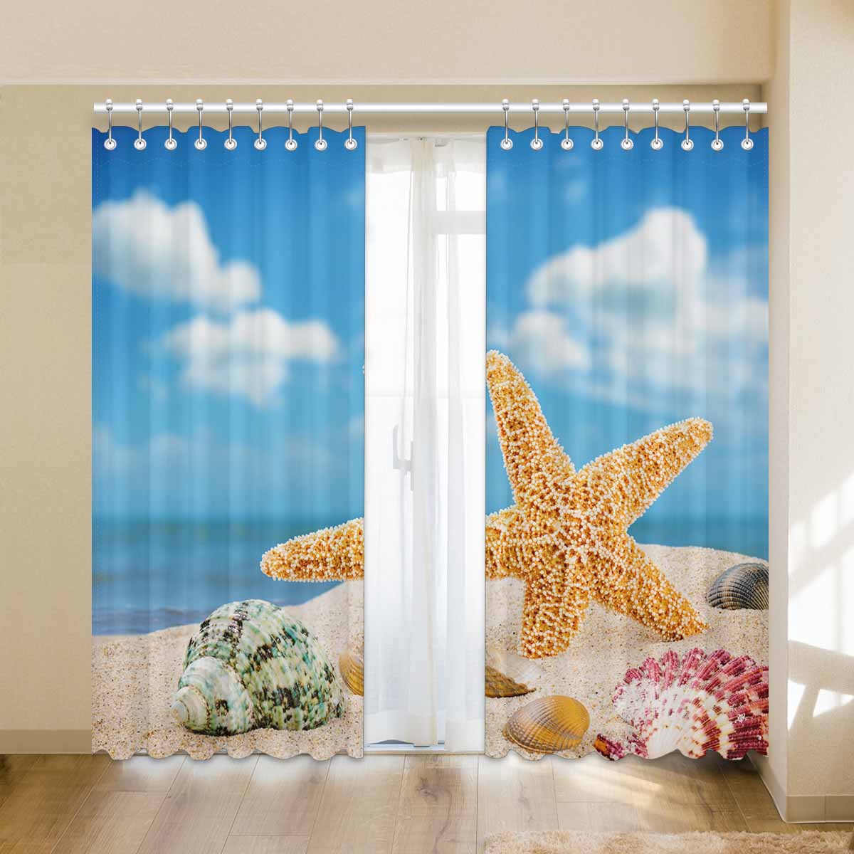 Window Curtains print Sea star and colorful shells