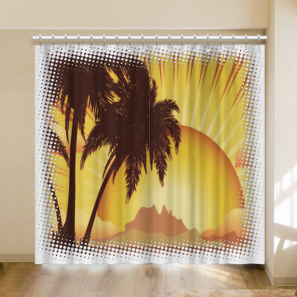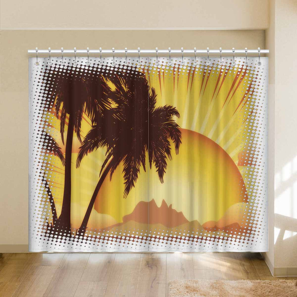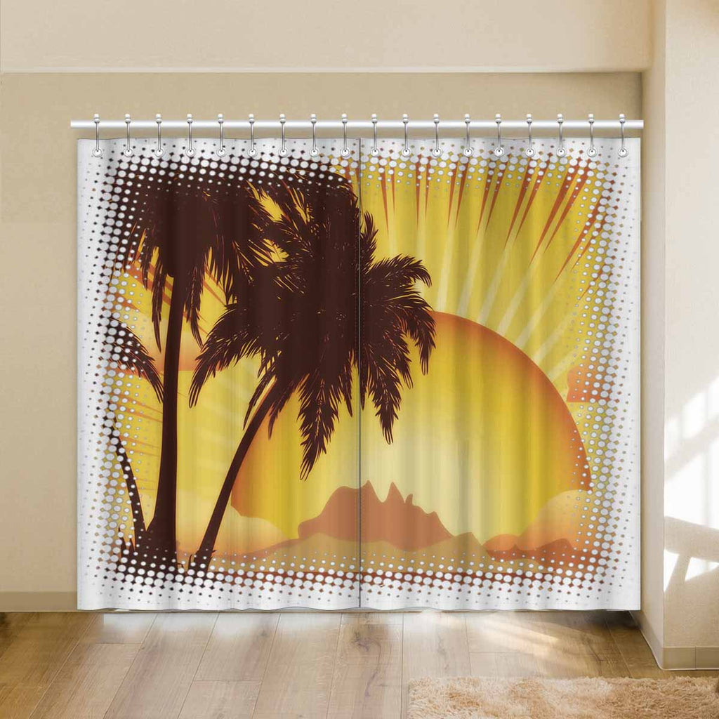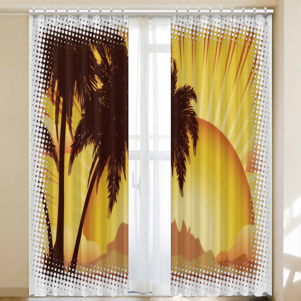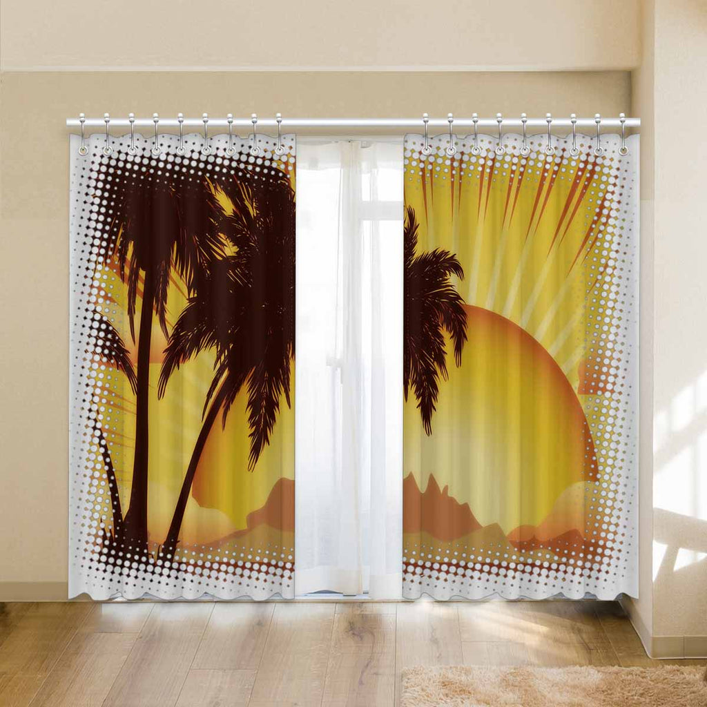 Window Curtains print sunset tropical island