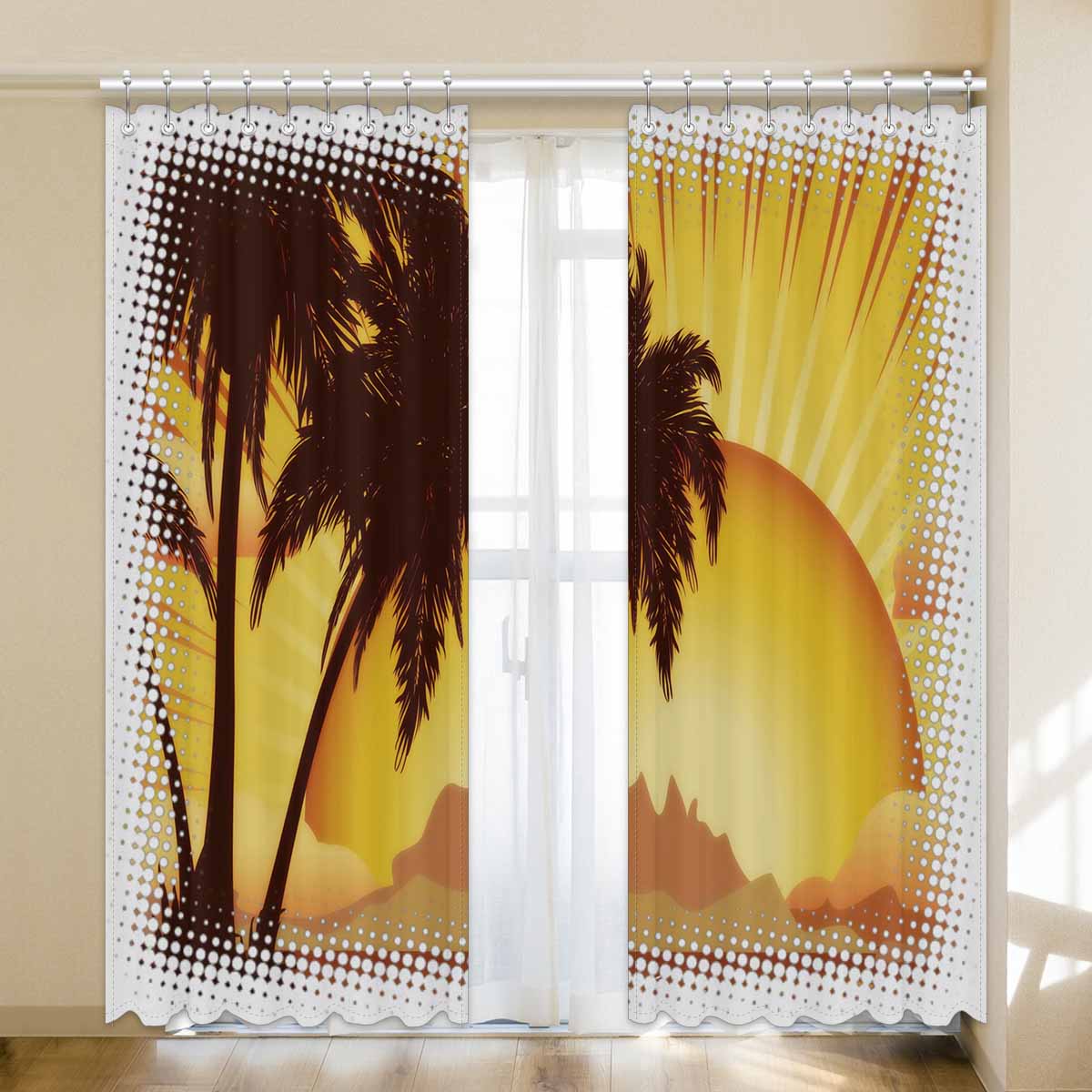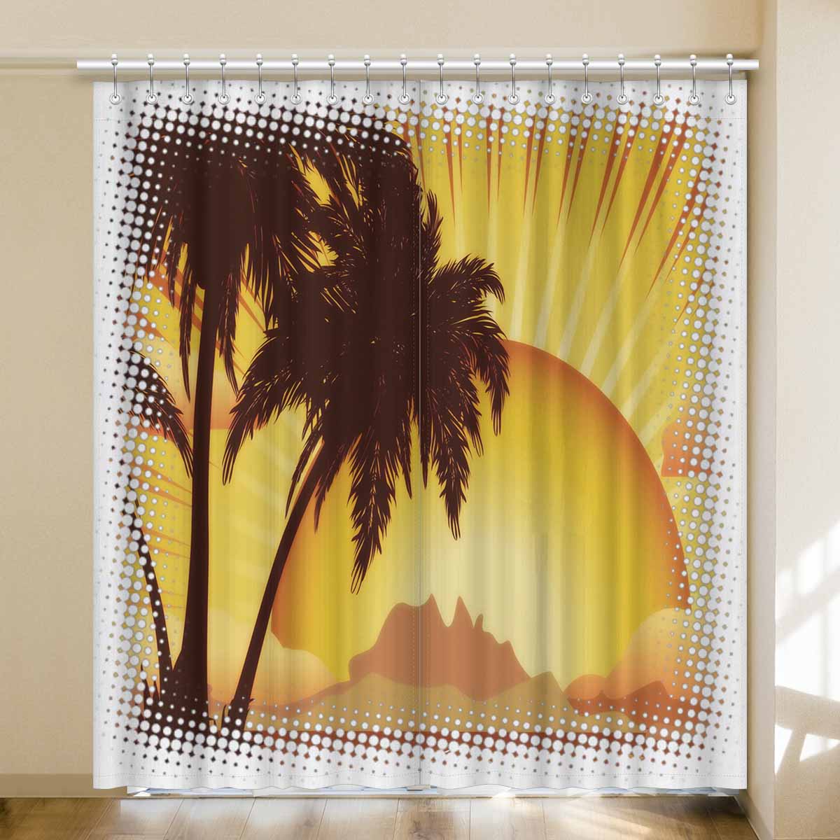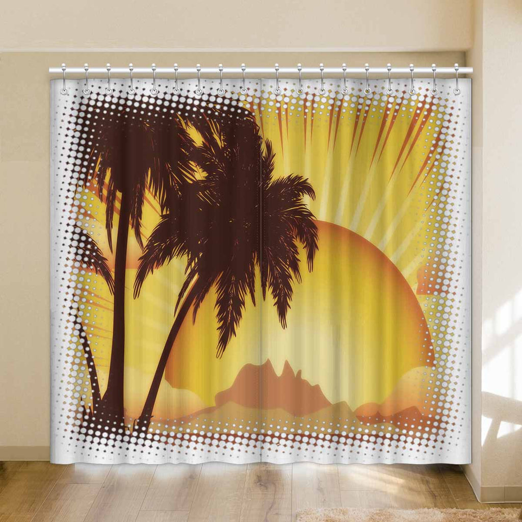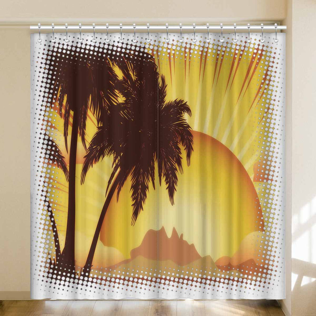 Window Curtains print sunset tropical island