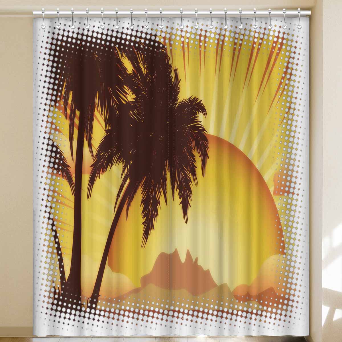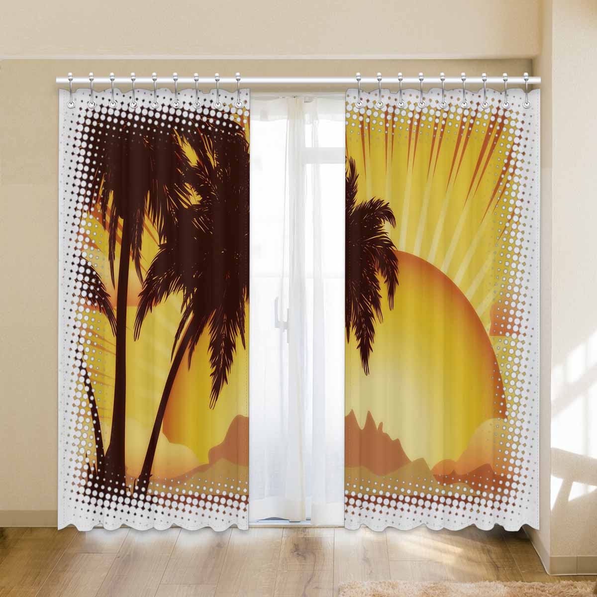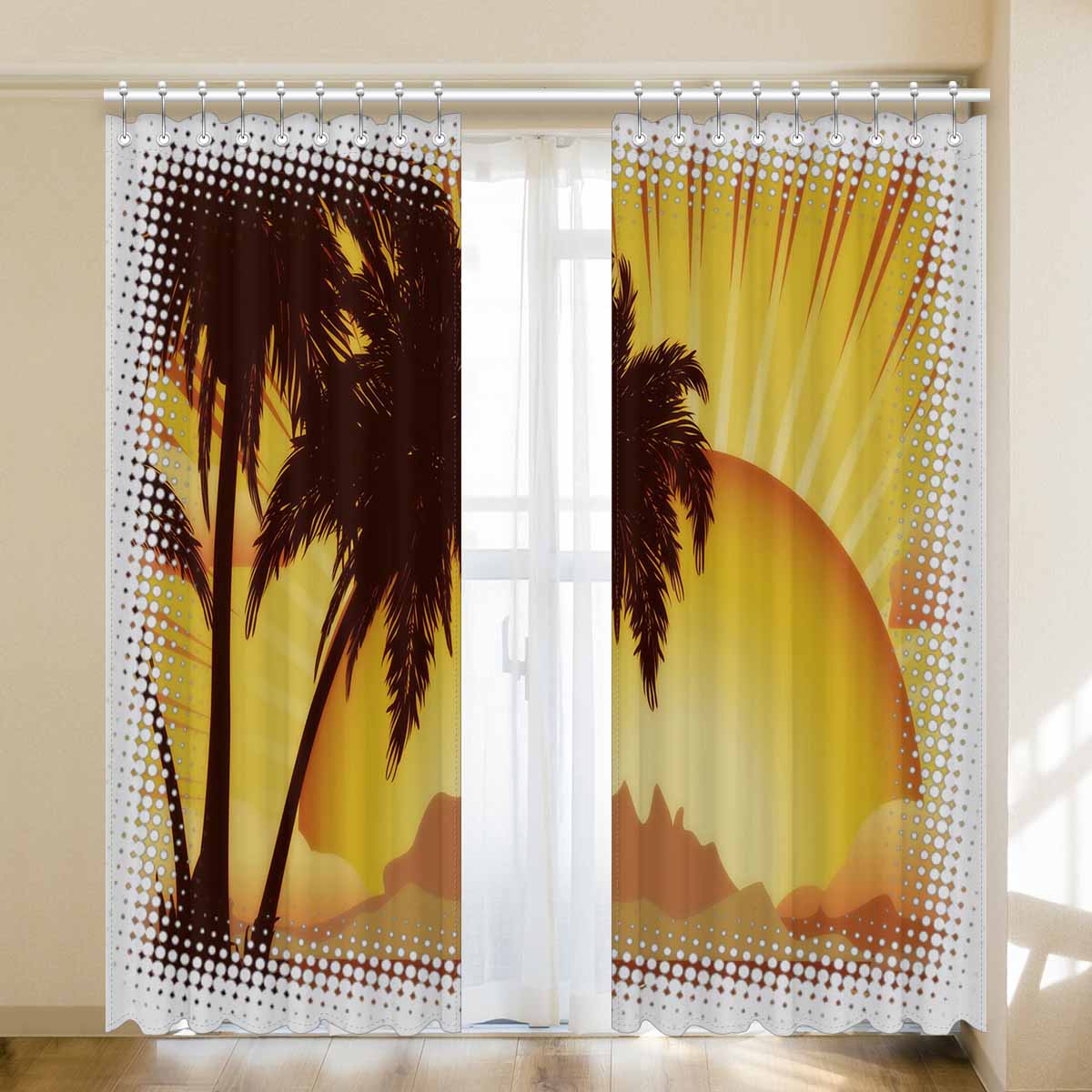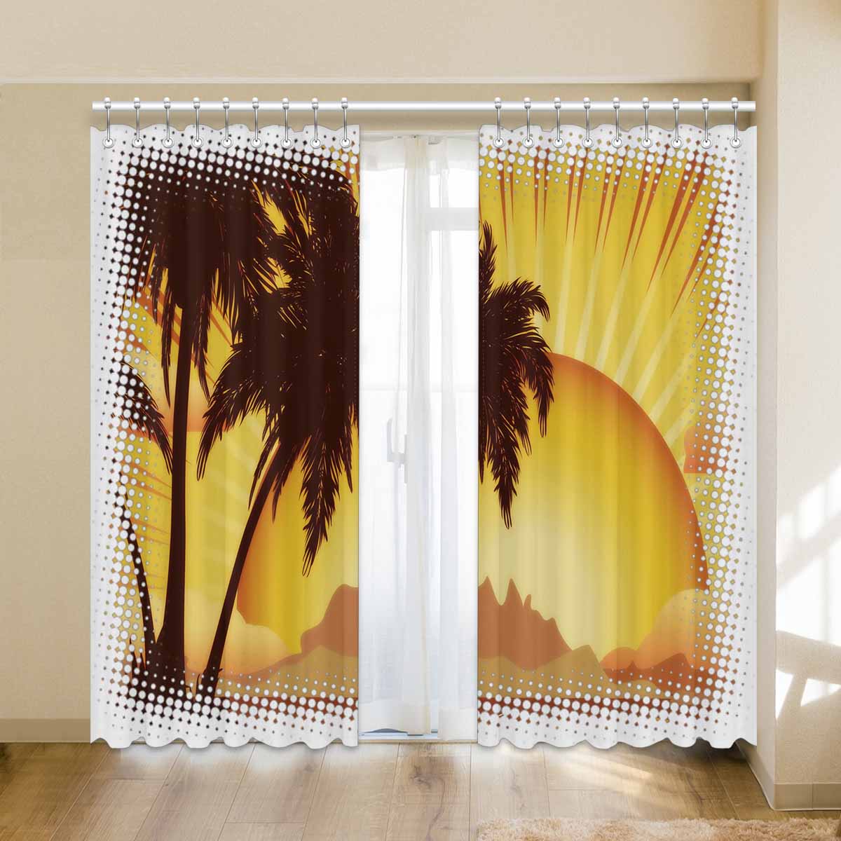 Window Curtains print sunset tropical island