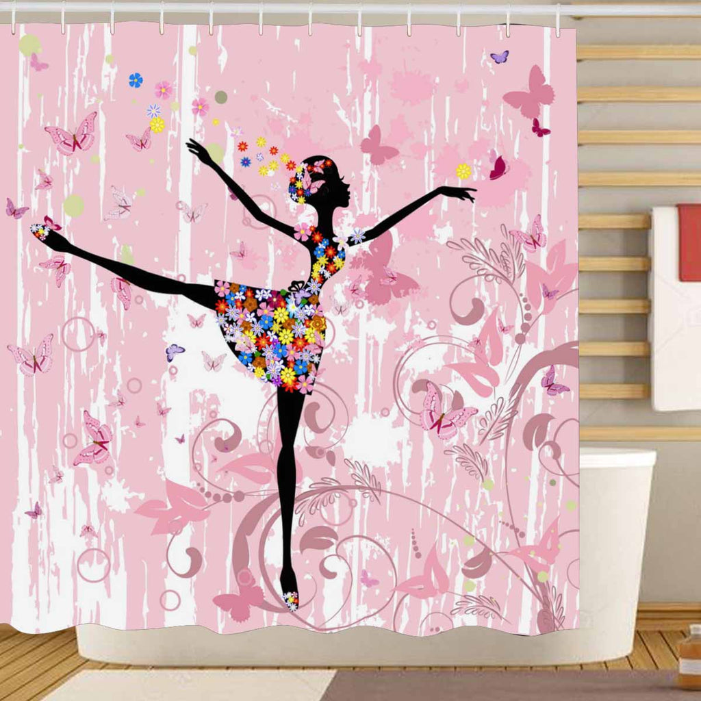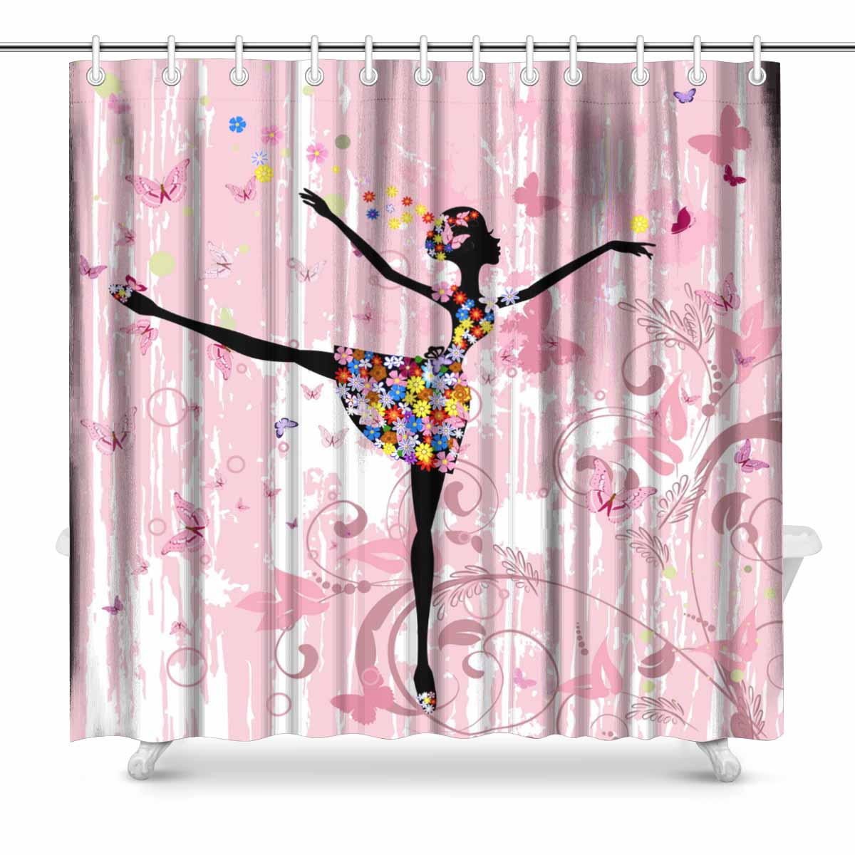 Shower Curtains print with Ballerina girl with flowers with butterflies grunge