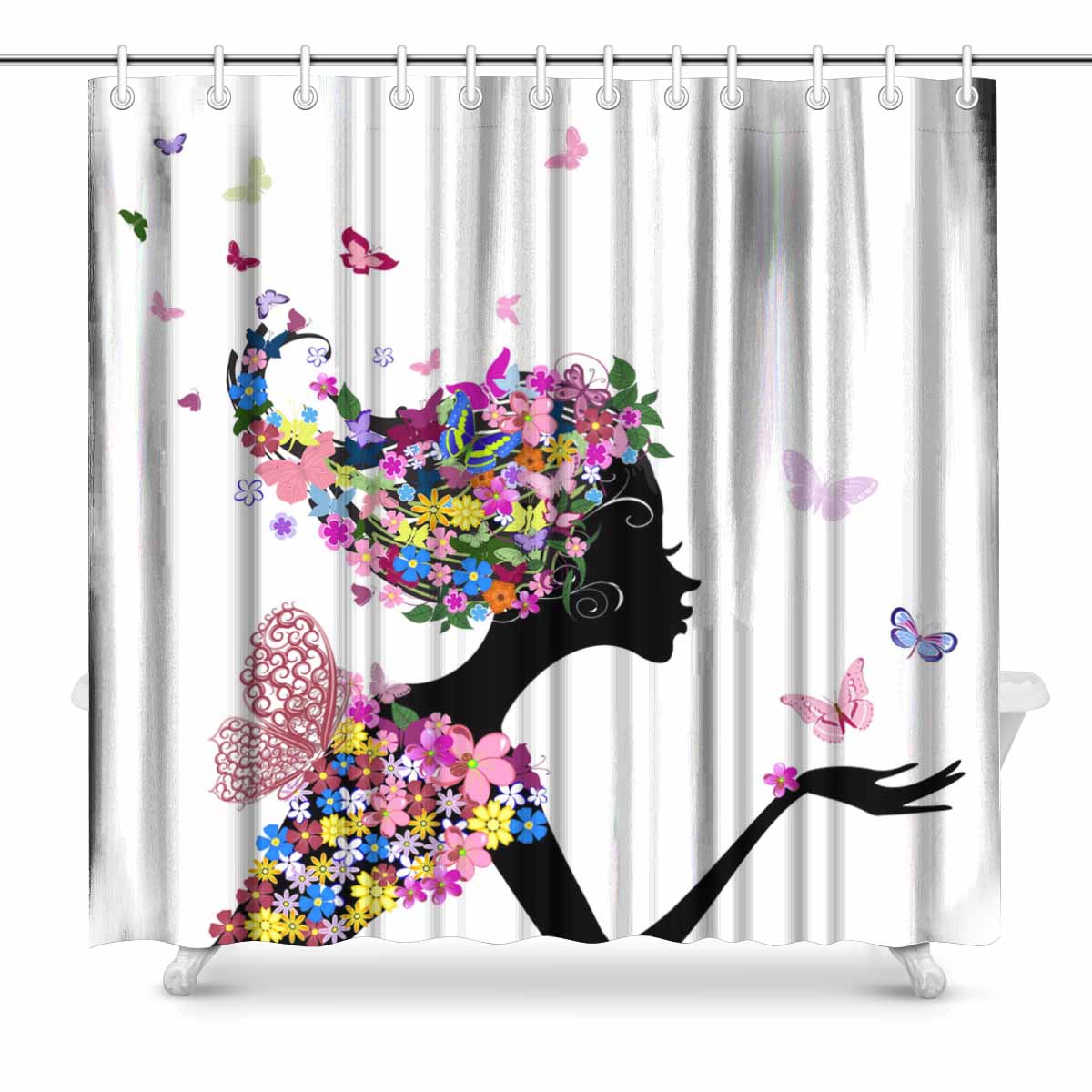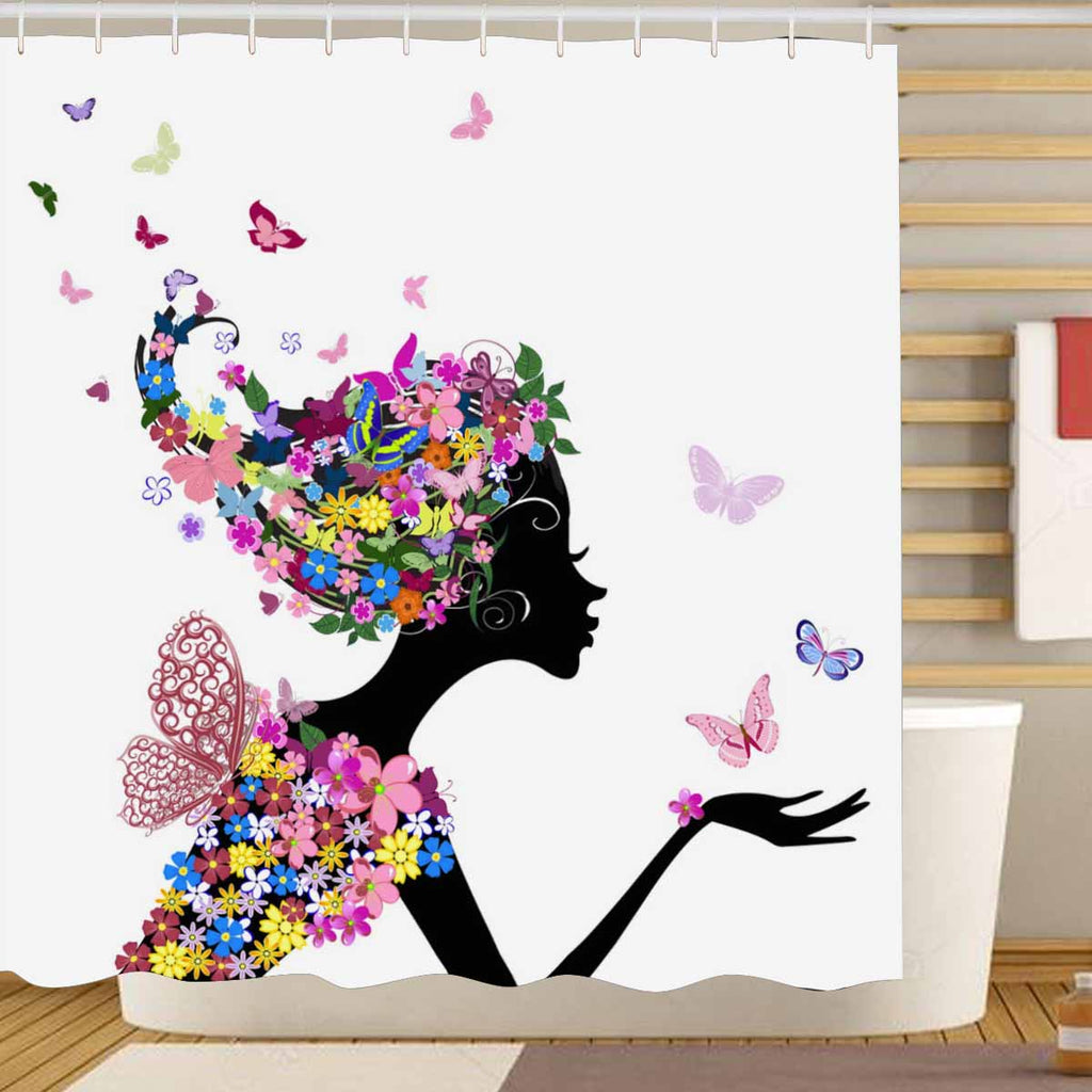 Shower Curtains print with Girl with flowers and butterflies