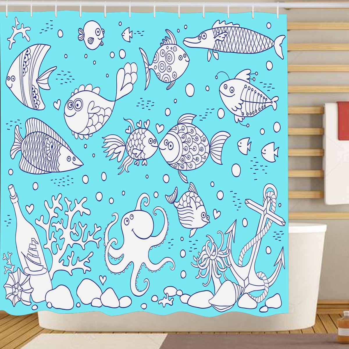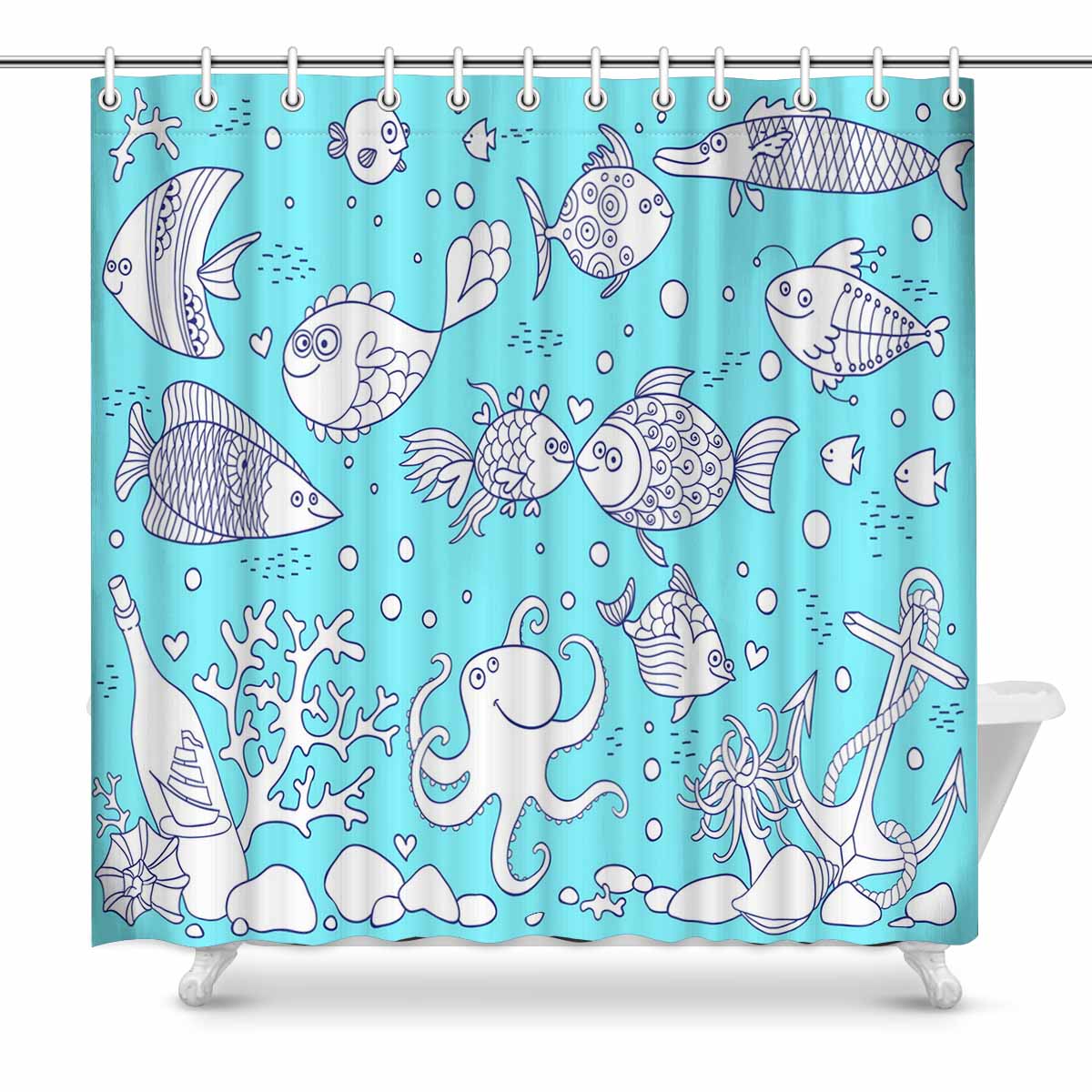 Themed for Kids Shower Curtains print with Aquarium with fish octopus corals anchor shells