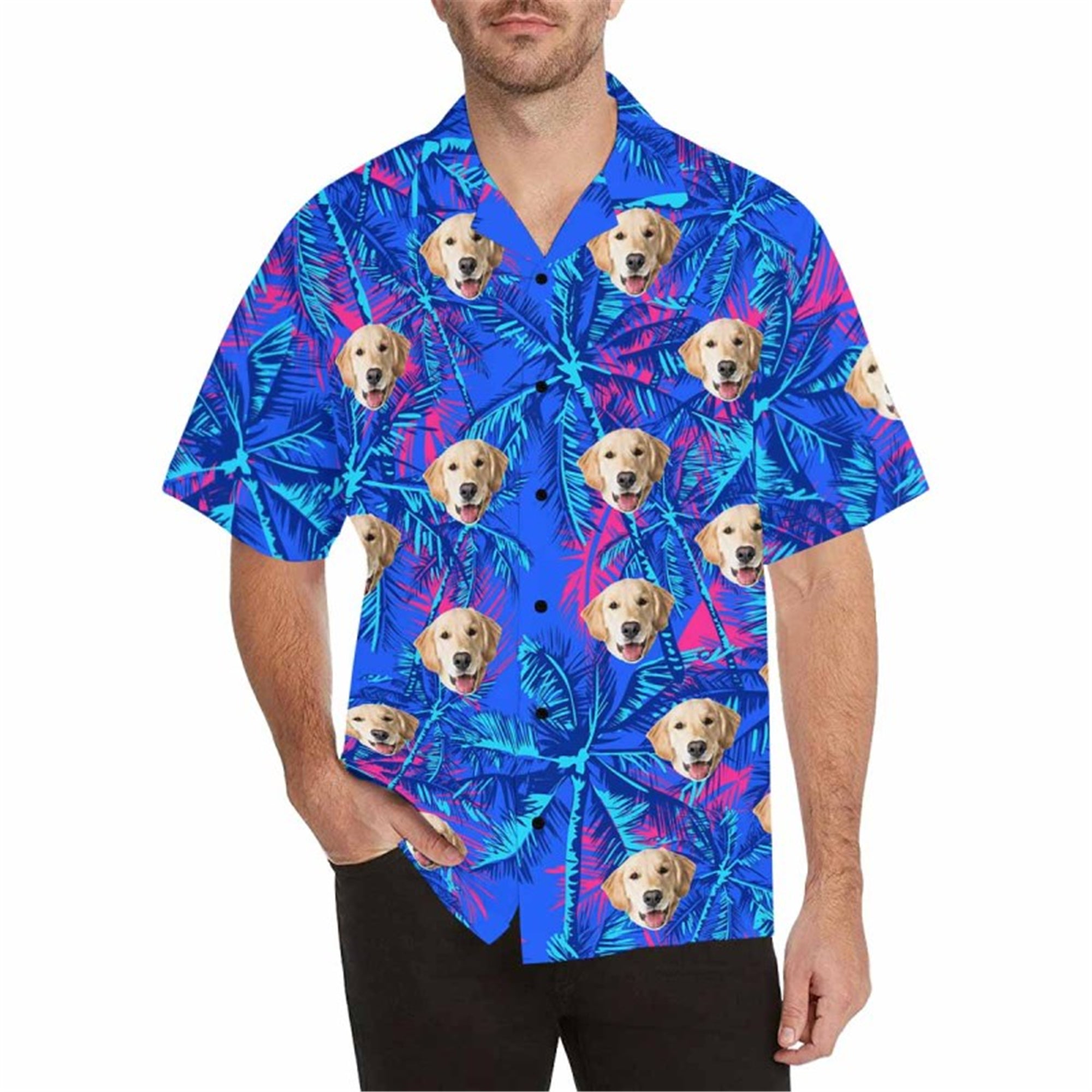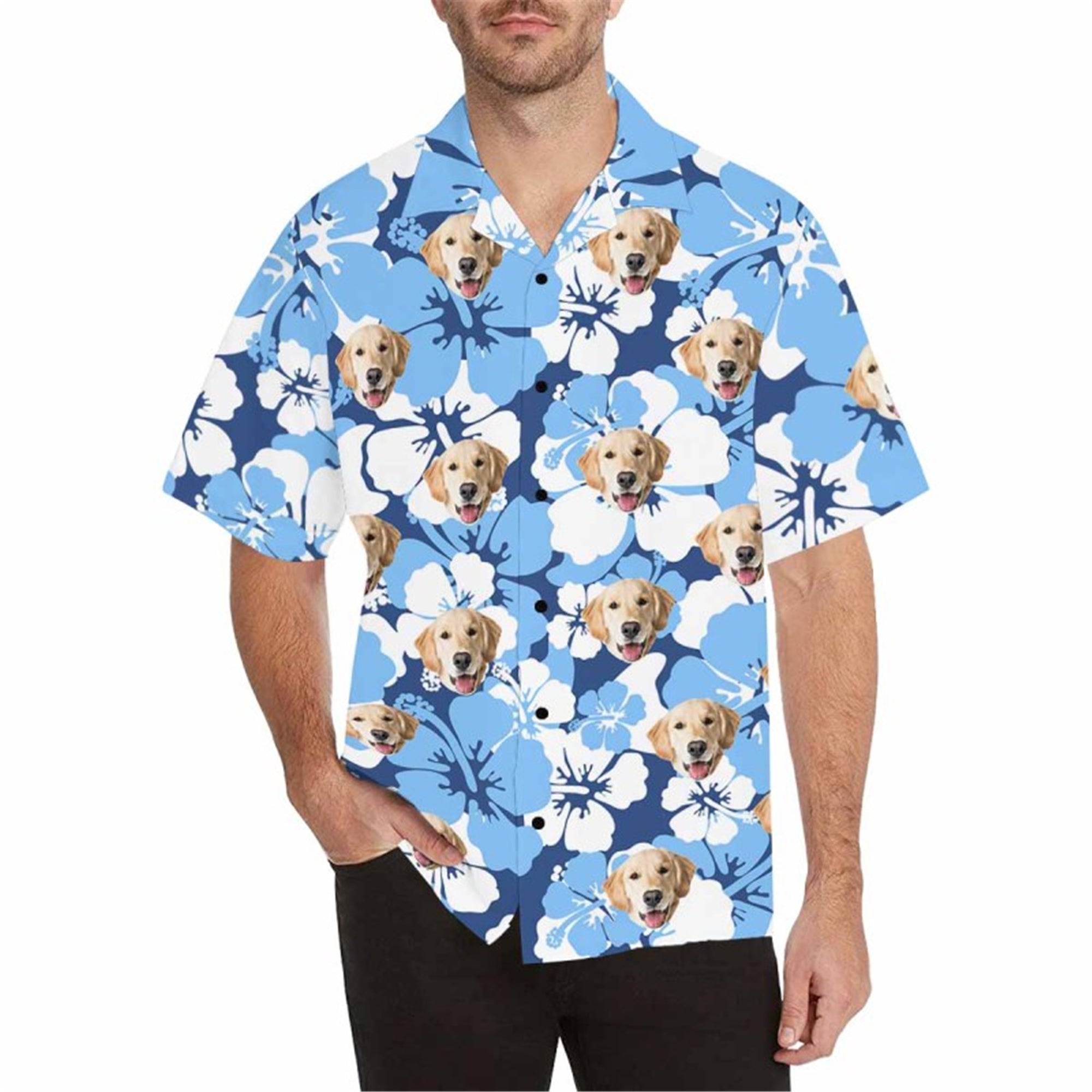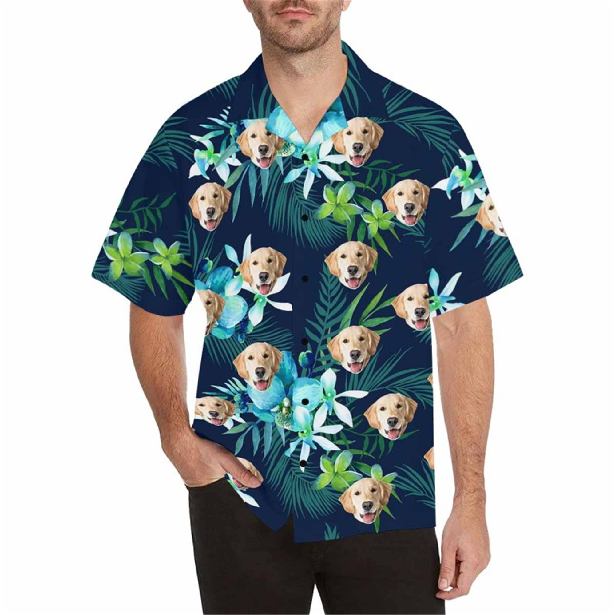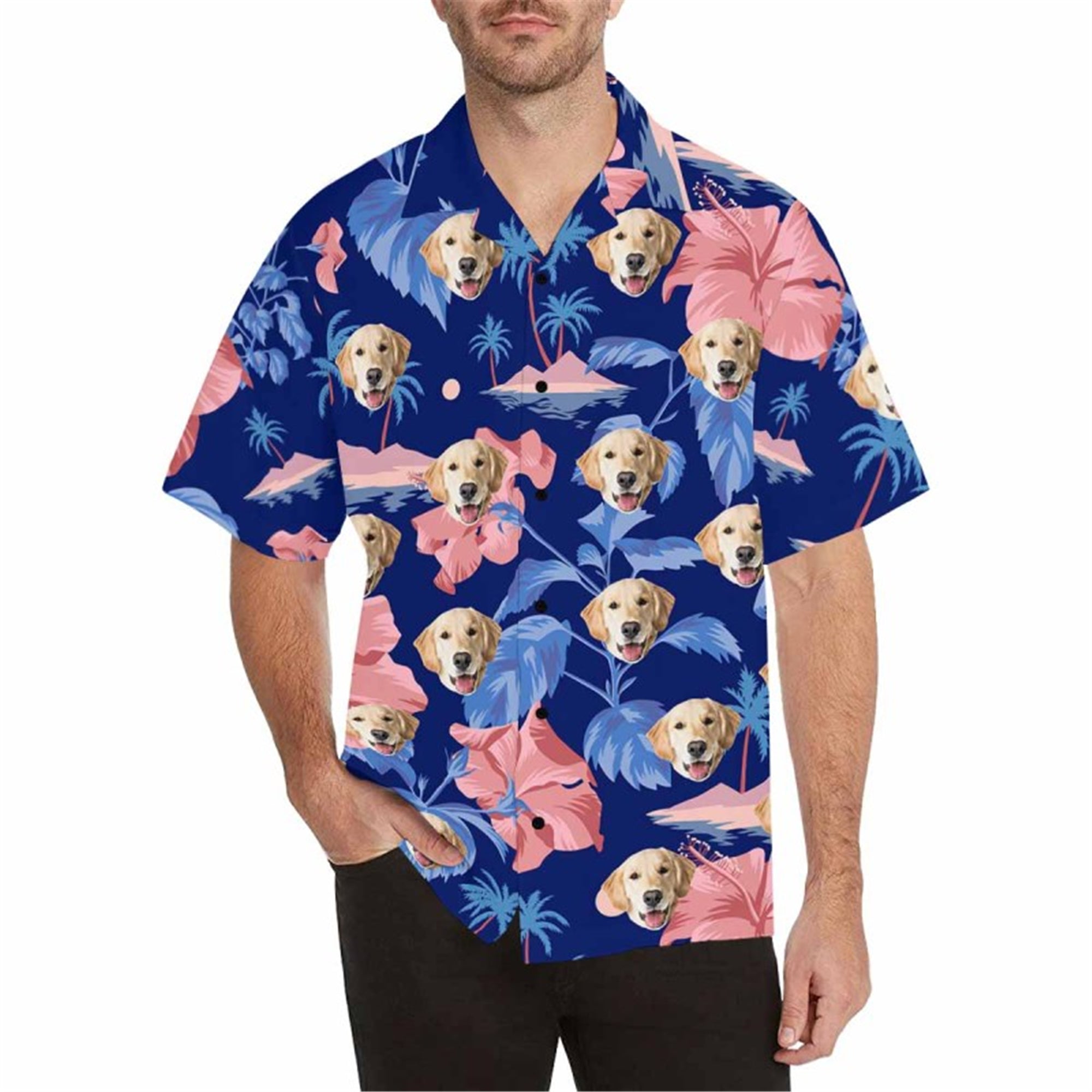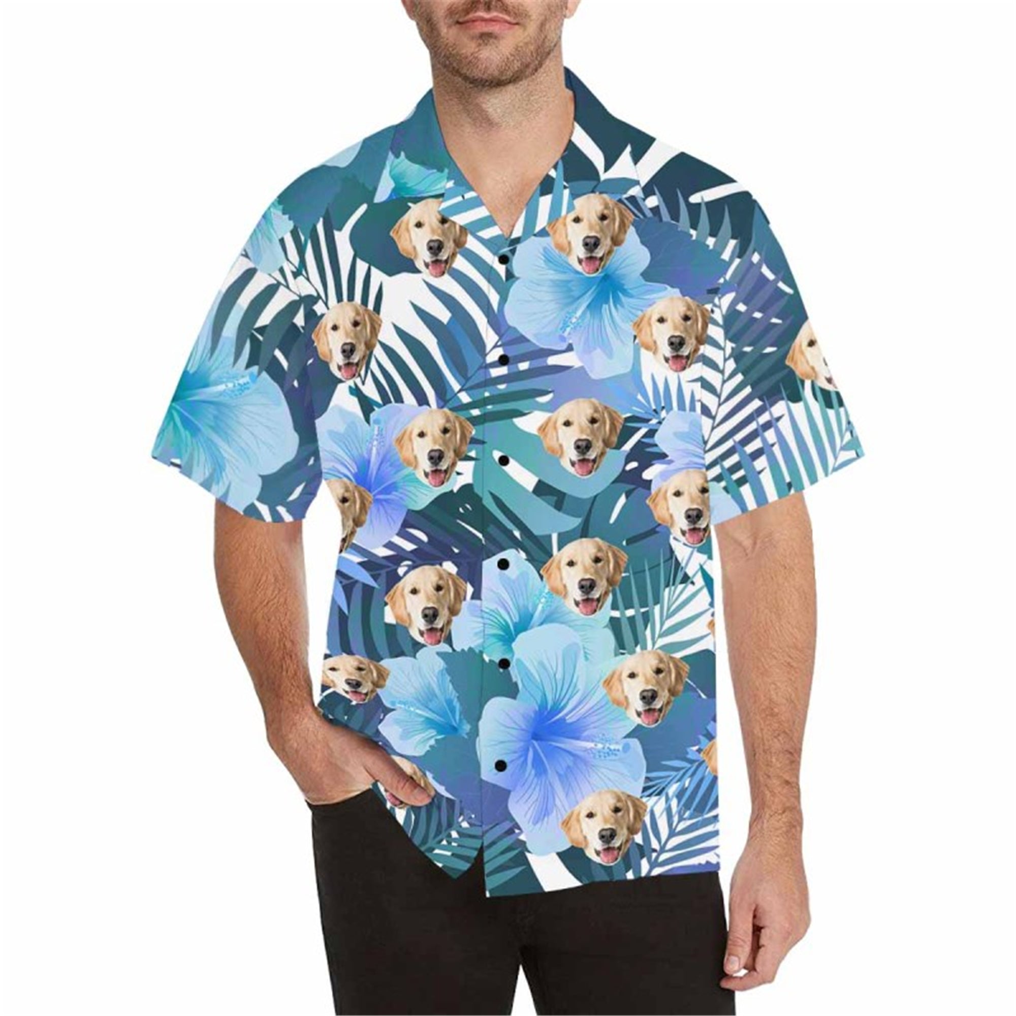 Custom Hawaiian Shirt with Dog for Men Personalized Tropical Flower Button Down Short Sleeve Hawaii Shirt Floral Beach Shirt