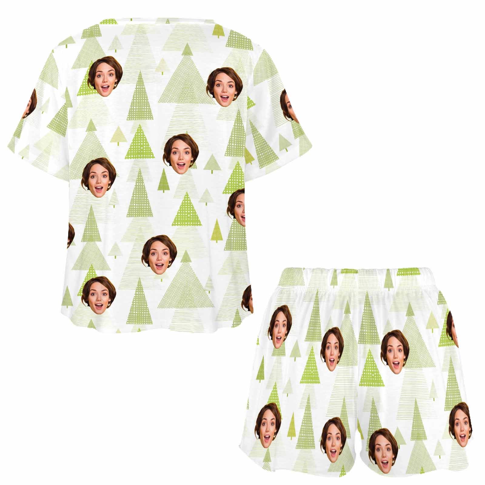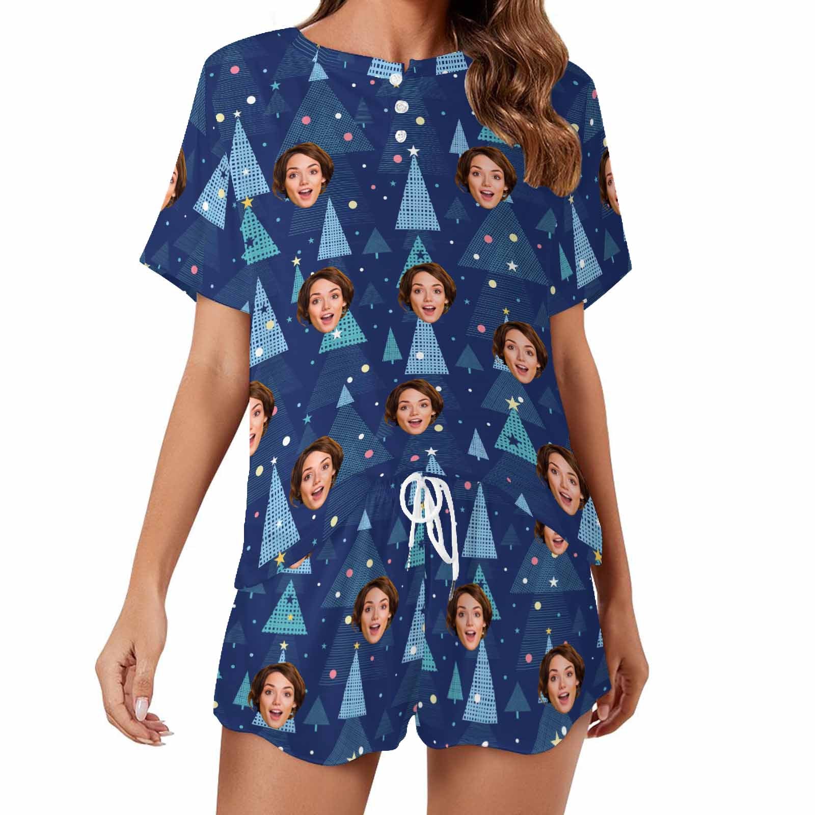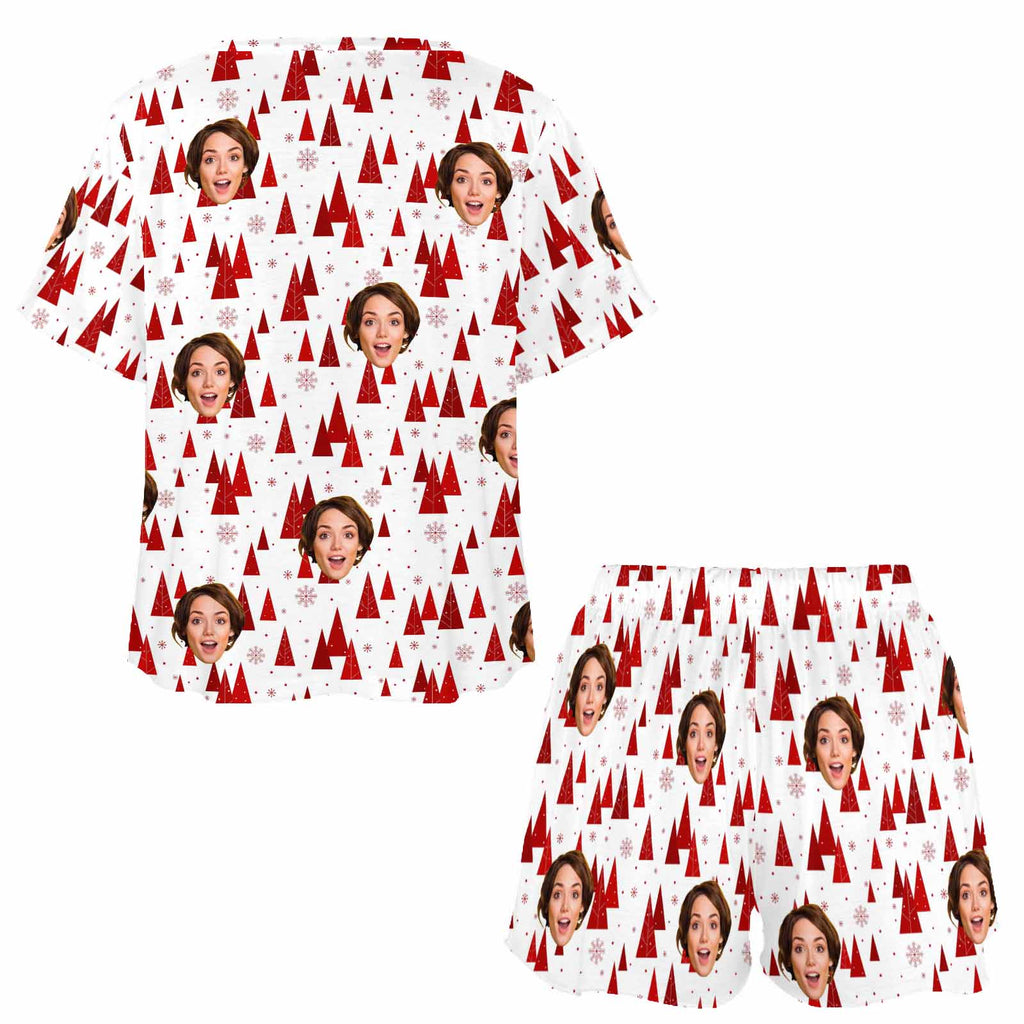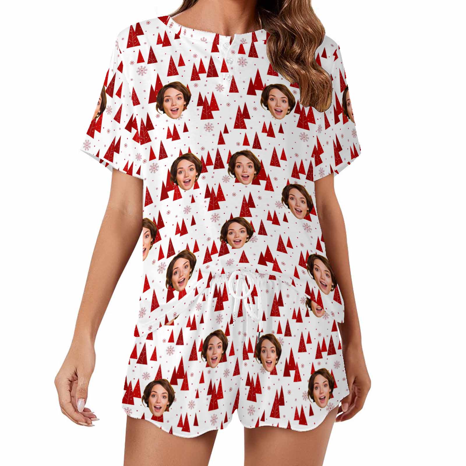 Personalized Face 2 Pieces PJ Sets for women Custom Photo Valentine Short round neck Sleepwear for GF Wife Mom gifts