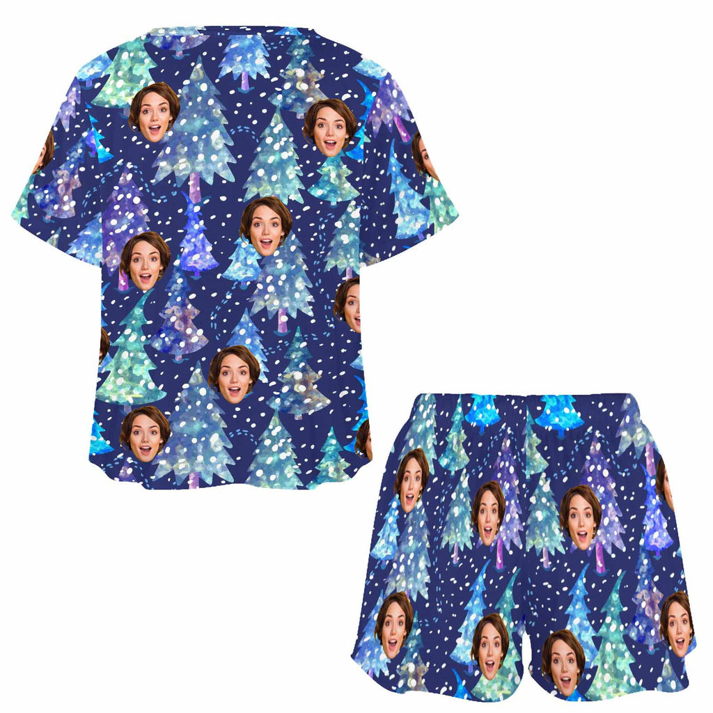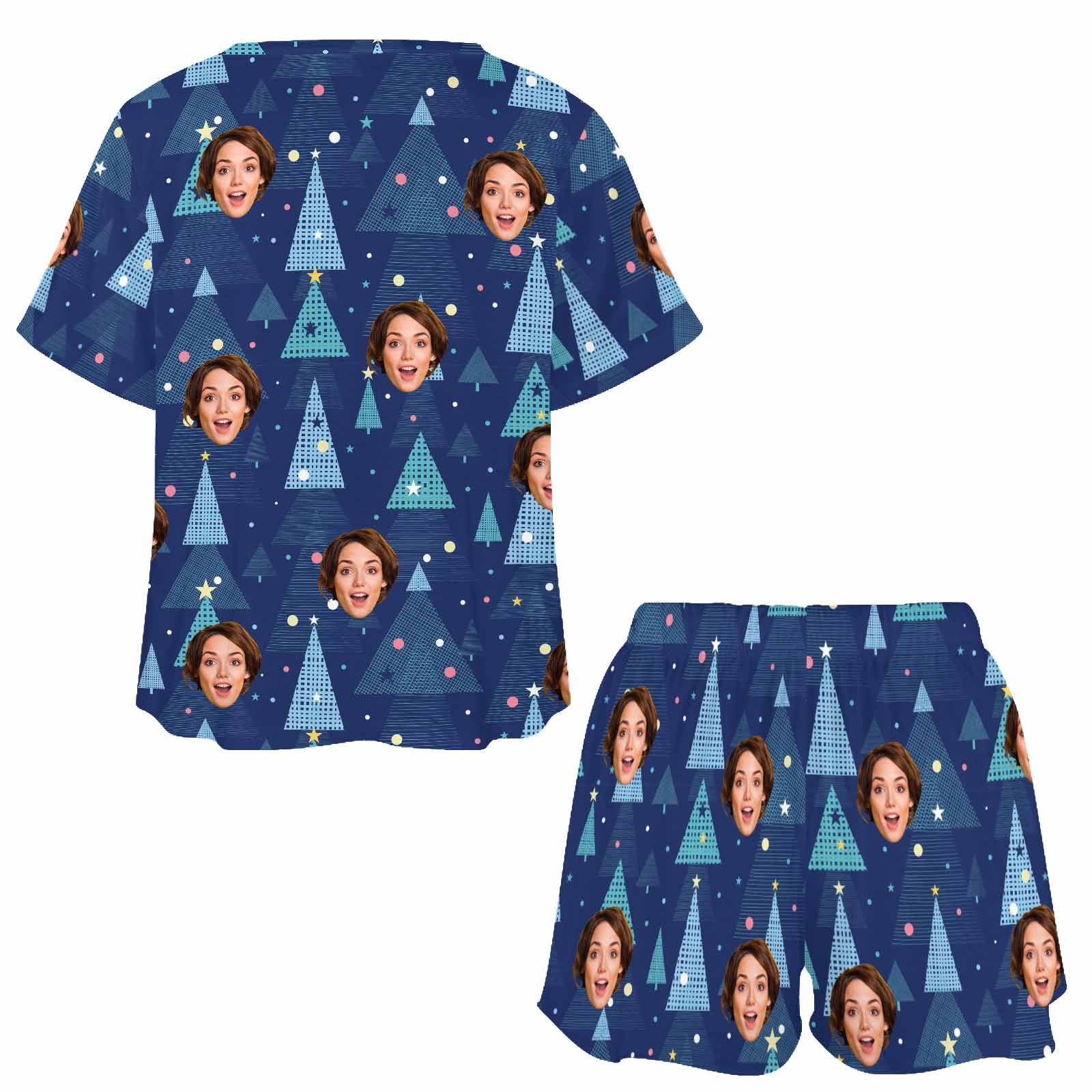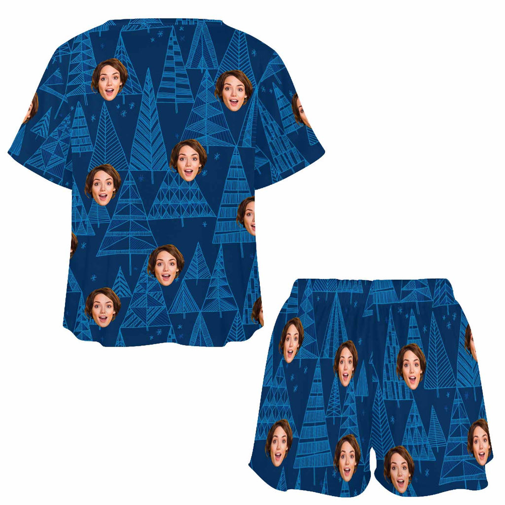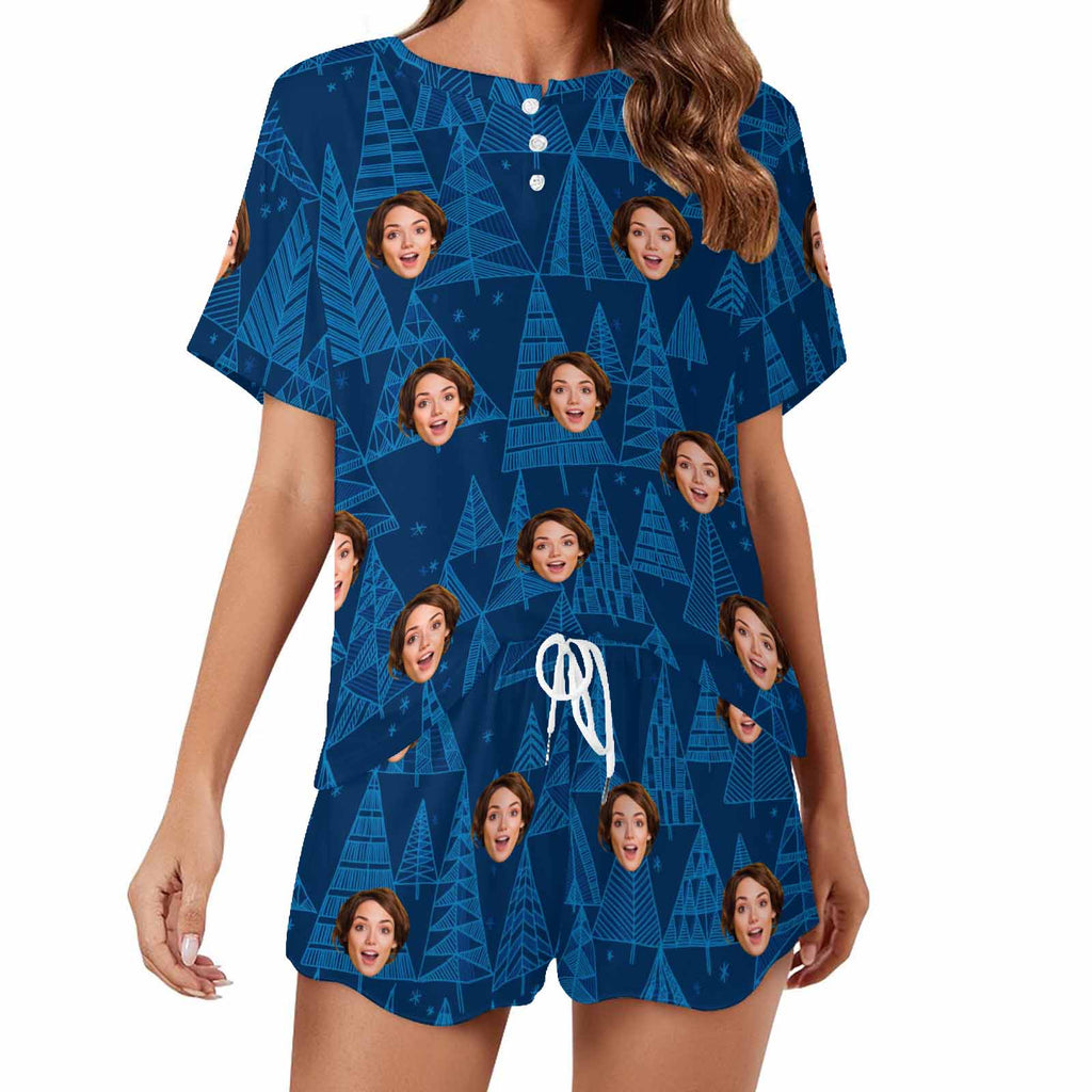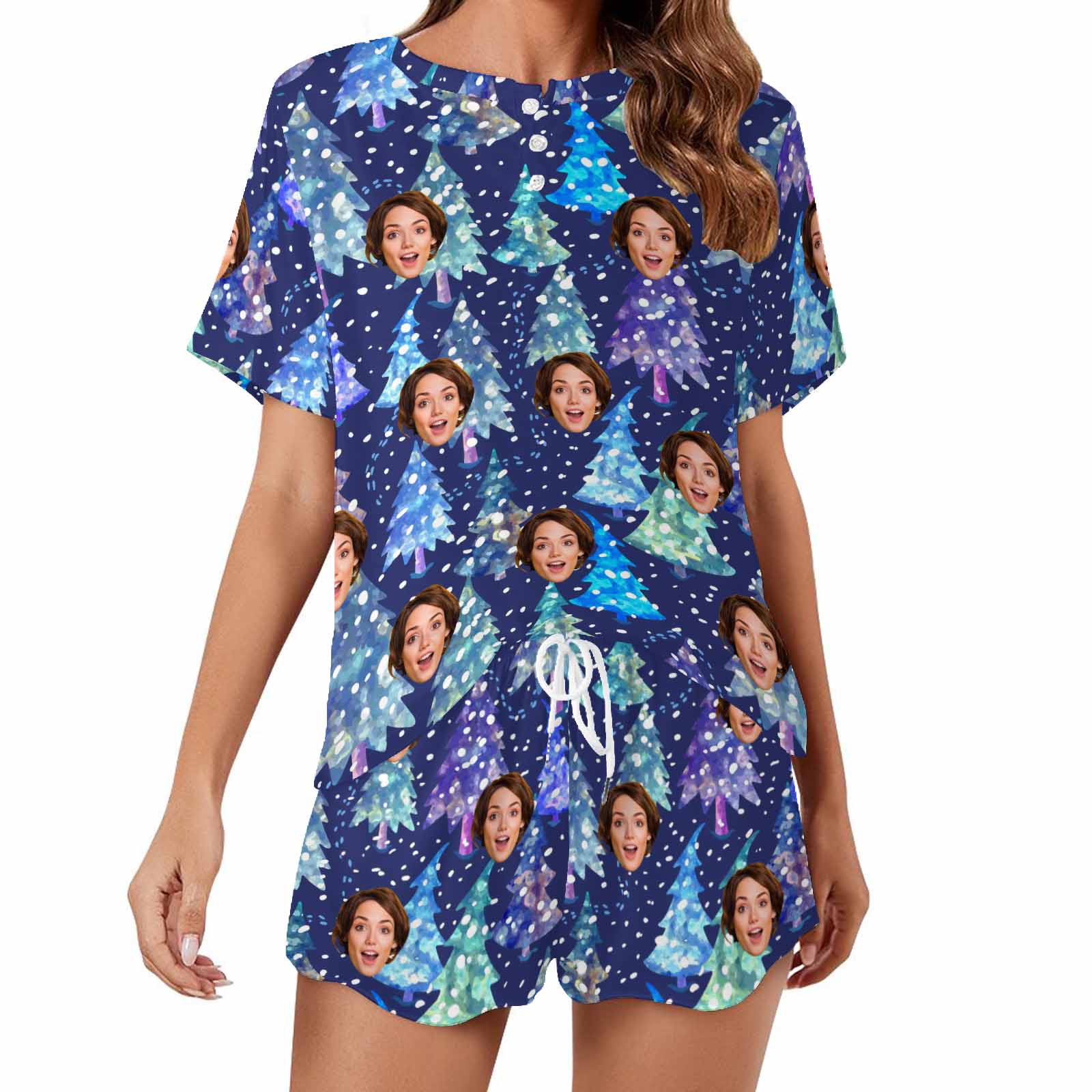 Personalized Face 2 Pieces PJ Sets for women Custom Photo Valentine Short round neck Sleepwear for GF Wife Mom gifts