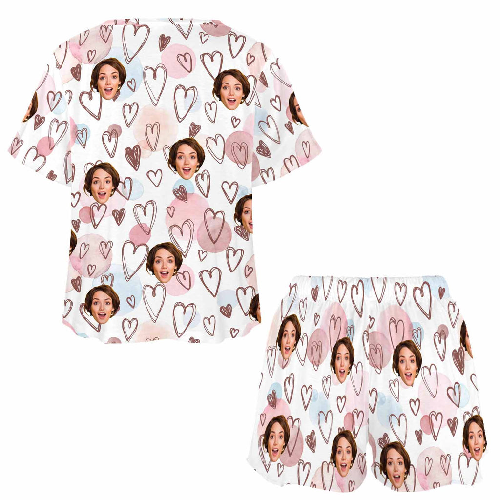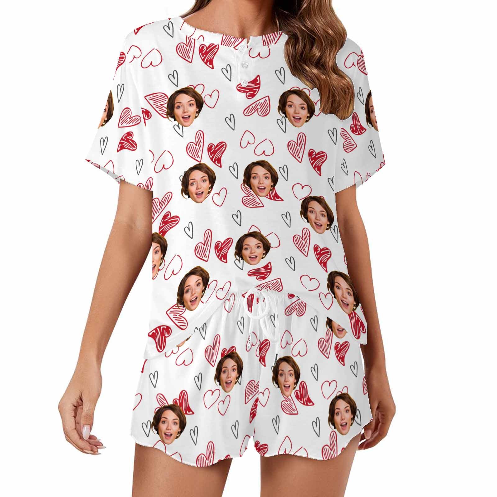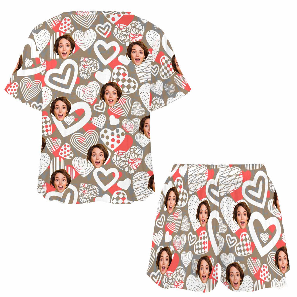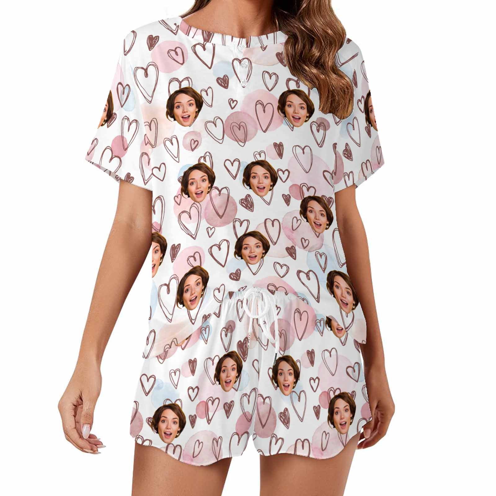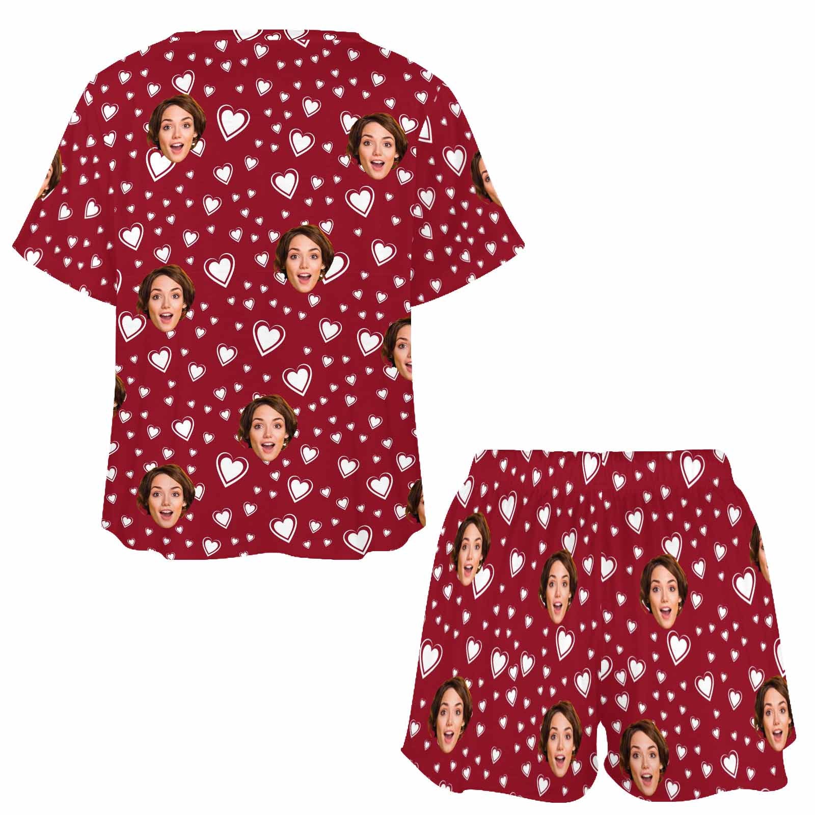 Personalized Valentine Short round neck PJ Sets for women with Face Custom Photo Sleepwear for GF Wife Mom gifts