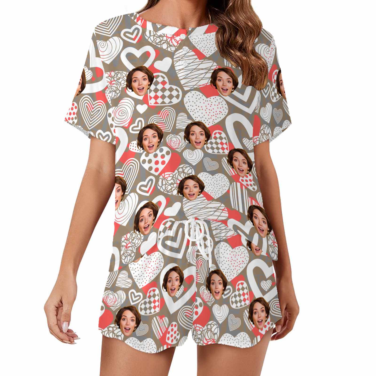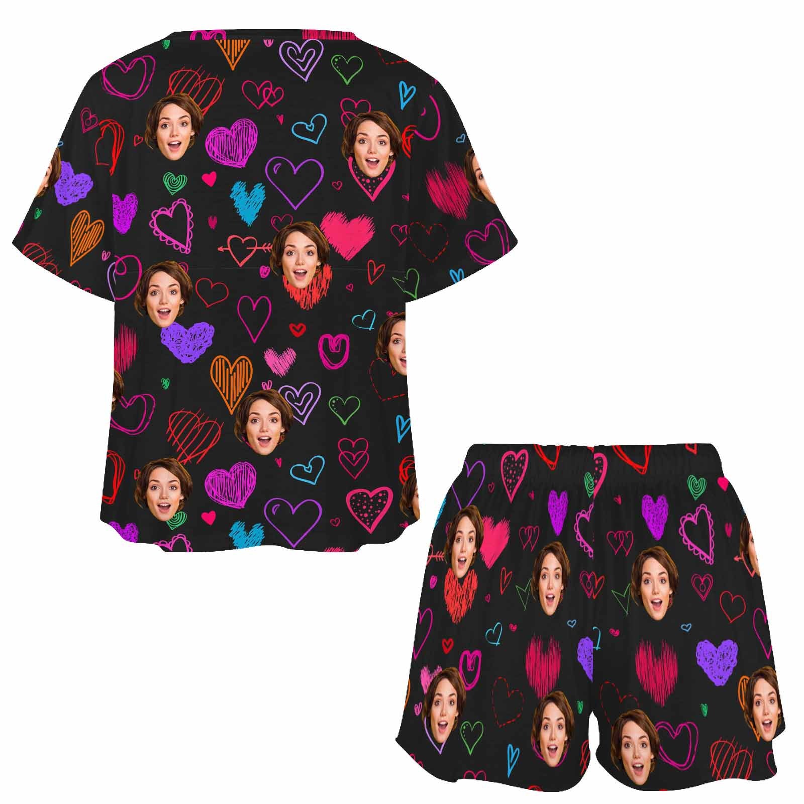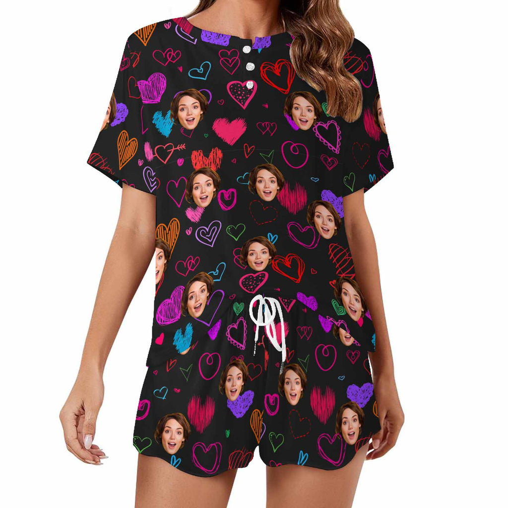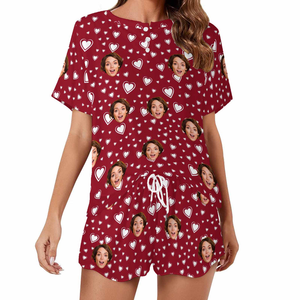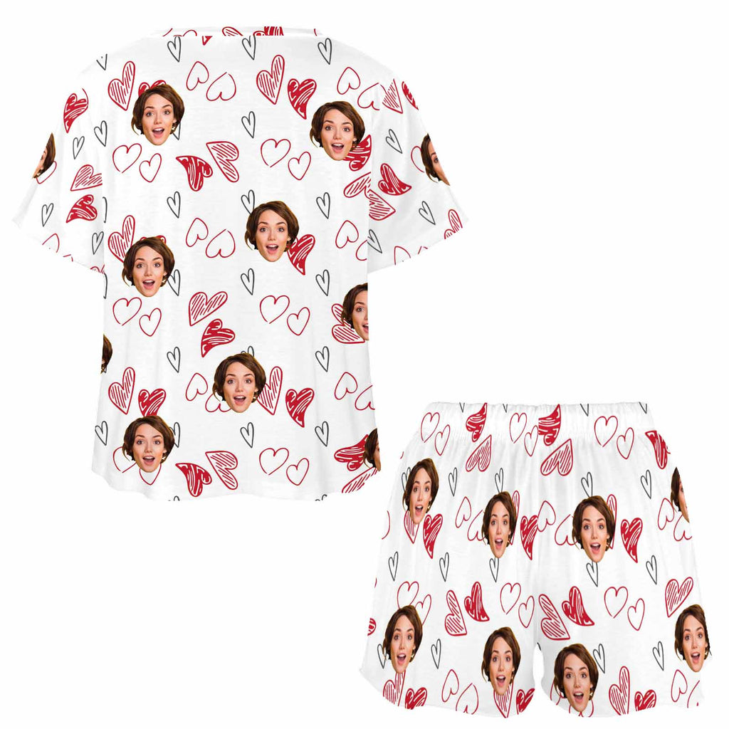 Personalized Valentine Short round neck PJ Sets for women with Face Custom Photo Sleepwear for GF Wife Mom gifts