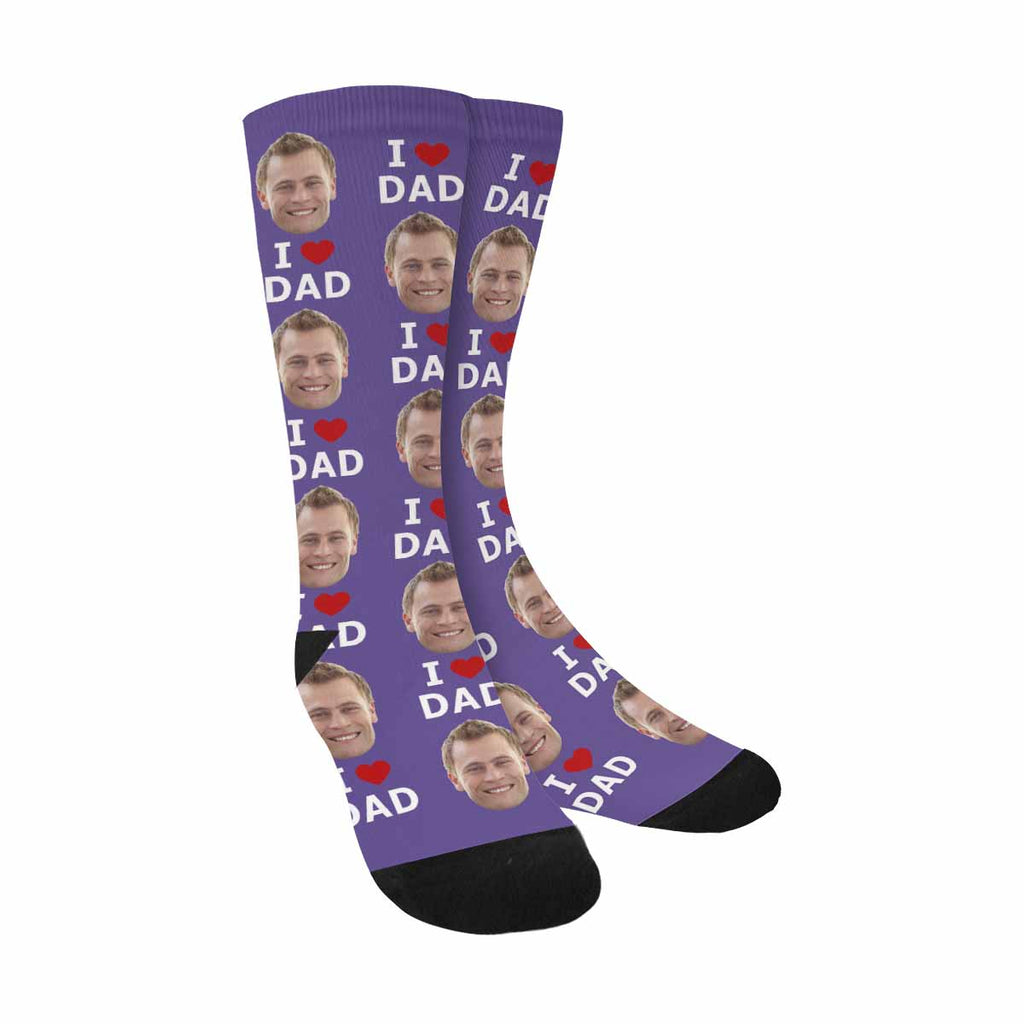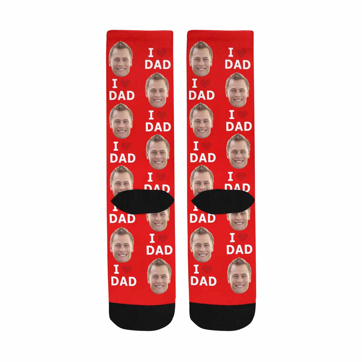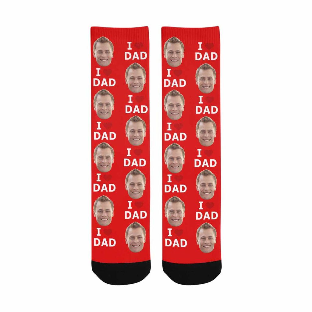 Custom Face Print Socks I Love Dad Funny Photo Socks Birthday Gifts for Dad