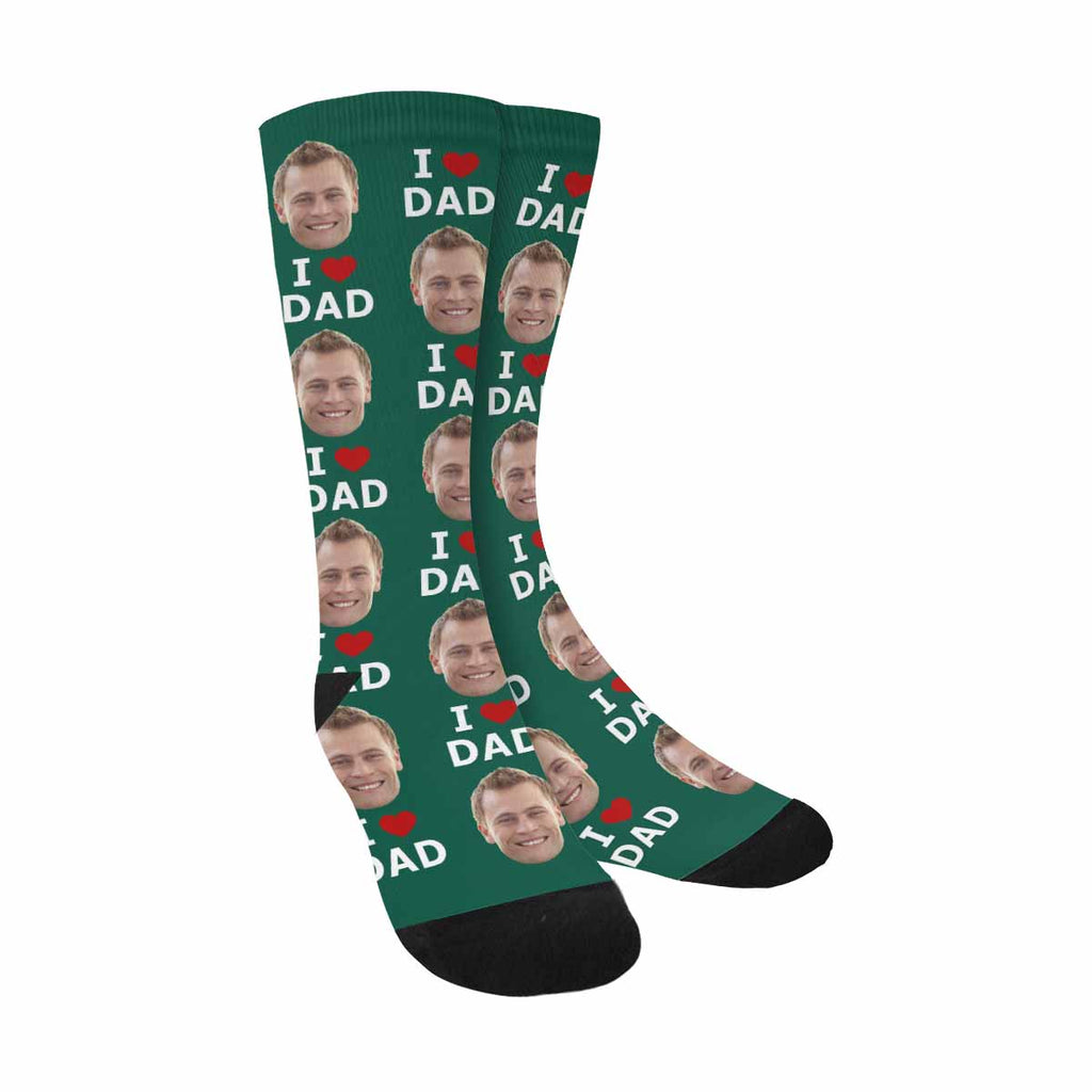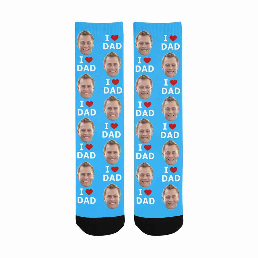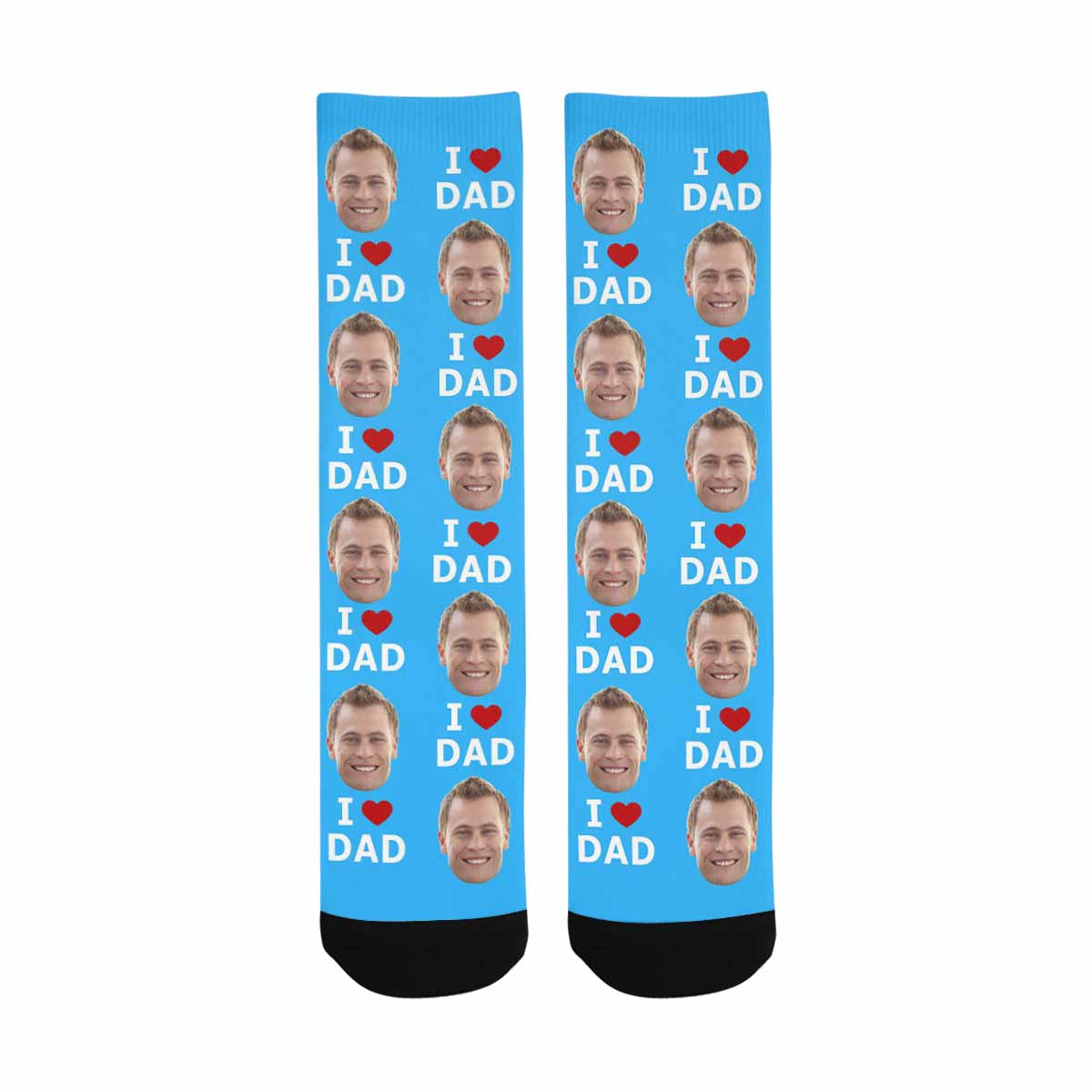 Custom Face Print Socks I Love Dad Funny Photo Socks Birthday Gifts for Dad