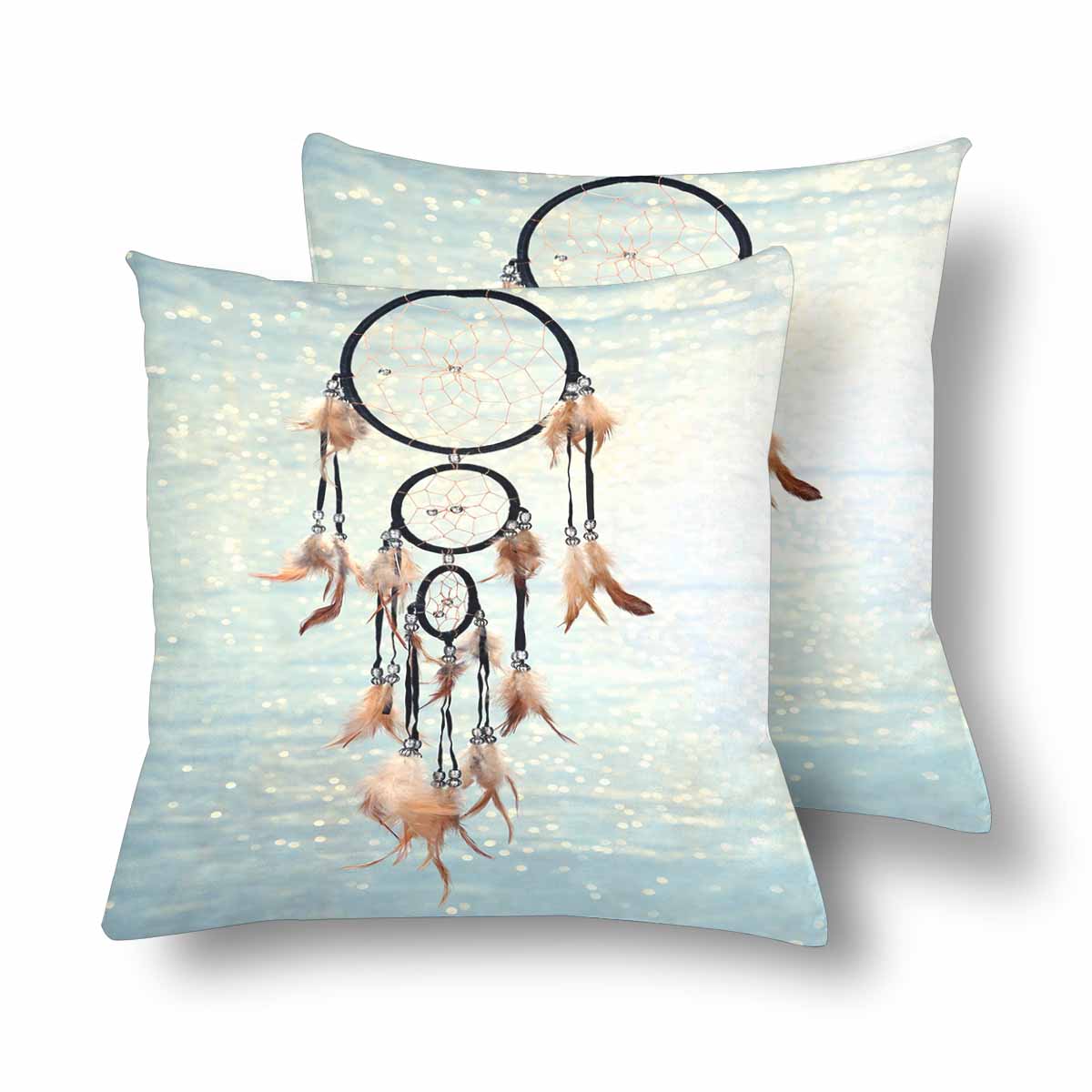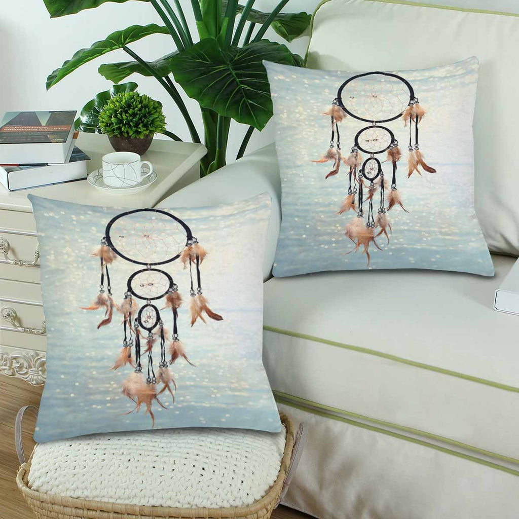 Ethnic themed Pillow Cases printed with dream catcher on blue background with lights
