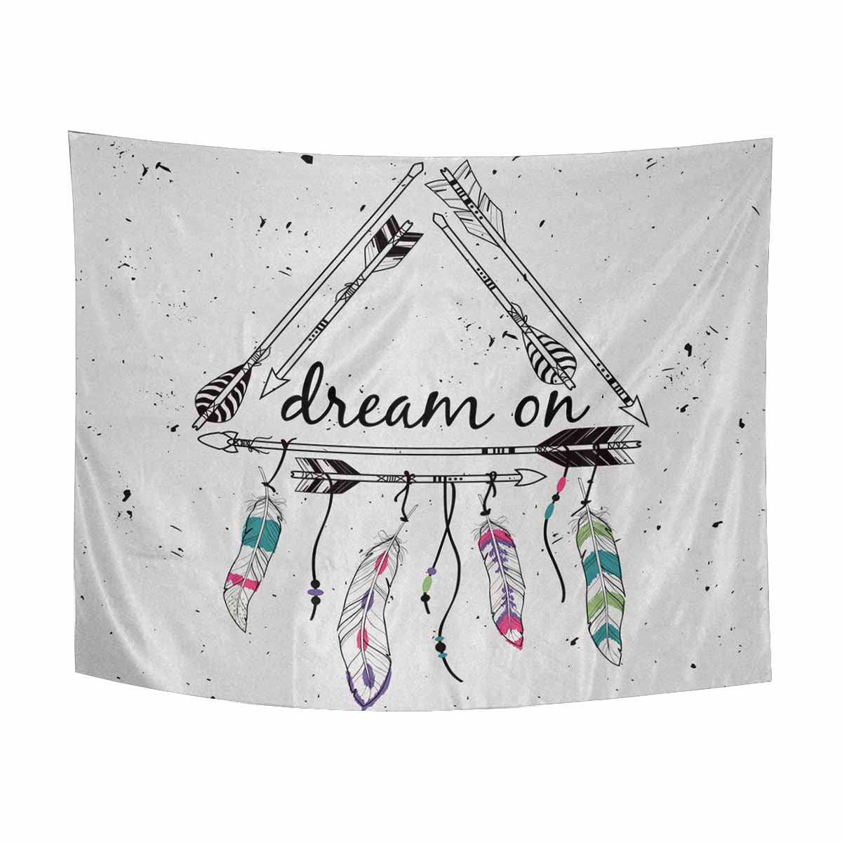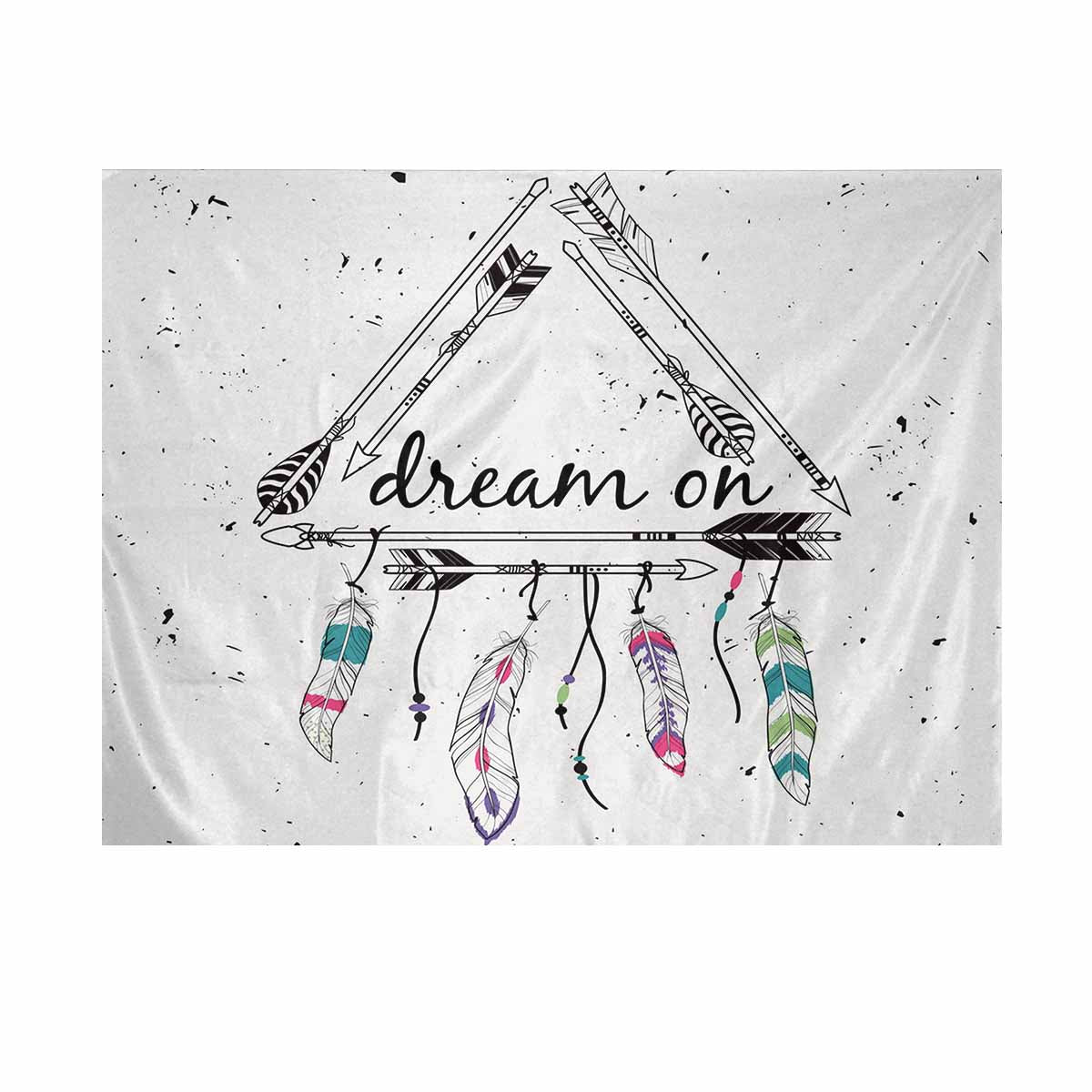 Ethnic themed Wall Tapestries printedtribal frame with ethnic arrows and feathers,Dream on motivational poster