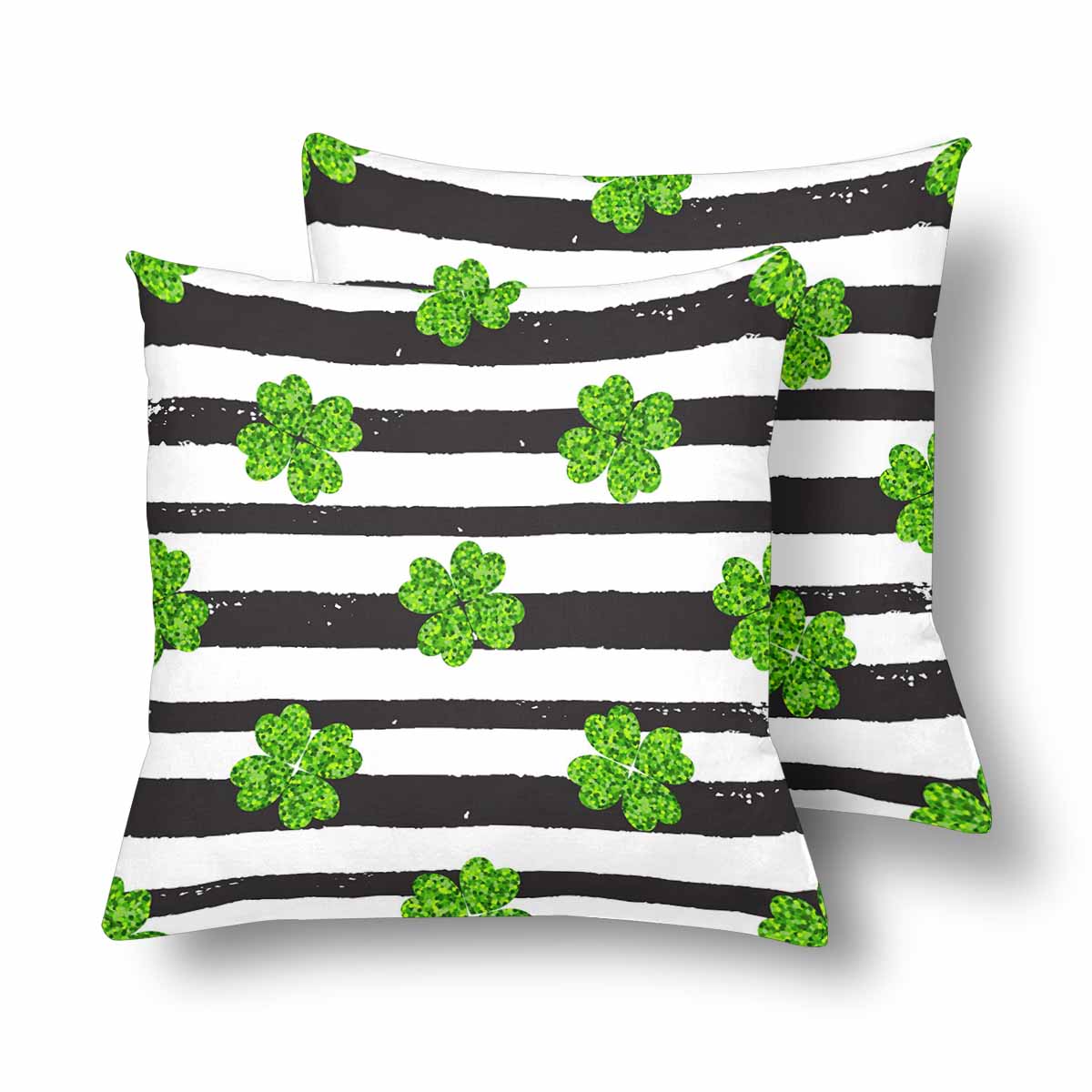 Floral themed Pillow Cases printed with Pattern with black lines and green clover