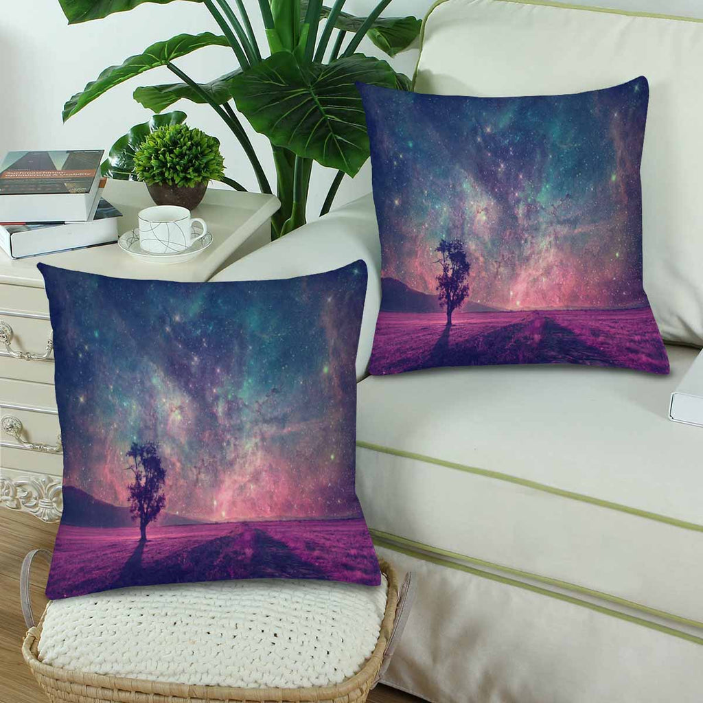 Galaxy themed Pillow Cases printed with Red Alien landscape with alone tree silhouette in purple filed