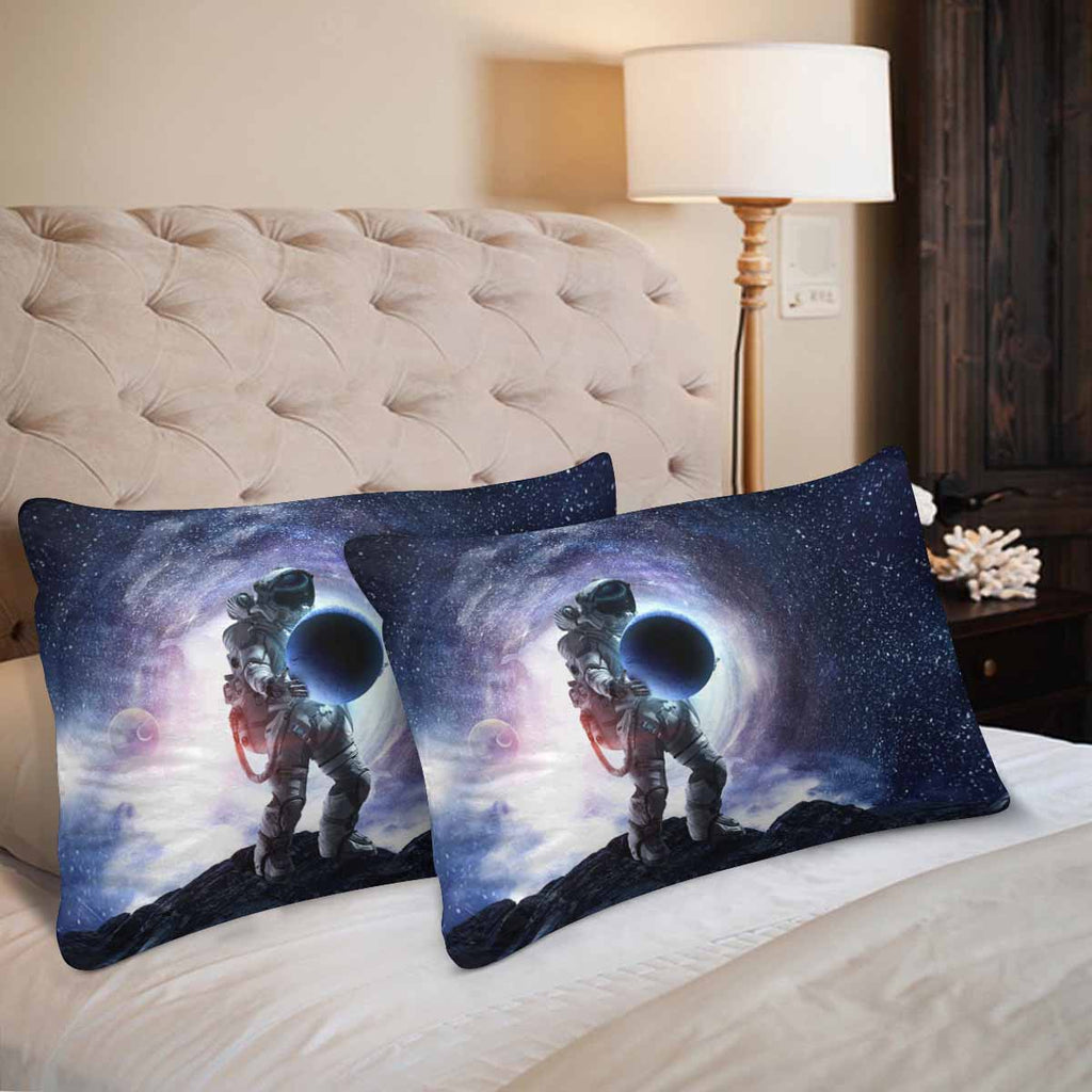 Galaxy themed Rectangle Pillow Cases printed astronaut holding in hands mars planet spaceman carring his mission