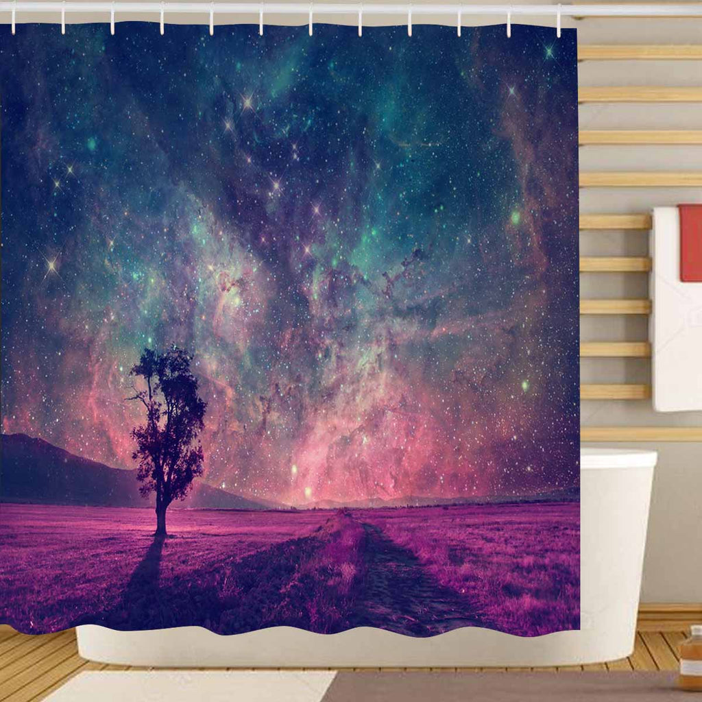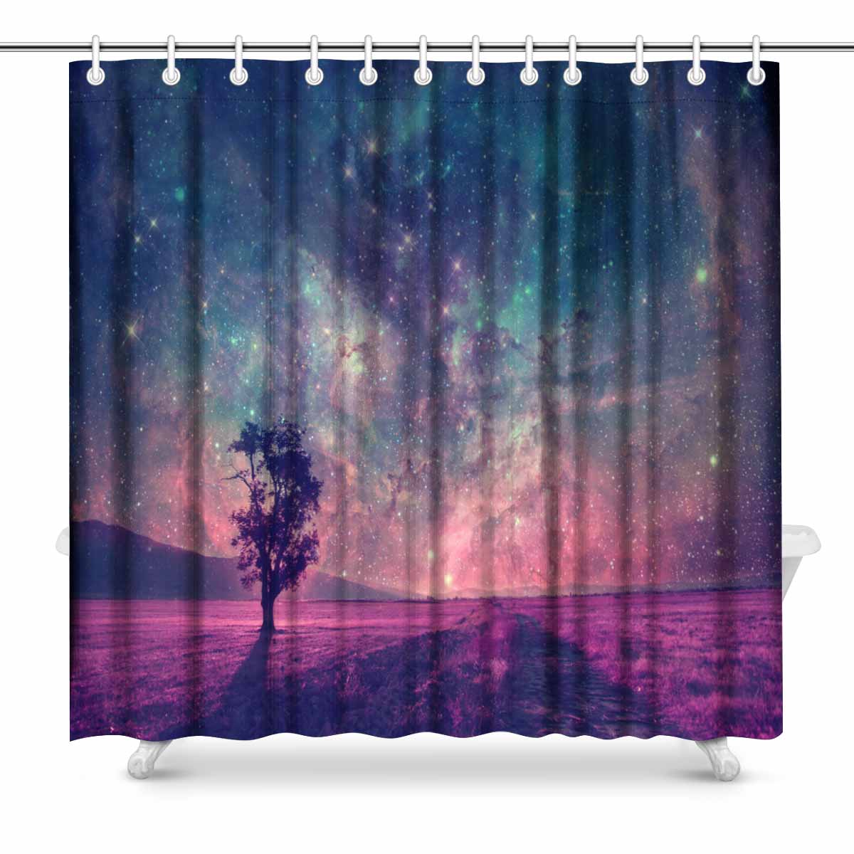 Galaxy themed print on shower curtains for bathroom, create a brilliant atmosphere in your bathroom, include a selection of different stylish and custom-made designs for your bath decoration.