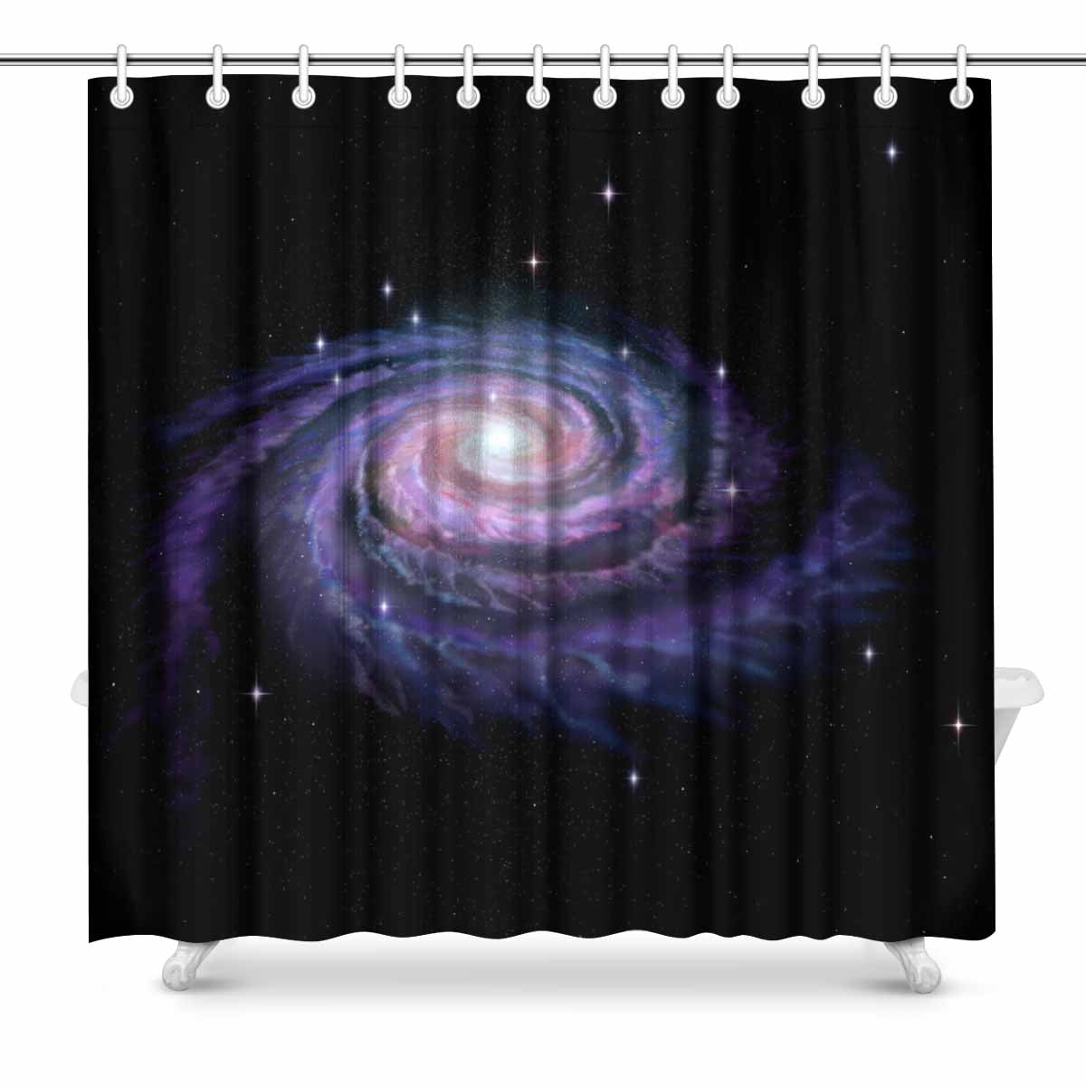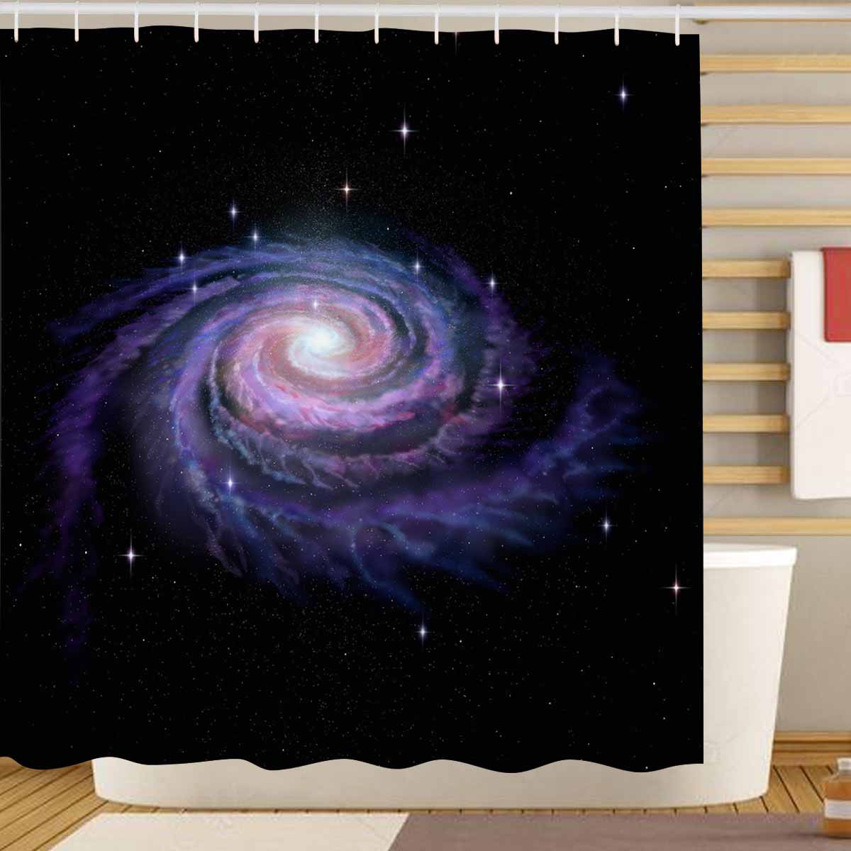 Galaxy themed print on shower curtains for bathroom, create a brilliant atmosphere in your bathroom, include a selection of different stylish and custom-made designs for your bath decoration.