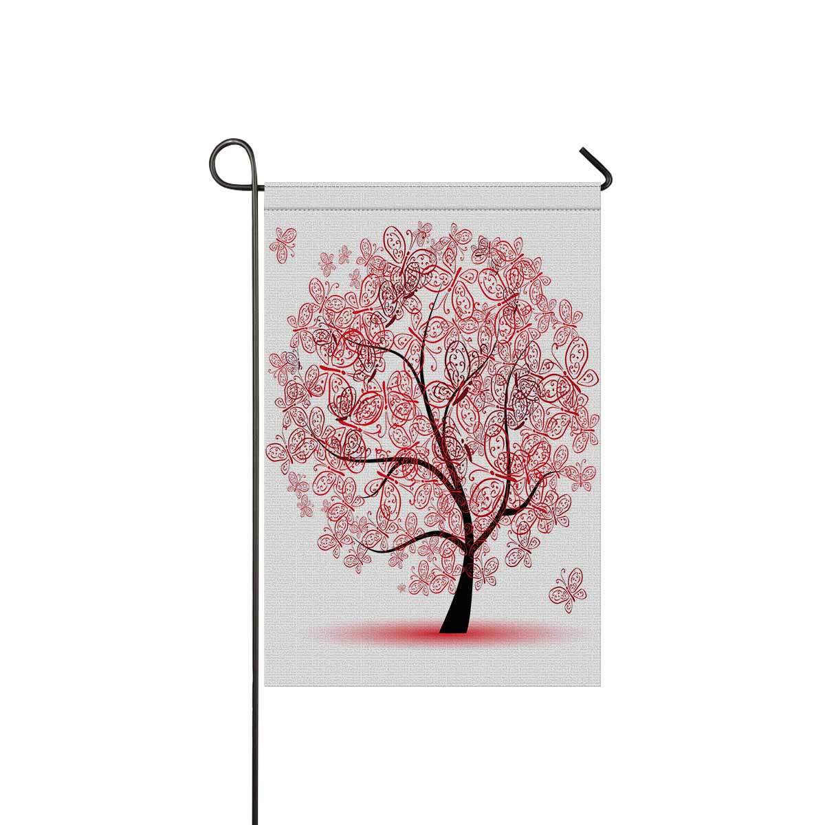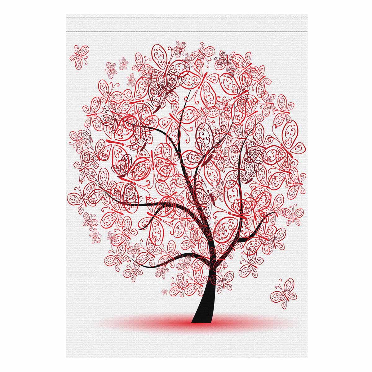 Garden Flags printed tree and moutains themed with Floral tree with butterflies