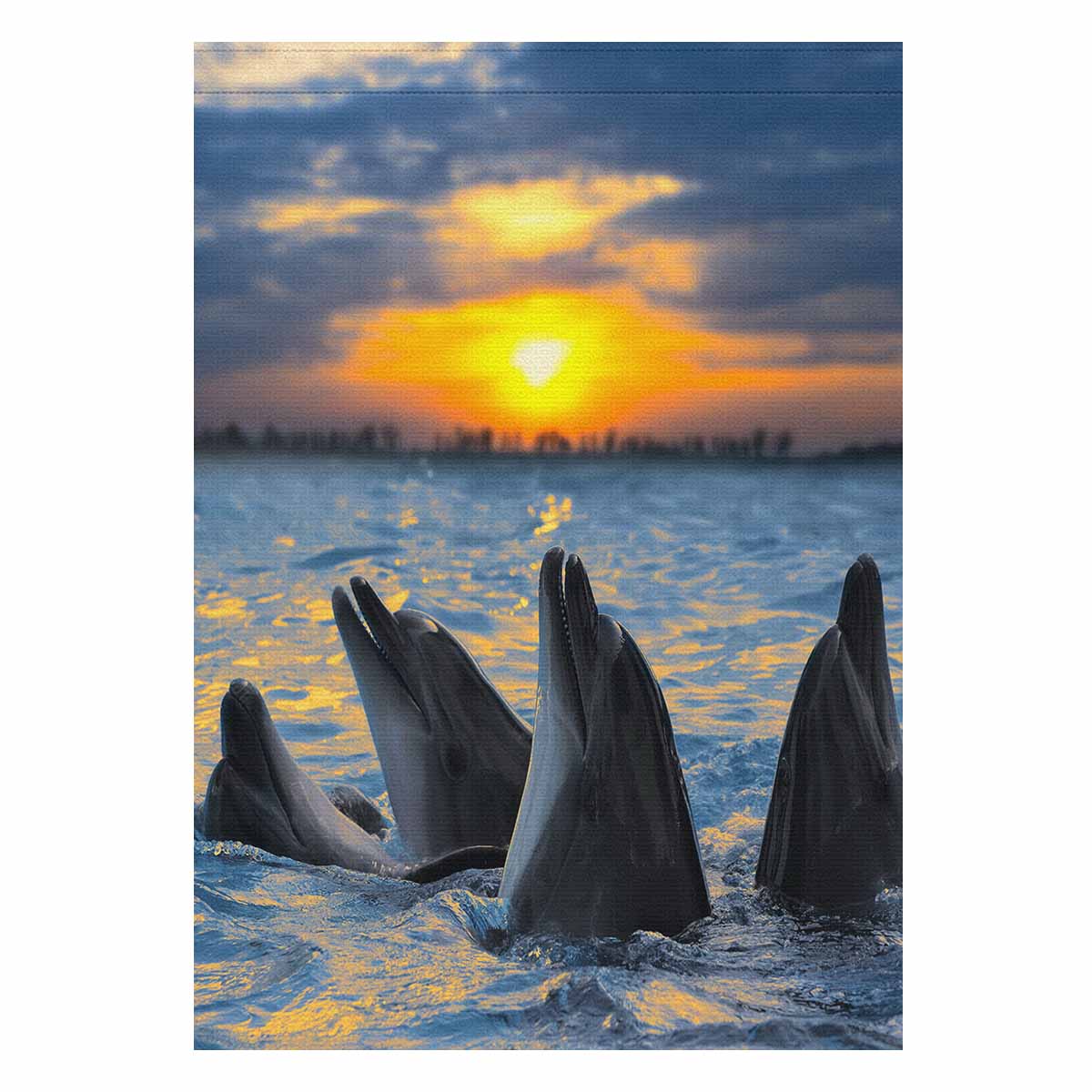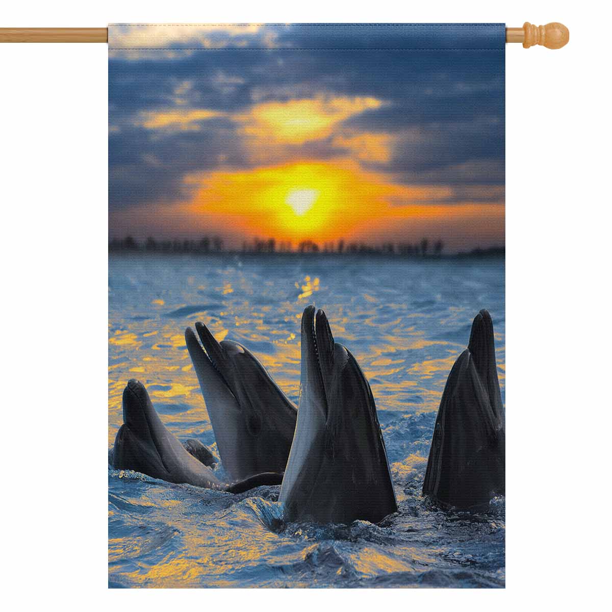 Garden Flags printed tropical themed with The bottle-nosed dolphins in sunset light