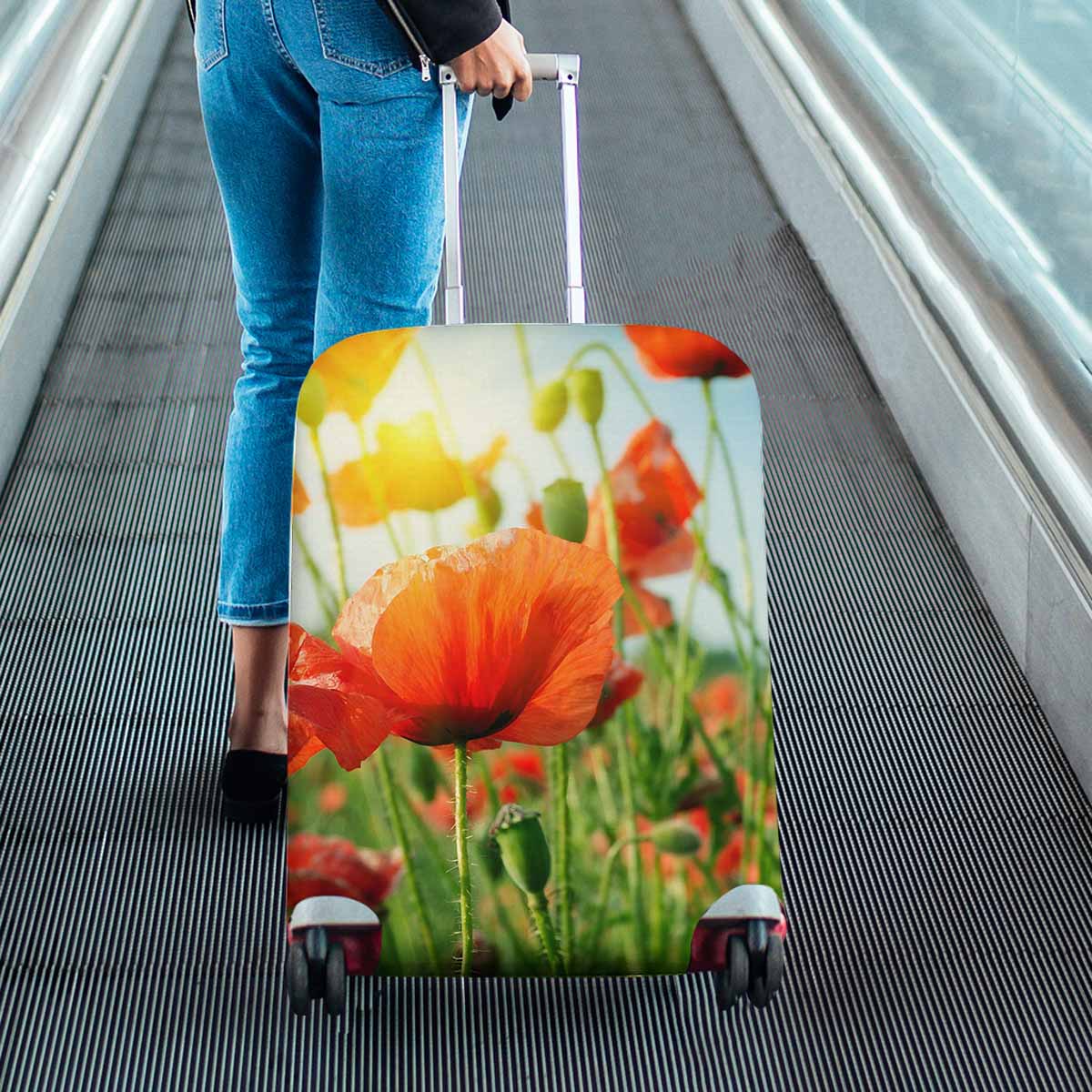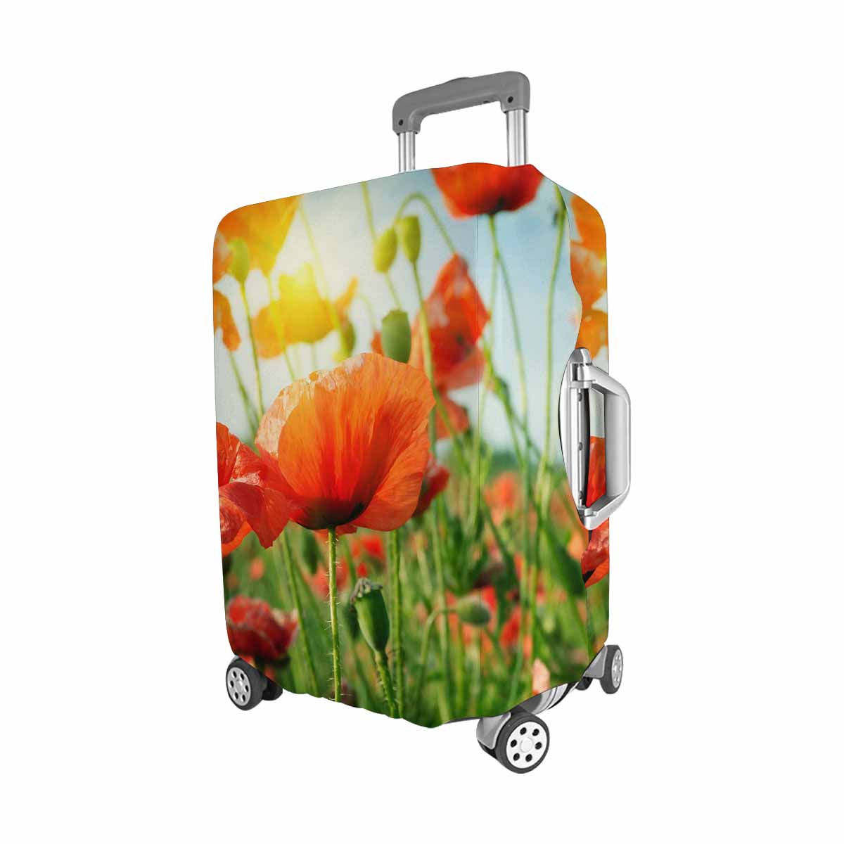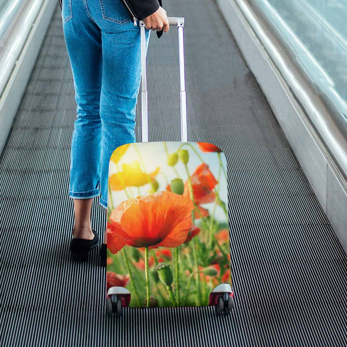 Nature Landscape themed Cover for Luggage suitcase printed Poppies field in rays sun