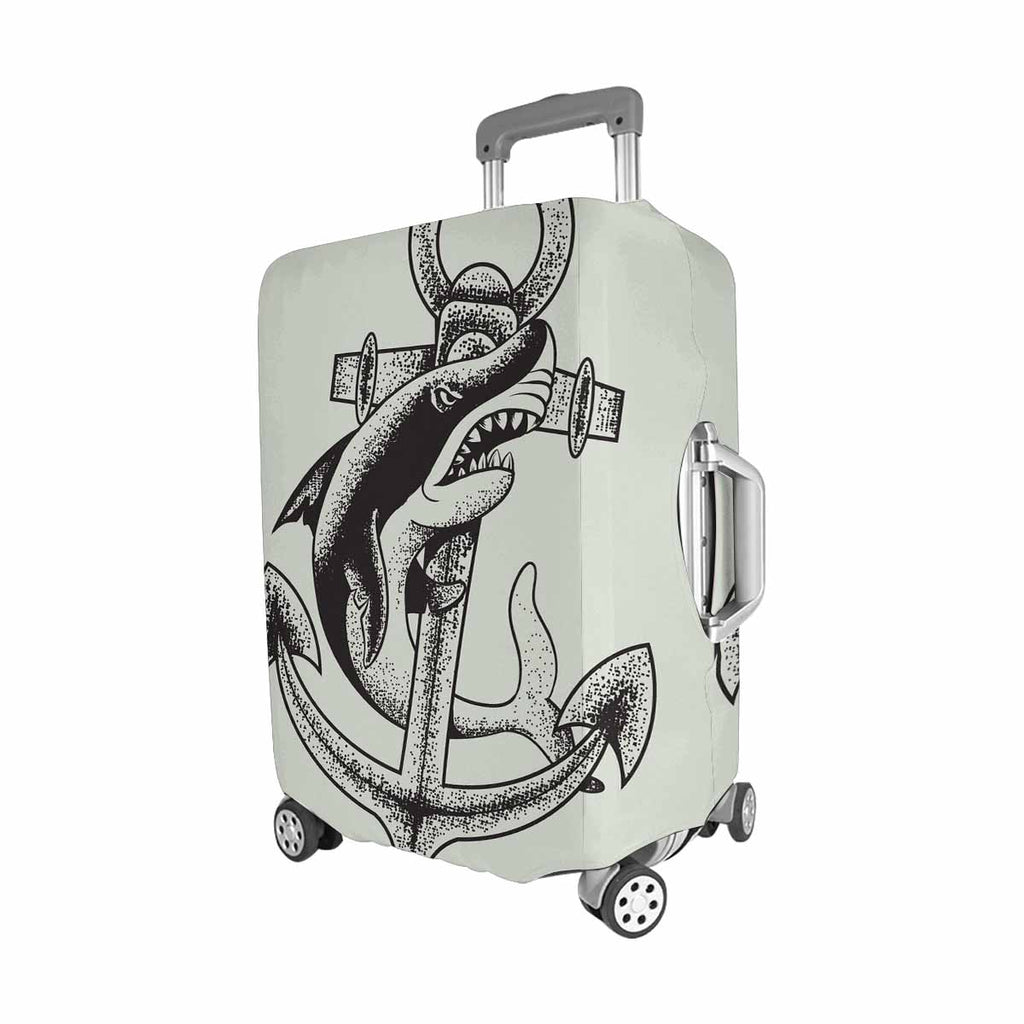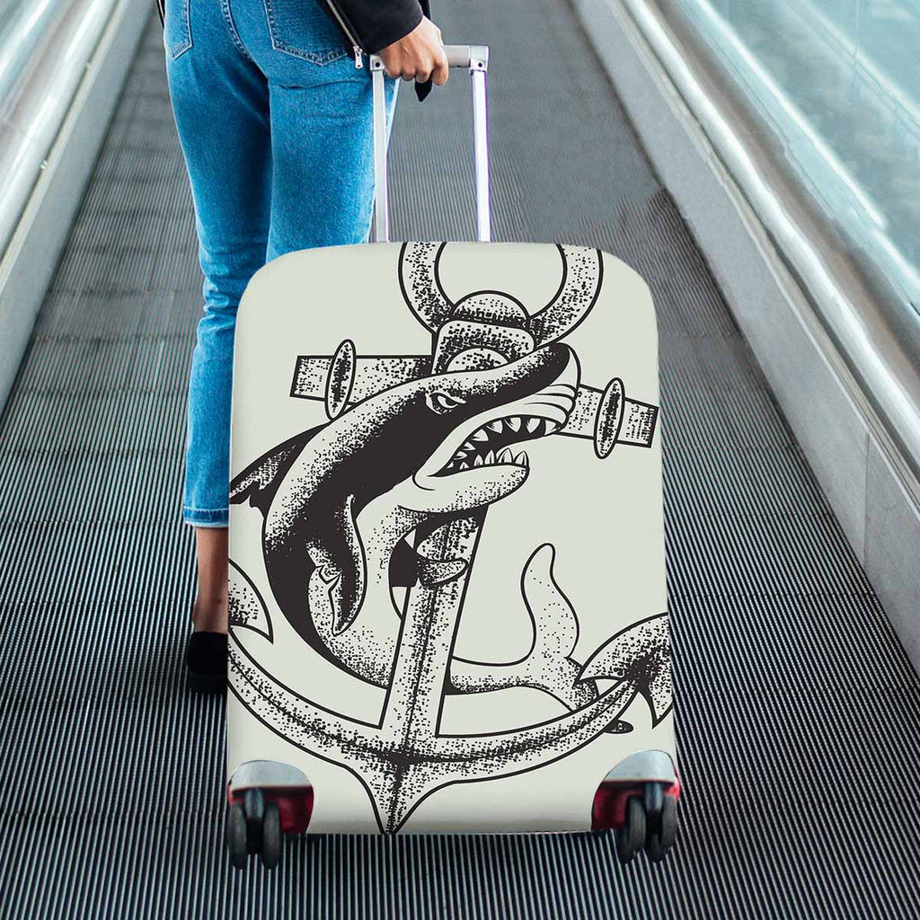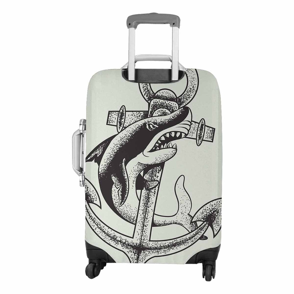 Nautical and Mermaid themed Cover for Luggage suitcase printed Monochrome shark and anchor vector illustration sea and ocean tatoo