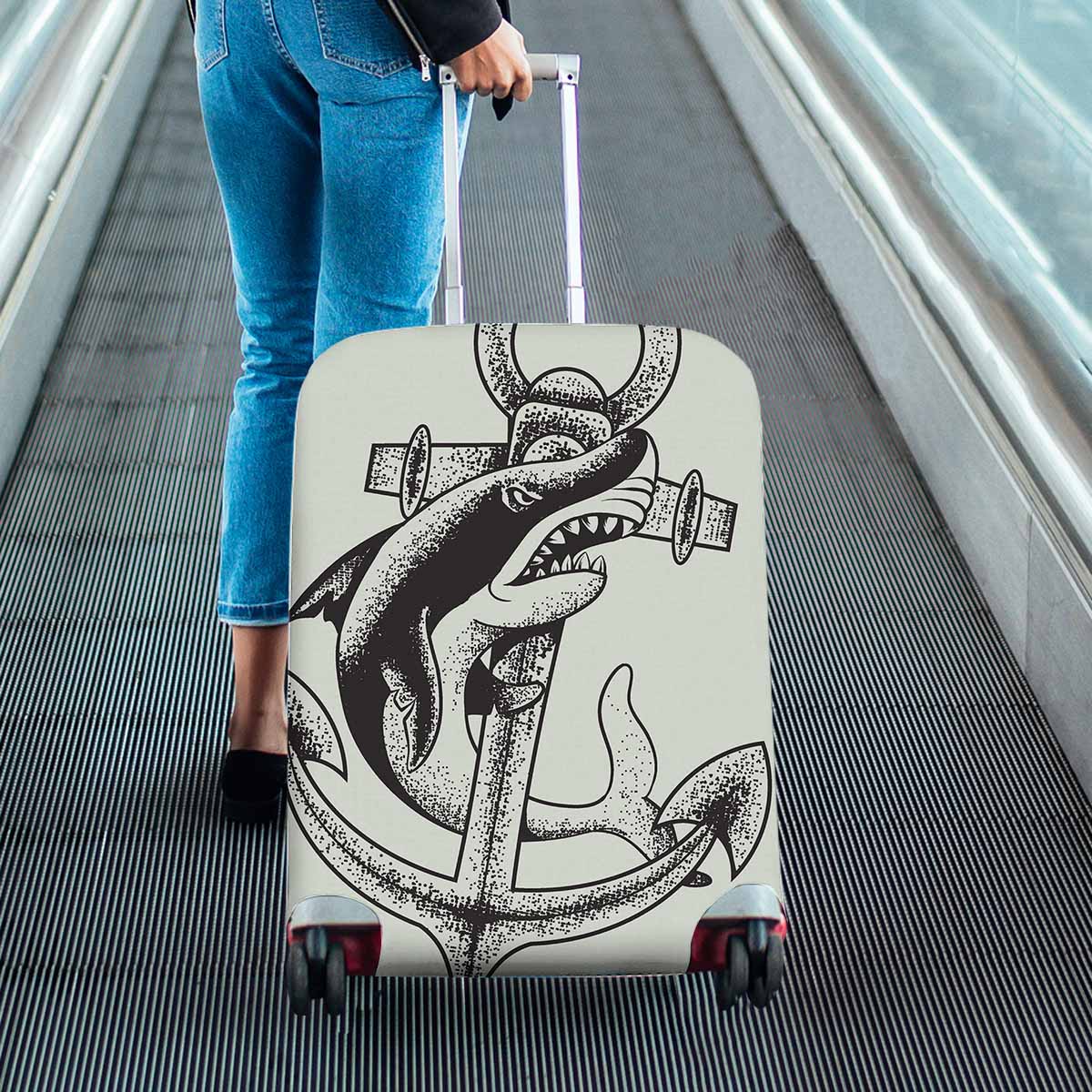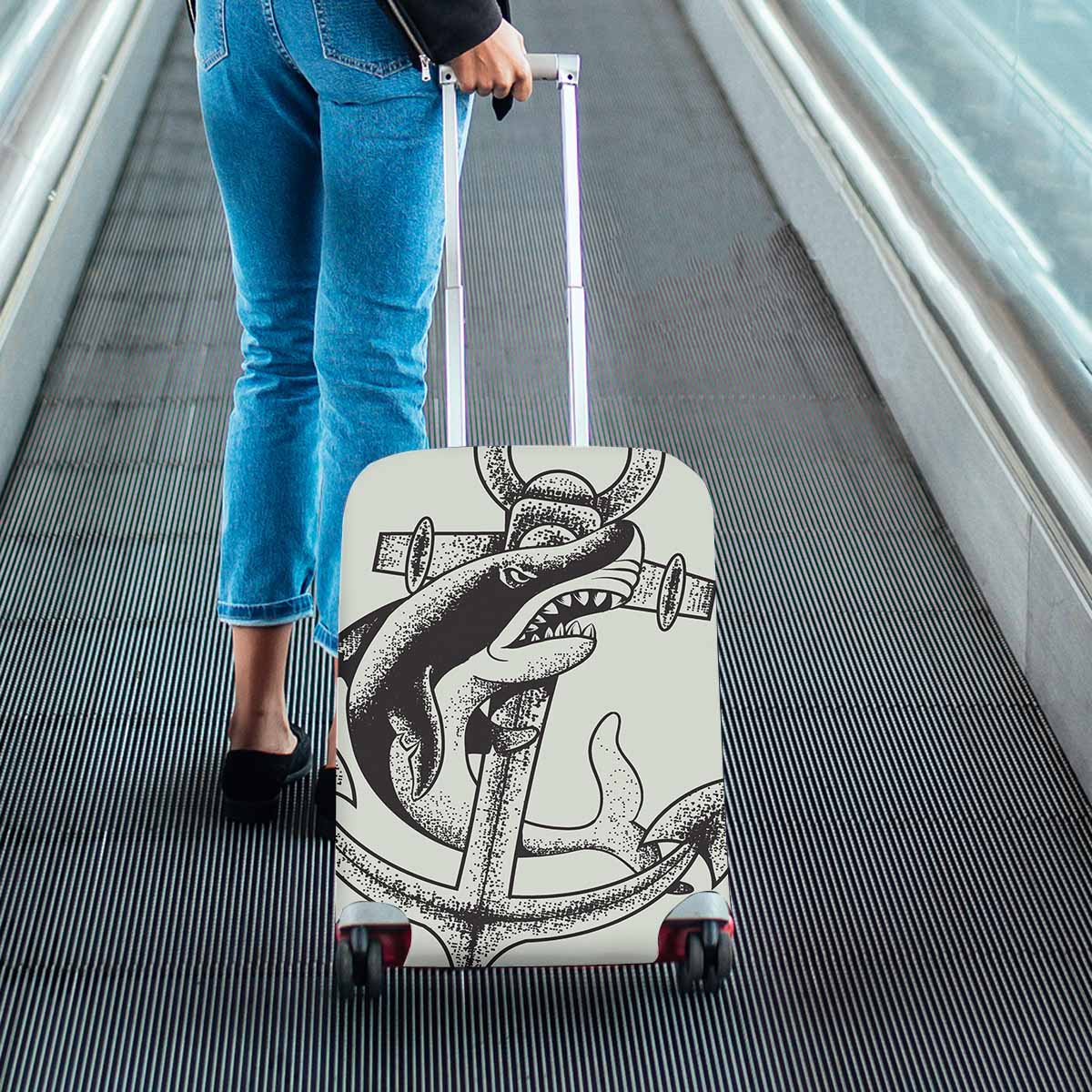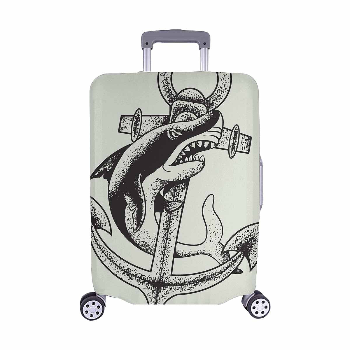 Nautical and Mermaid themed Cover for Luggage suitcase printed Monochrome shark and anchor vector illustration sea and ocean tatoo