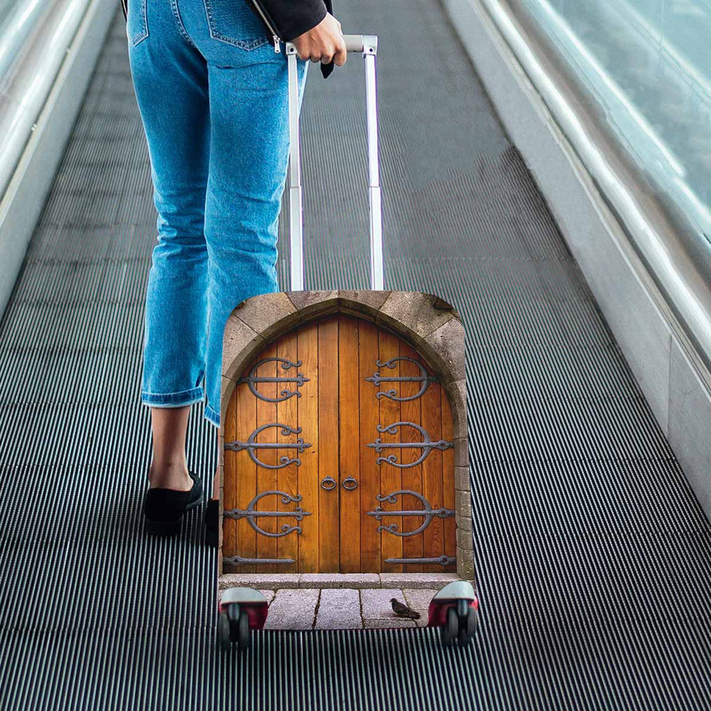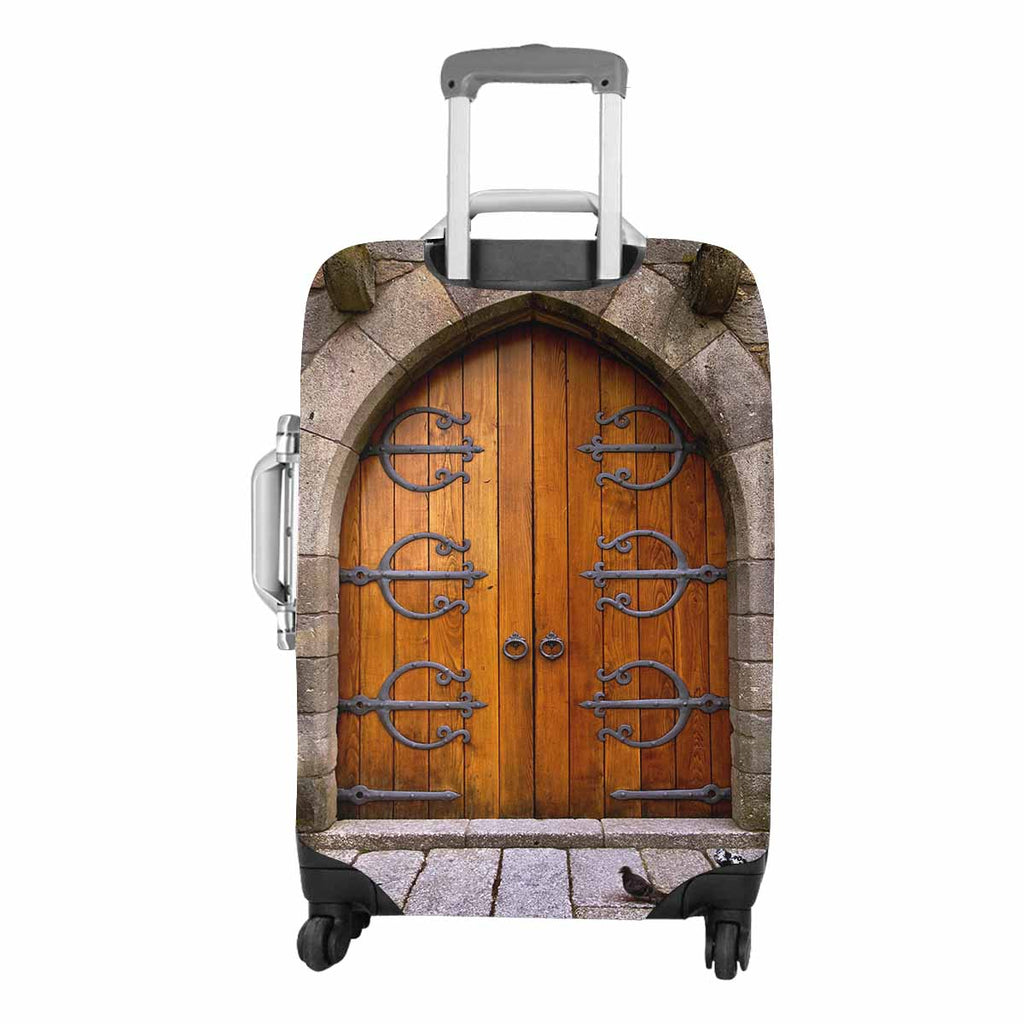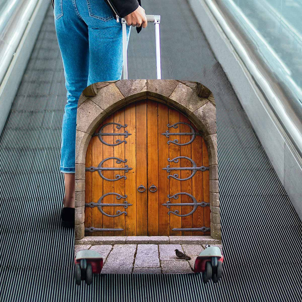 Rustic themed Cover for Luggage suitcase printed old wooden door with iron ornaments in a medieval castle