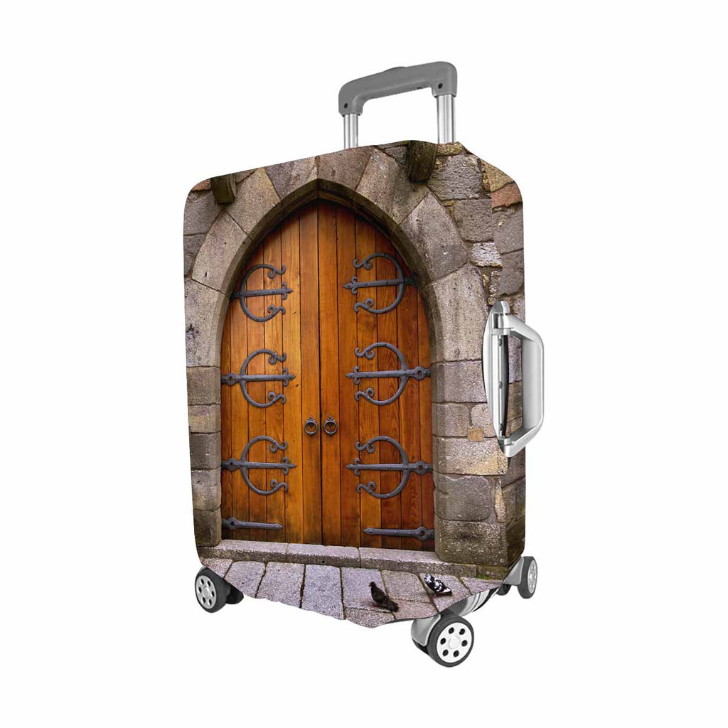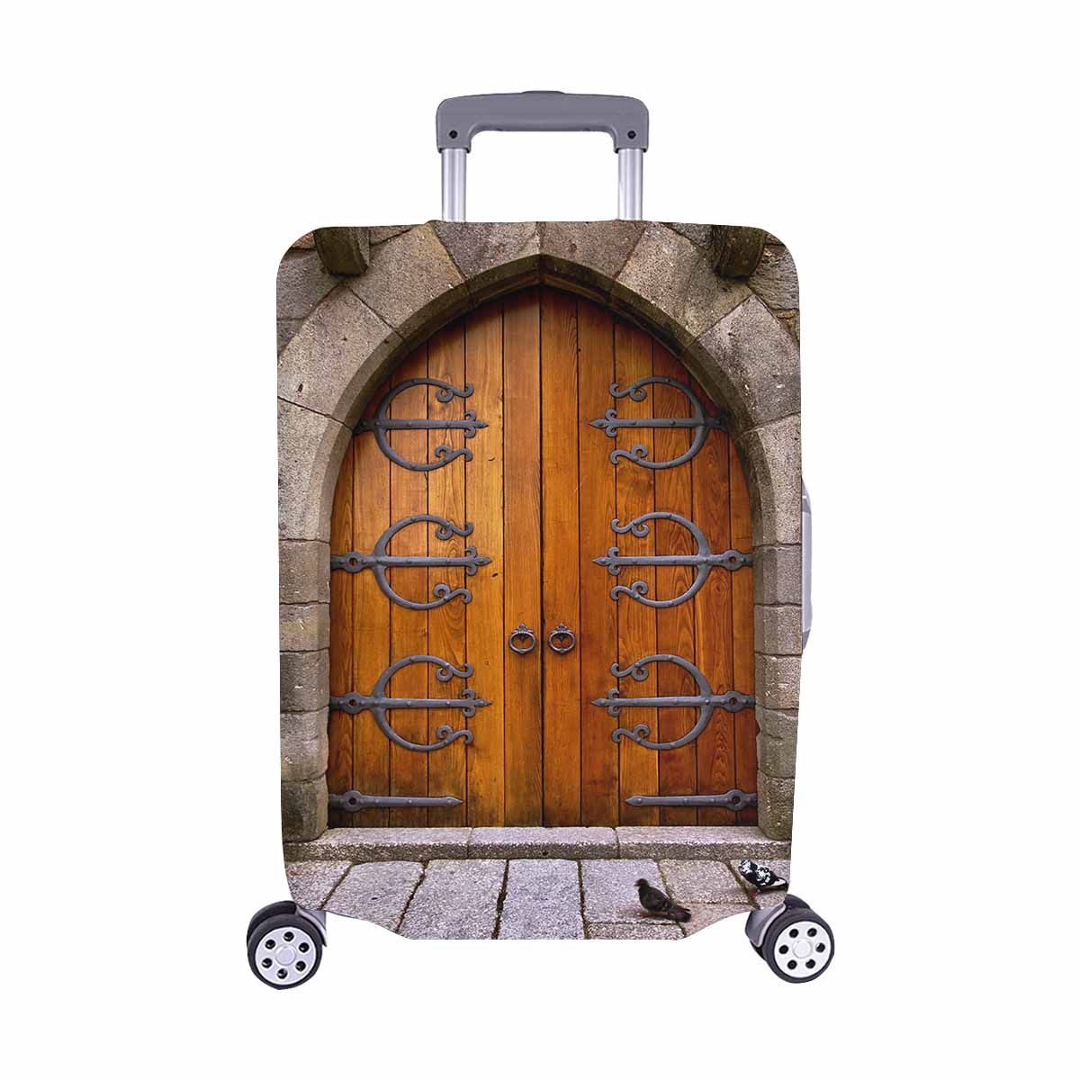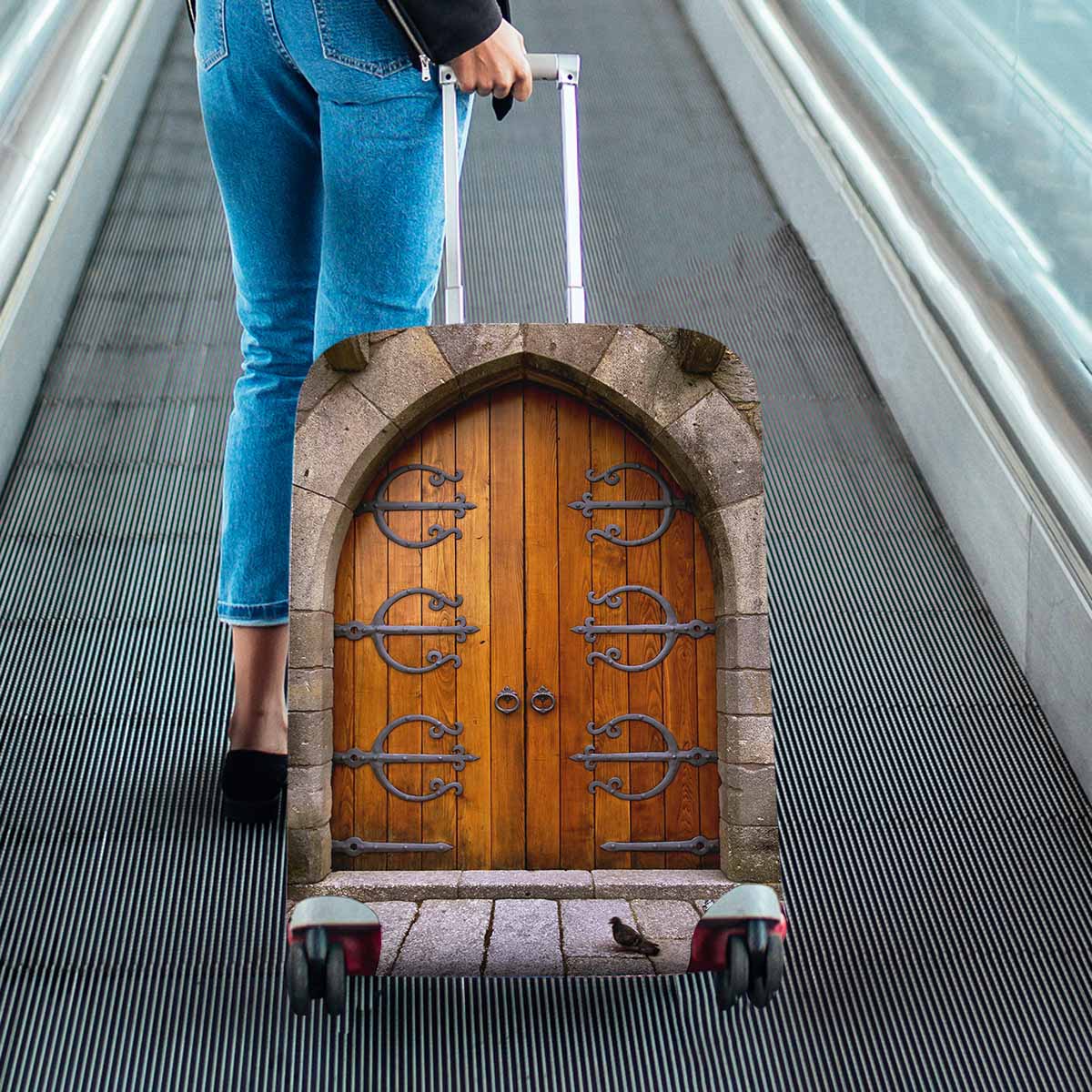 Rustic themed Cover for Luggage suitcase printed old wooden door with iron ornaments in a medieval castle