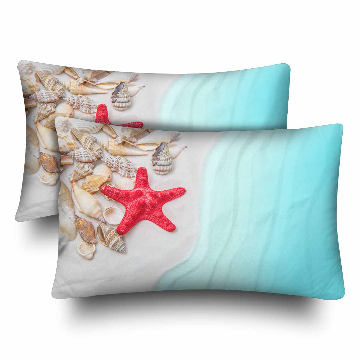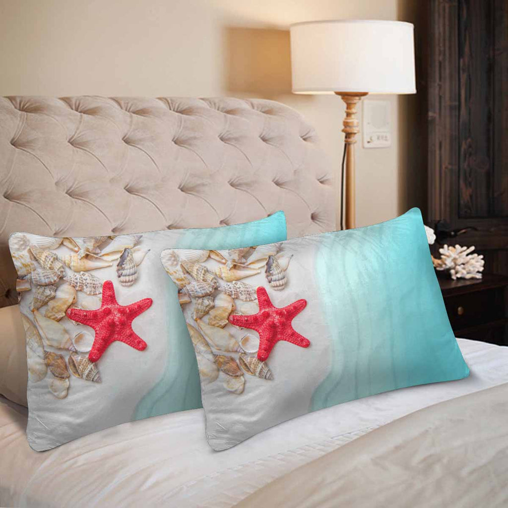 Tropical themed Rectangle Pillow Cases printed white sand, starfish and shells