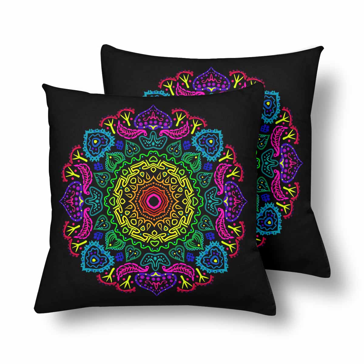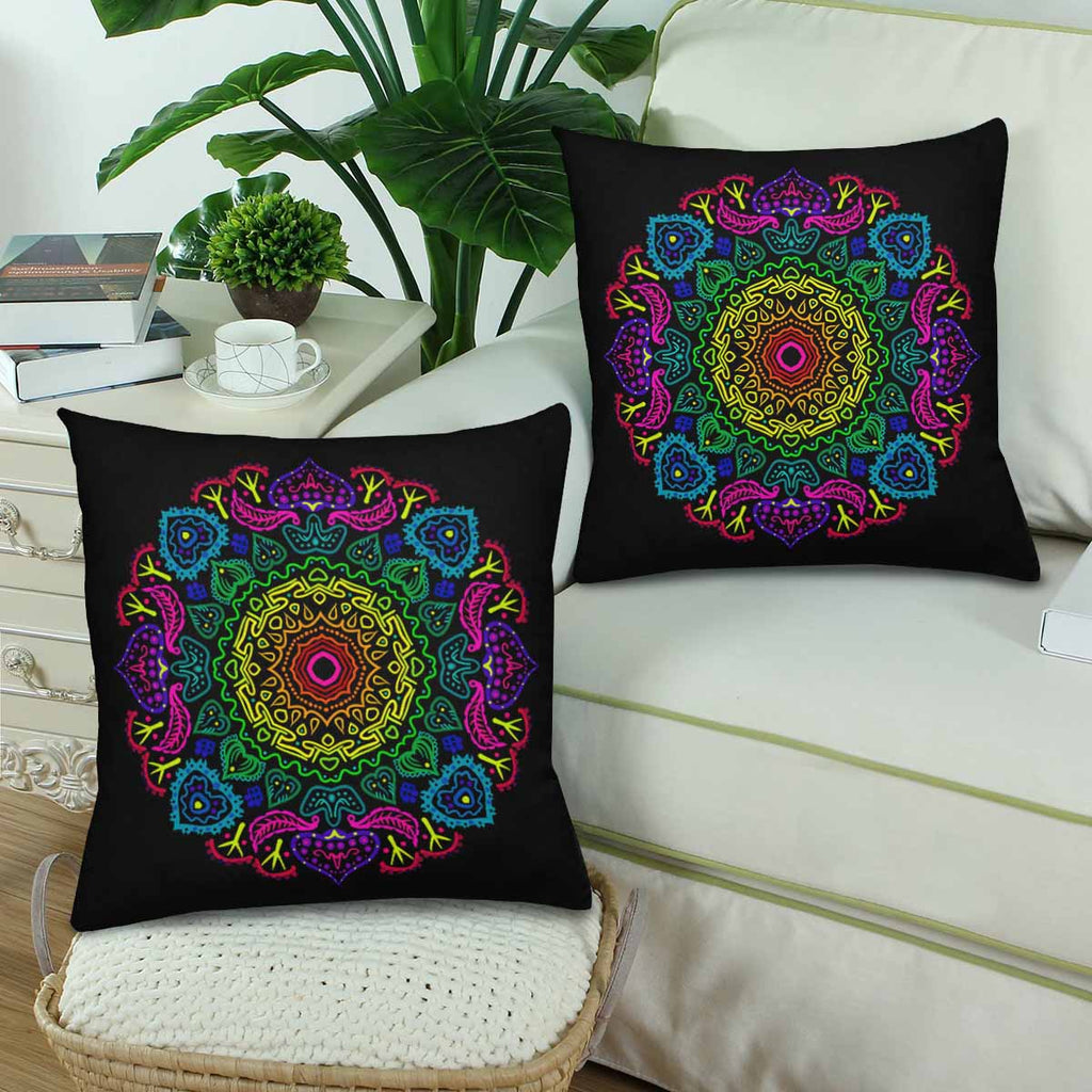 Mandala themed Pillow Cases printed with Mandala. Round Ornament Pattern on black background