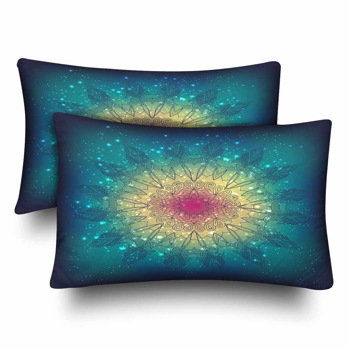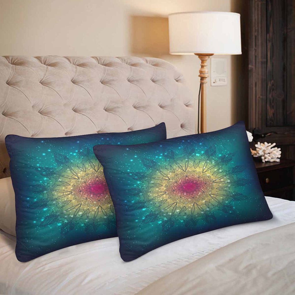Mandala themed Rectangle Pillow Cases printed Delicate lace round floral pattern on space background