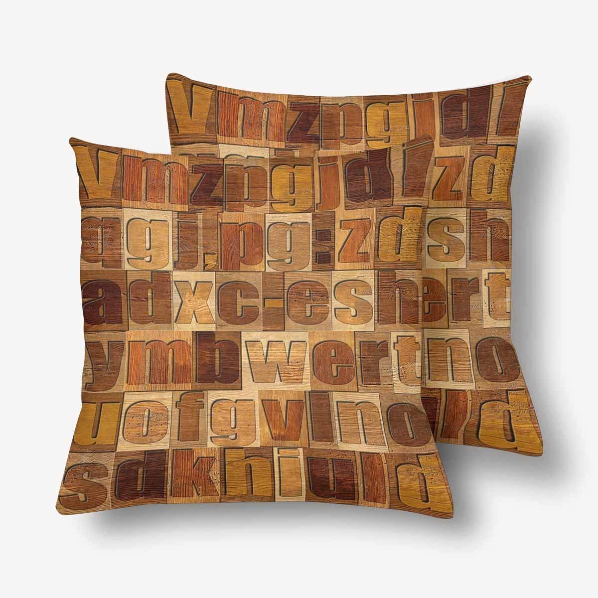 Different Letters Fine Natural Structure Wooden Surface Throw Pillow Covers 18x18 Set of 2, Pillow Cushion Cases Pillowcase for Home Couch Sofa Bedding Decorative