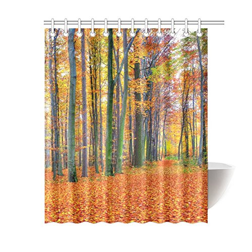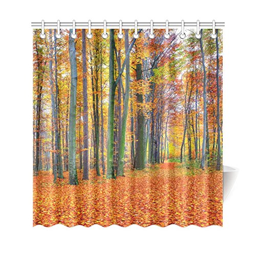 Autumn Landscape Home Bath Decor, Yellow Red Leaves Forest Polyester Fabric Shower Curtain Bathroom Sets