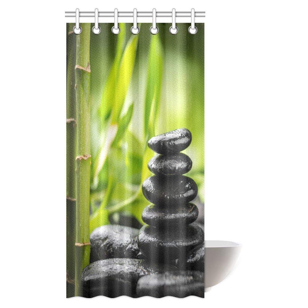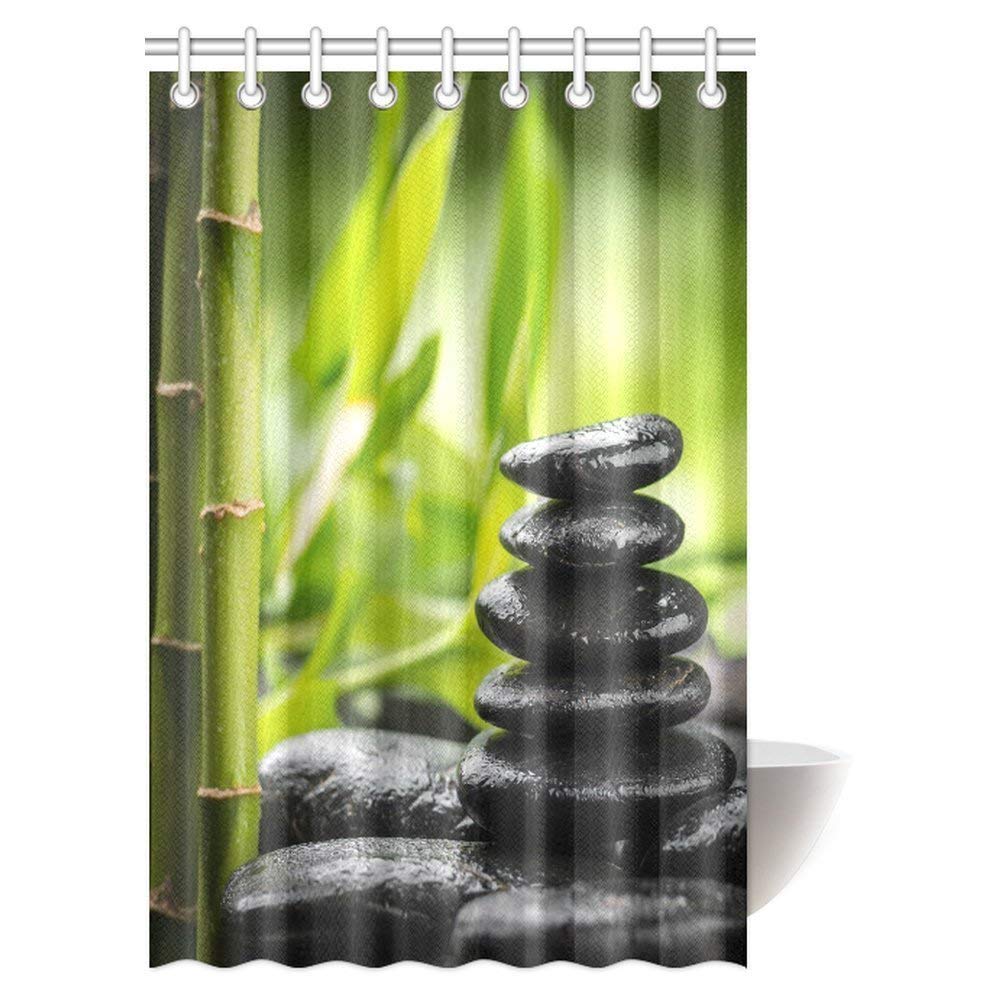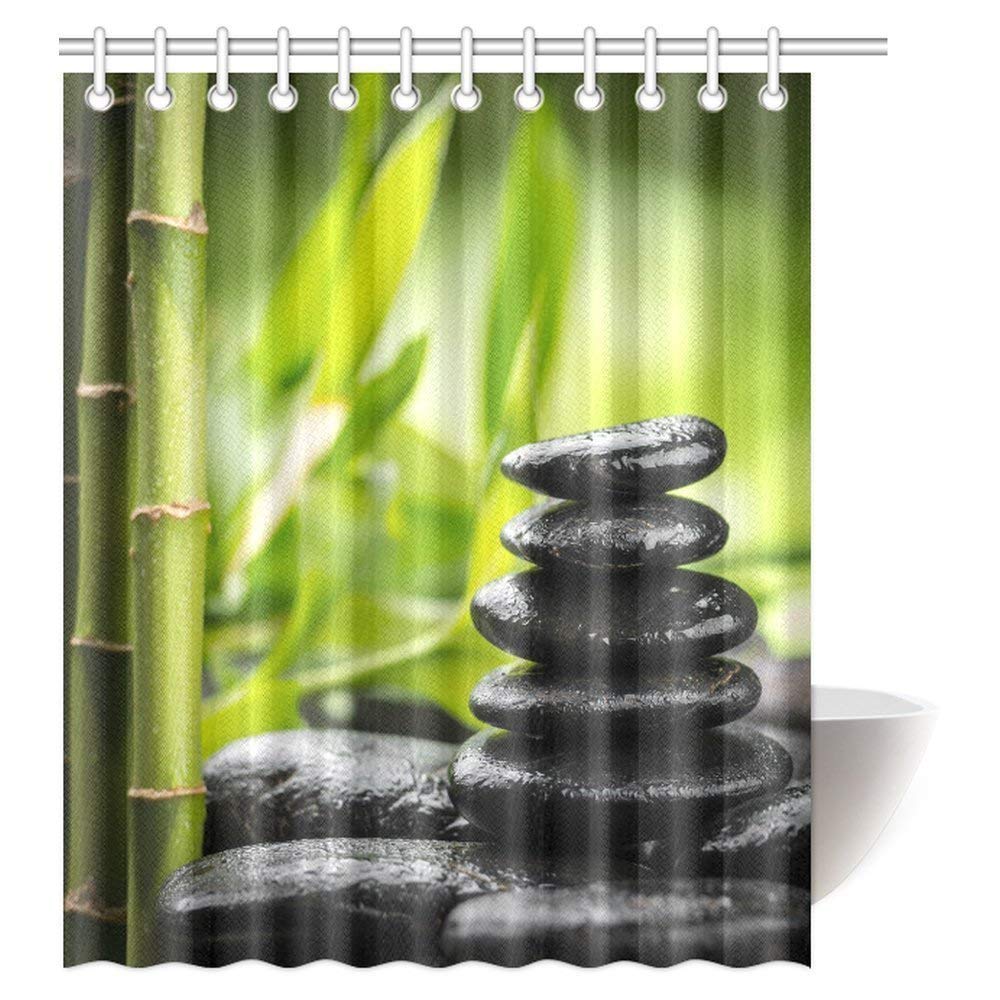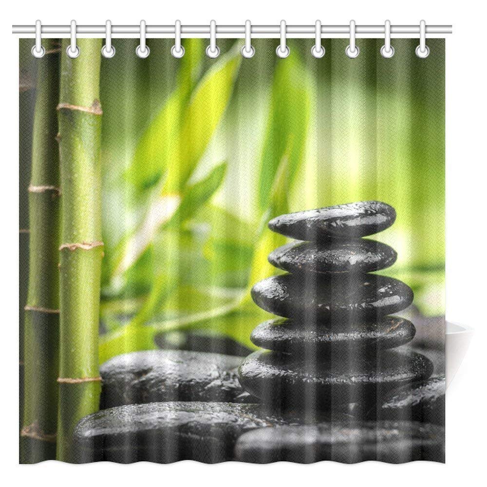 Bamboos Spa Decor Shower Curtain, Japanese Therapy and Relaxation Stones Design Fabric Bathroom Shower Curtain with Hooks