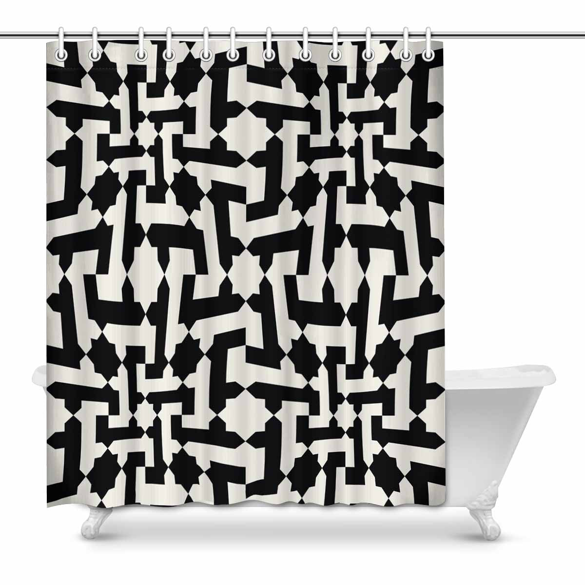 Bathroom Shower Curtain 60in*70in with black Arabic geometric pattern