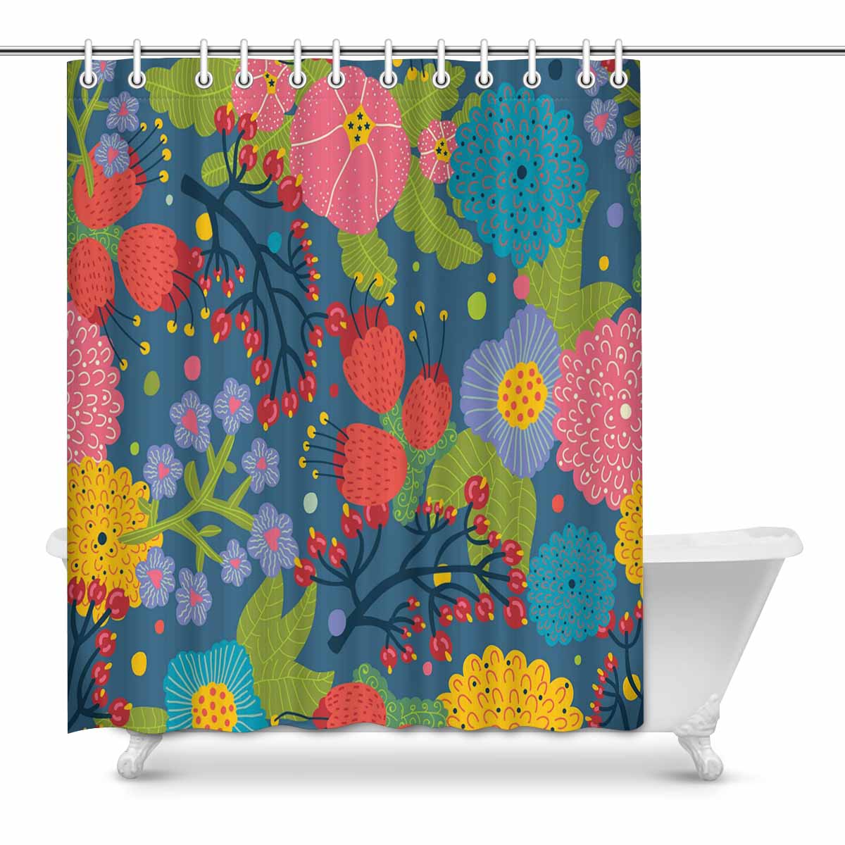 Bathroom Shower Curtain 60in*70in with doodle Flower pattern