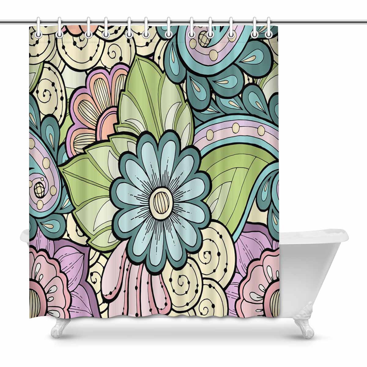 Bathroom Shower Curtain 60in*70in with ethnic stylized flowers pattern