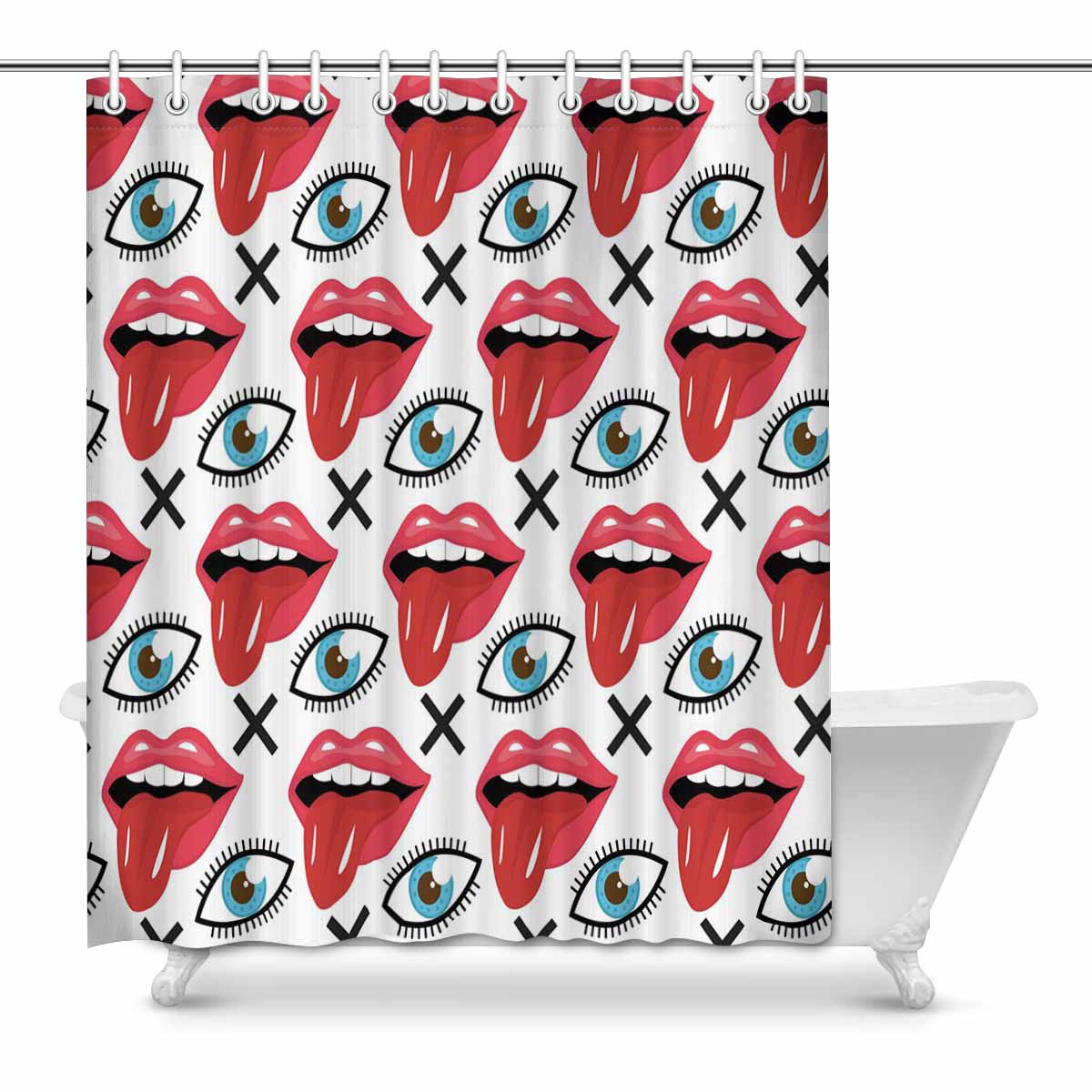 Bathroom Shower Curtain 60in*70in with Lips tongue and eye pattern