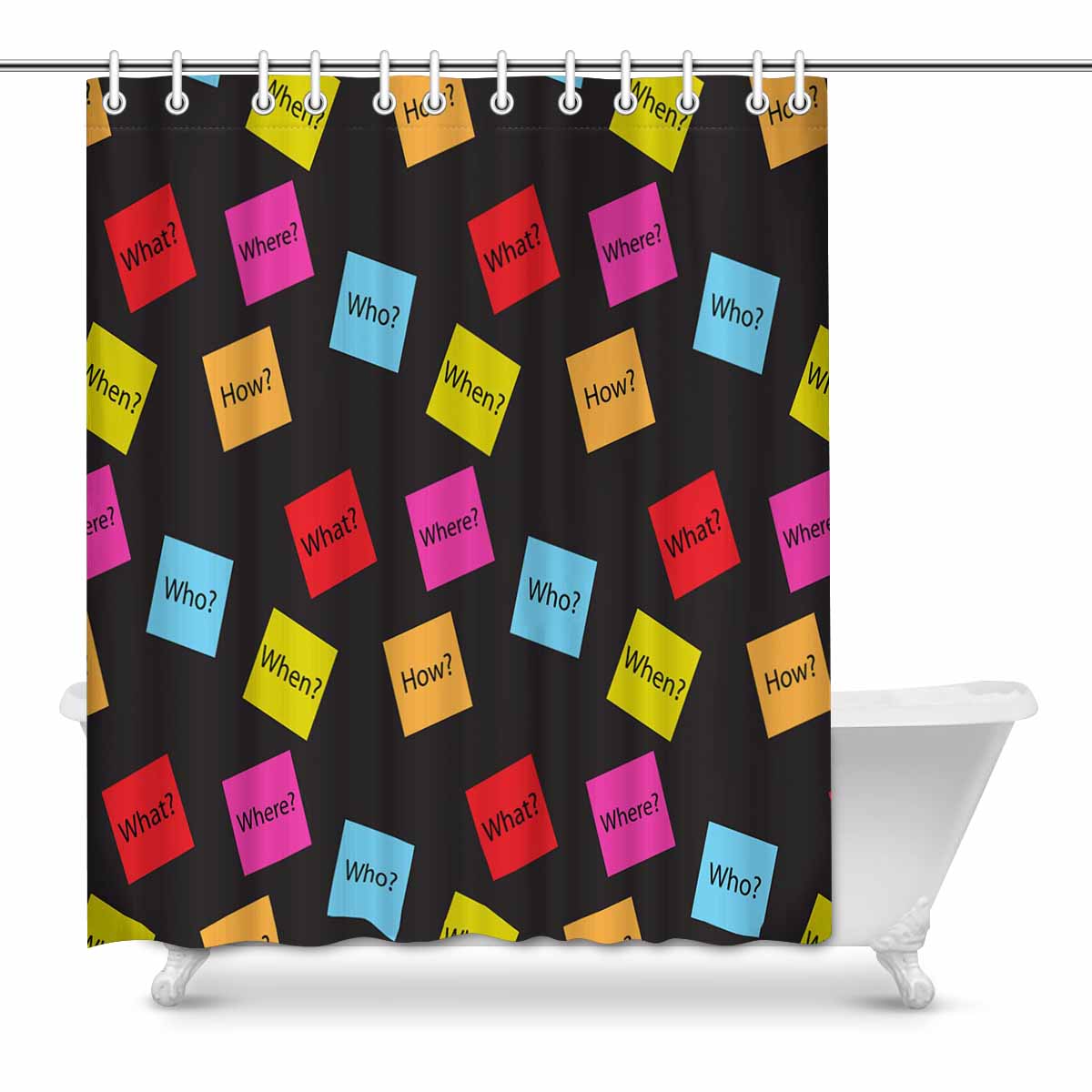 Bathroom Shower Curtain 60in*70in with Question words in square scattered pattern