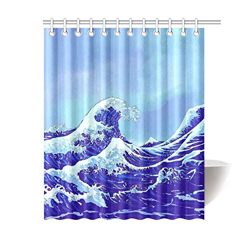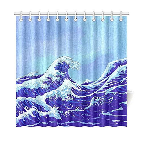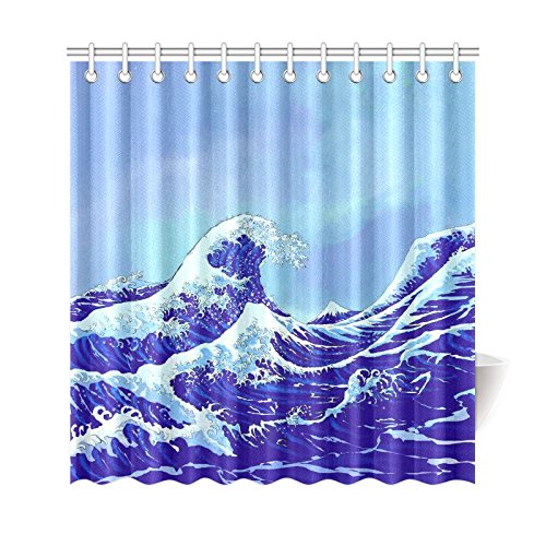 Blue Ocean Home Bath Decor, Great Wave Polyester Fabric Shower Curtain Bathroom Sets