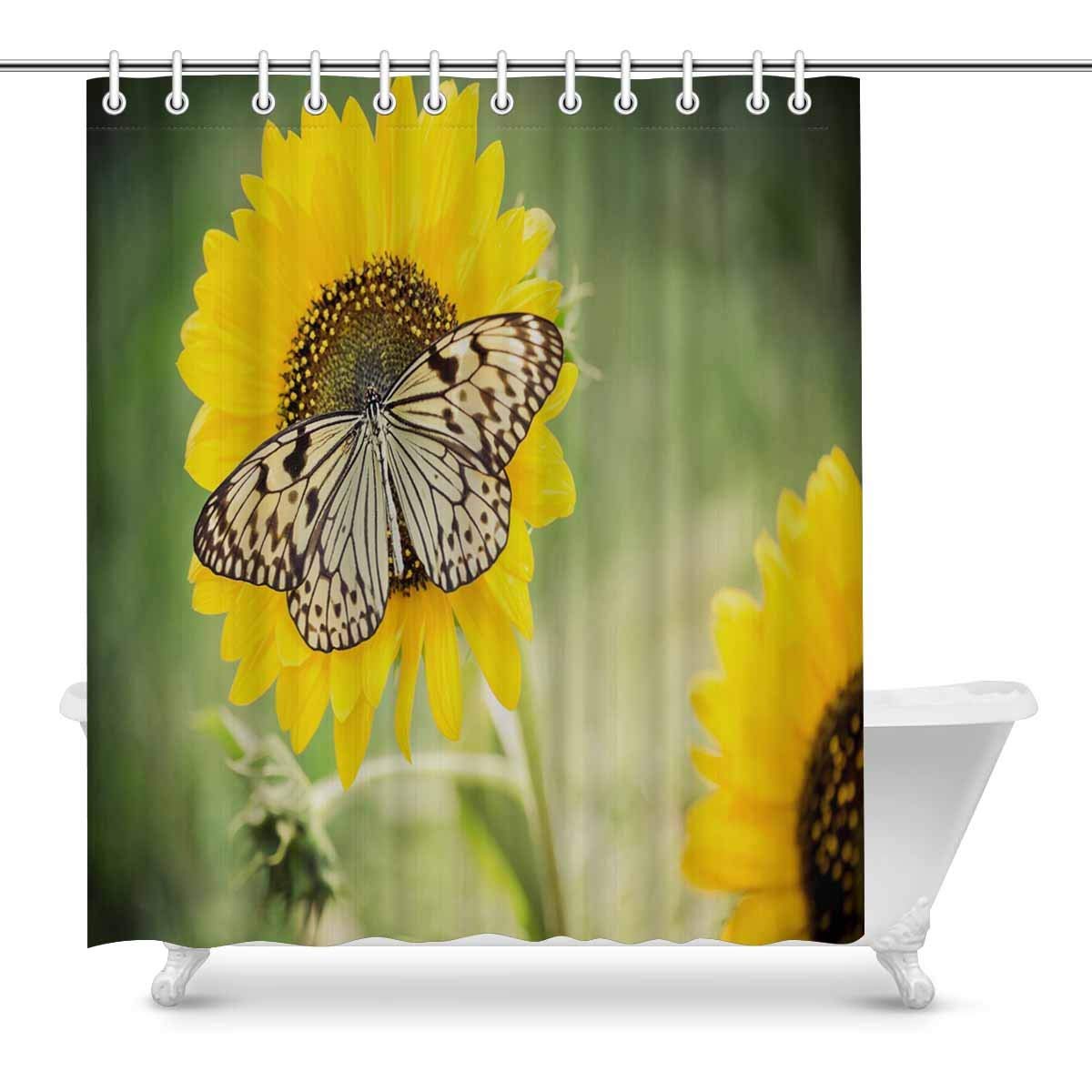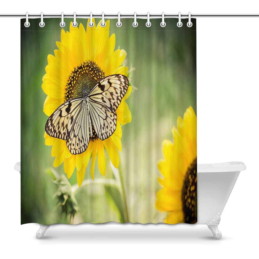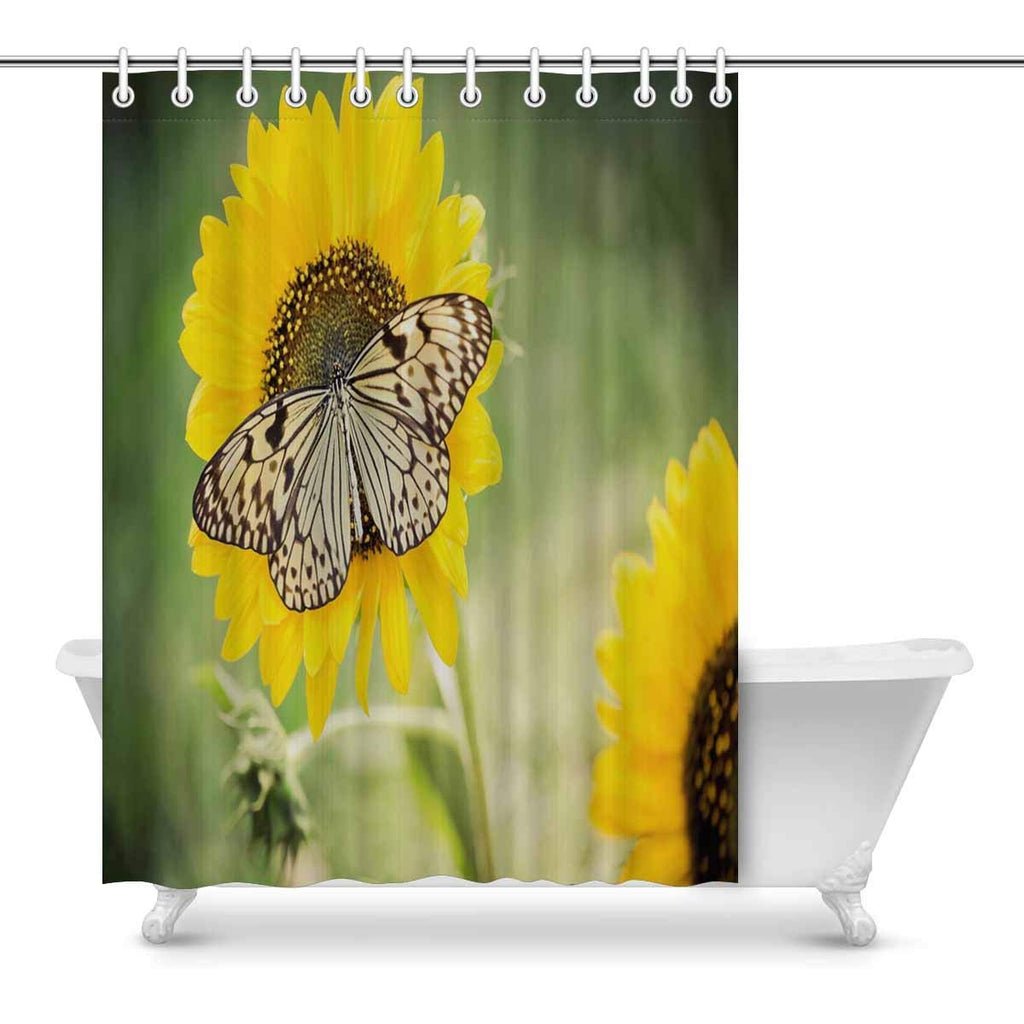 Butterfly on Spring Sunflower Art Digital Print Polyester Fabric Shower Curtain