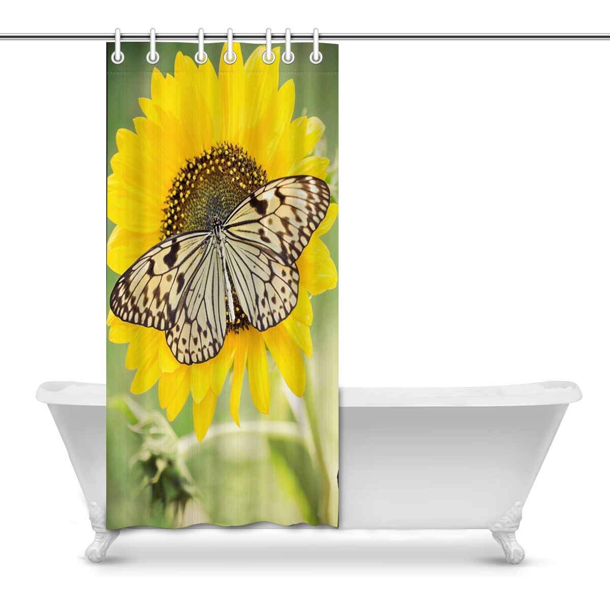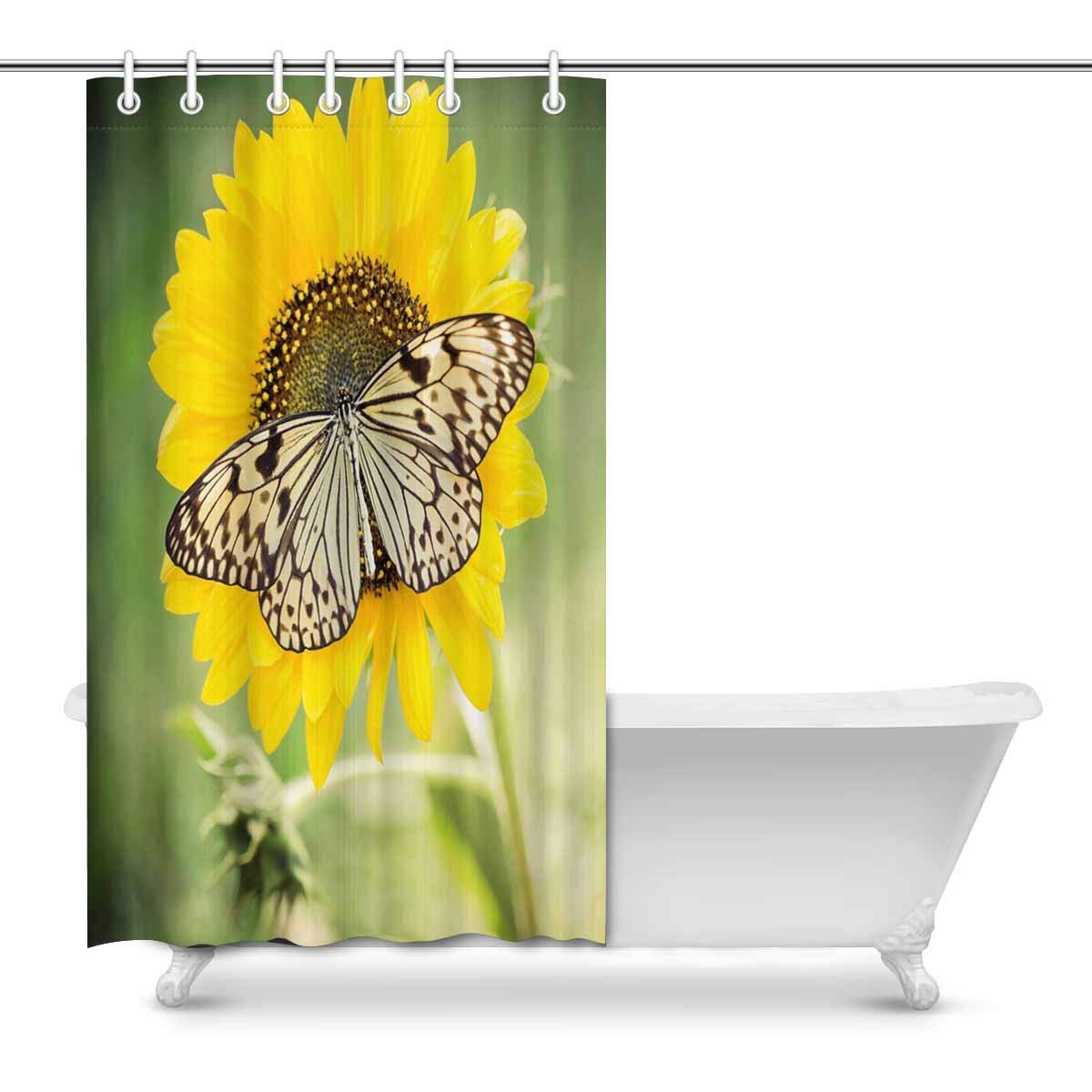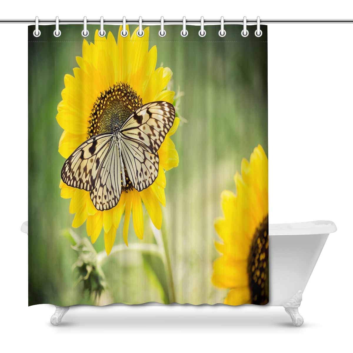 Butterfly on Spring Sunflower Art Digital Print Polyester Fabric Shower Curtain