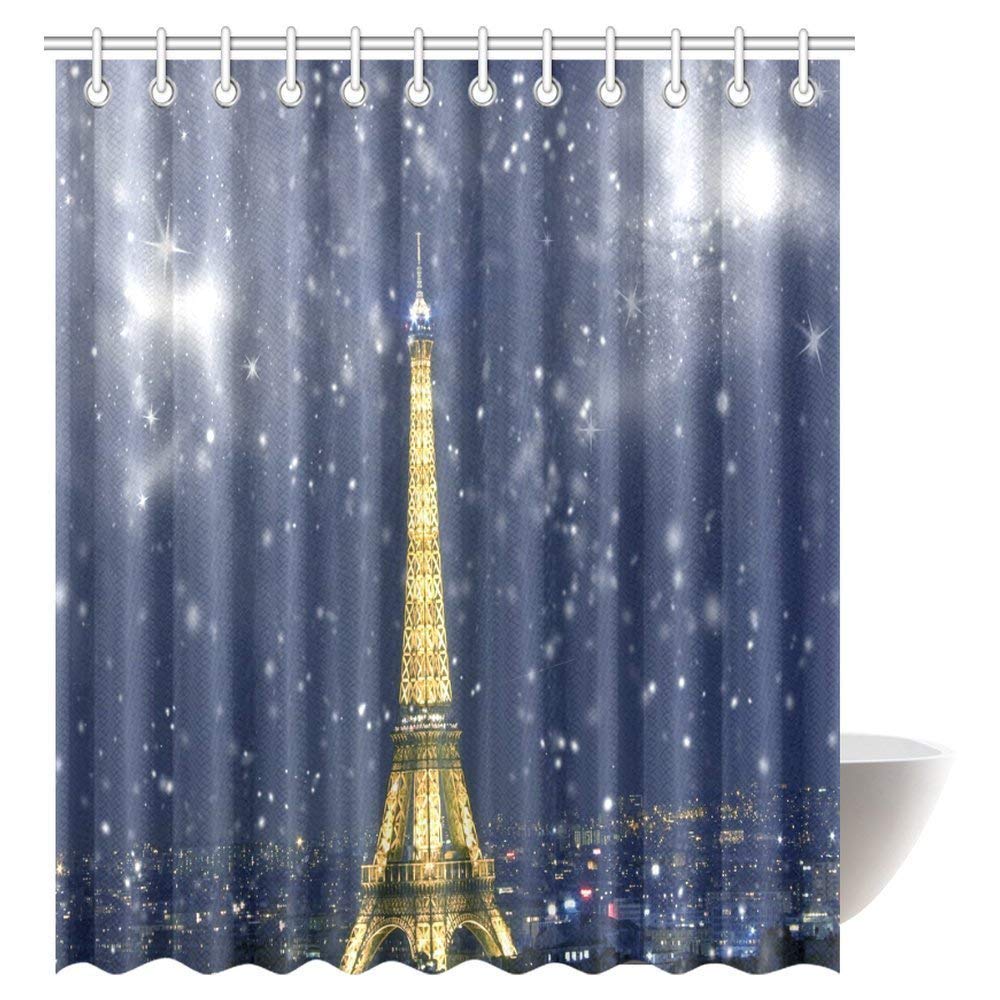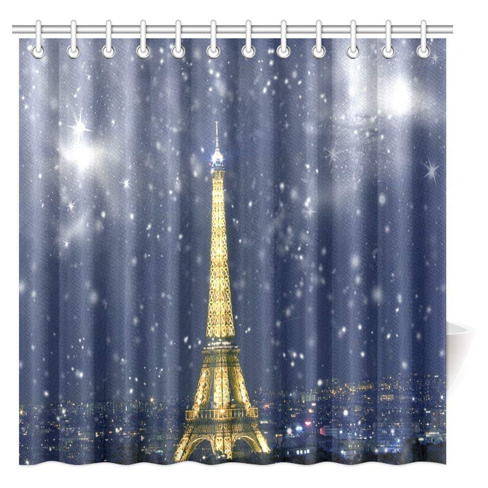 Celebration of Christmas in Paris Shower Curtain, Eiffel Tower With Snowflakes Bathroom Shower Curtain Set with Hooks