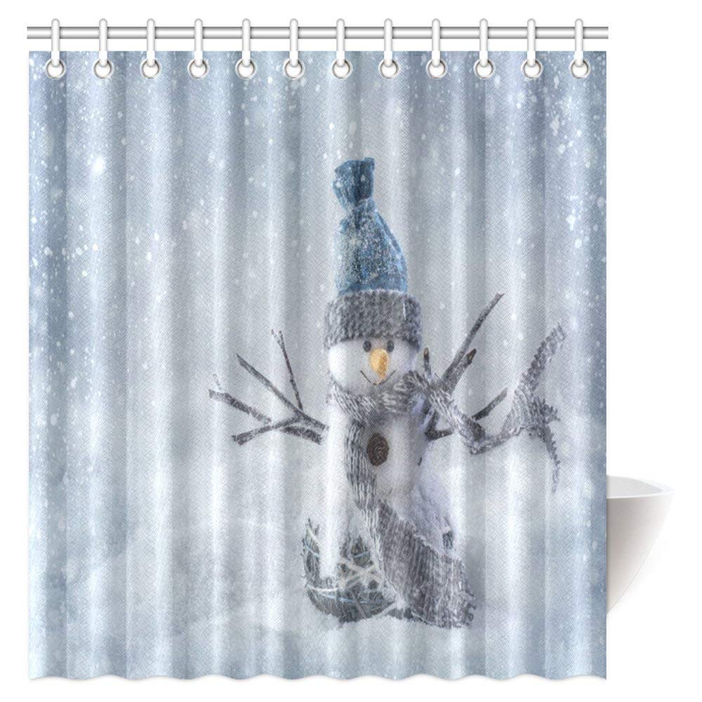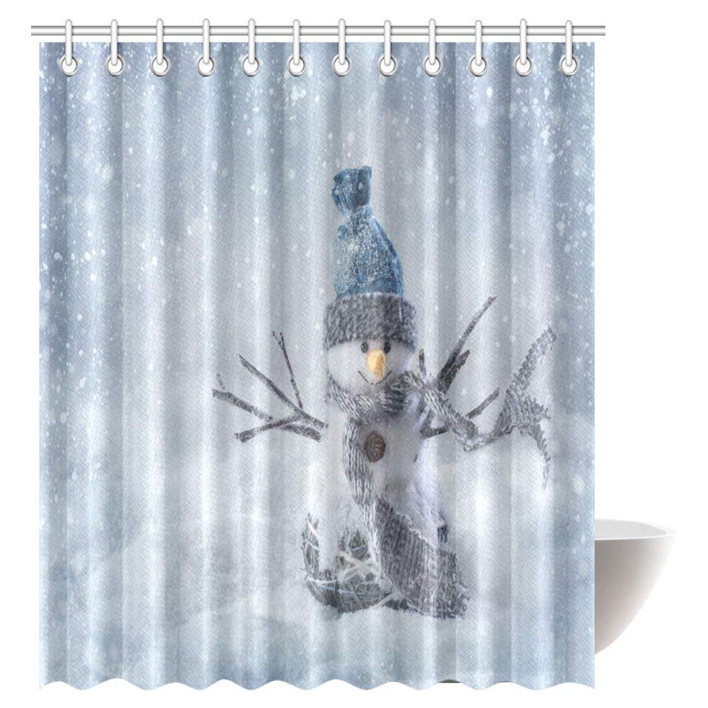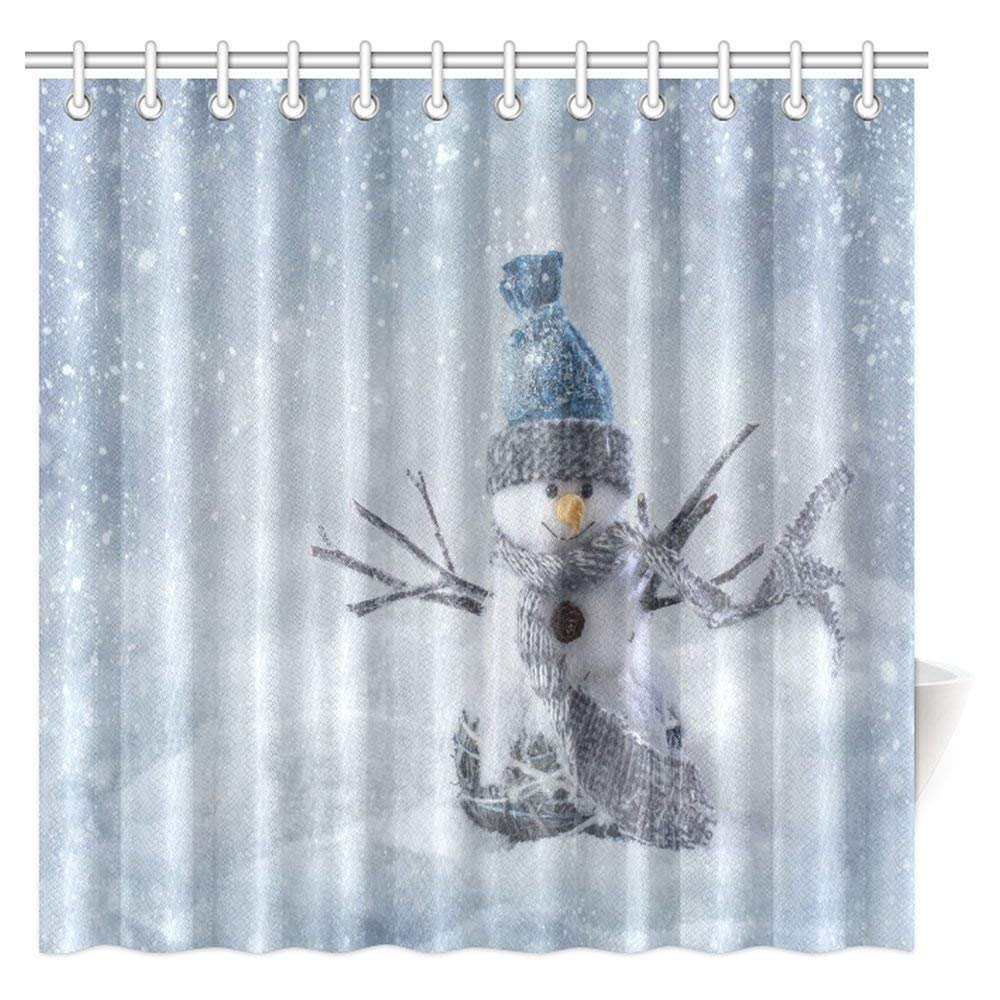 Christmas Shower Curtain Set, Smiling Snowman Standing in the Snow Fabric Bathroom Shower Curtain