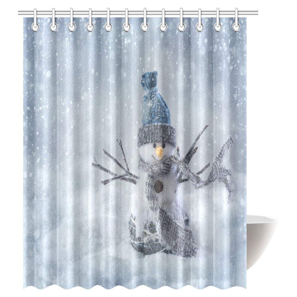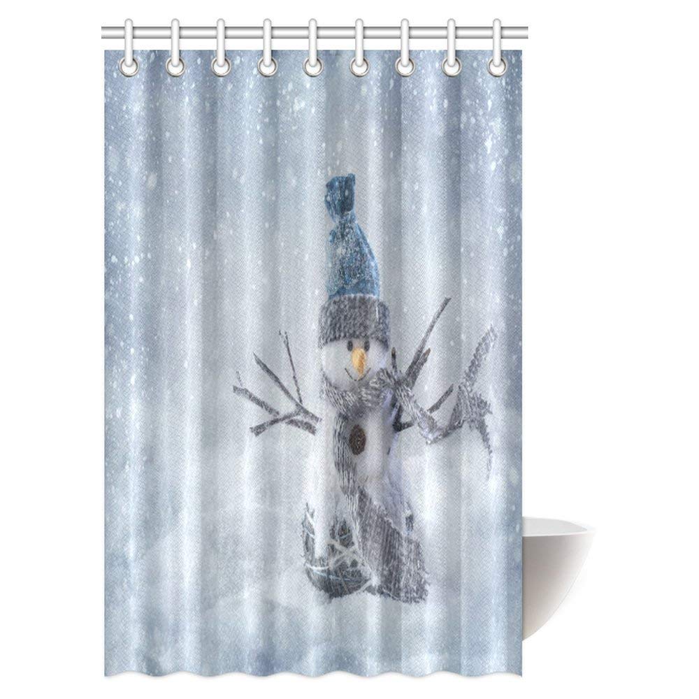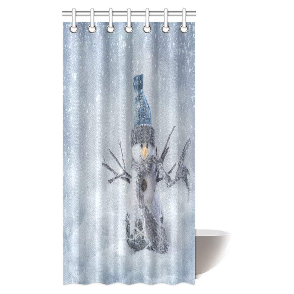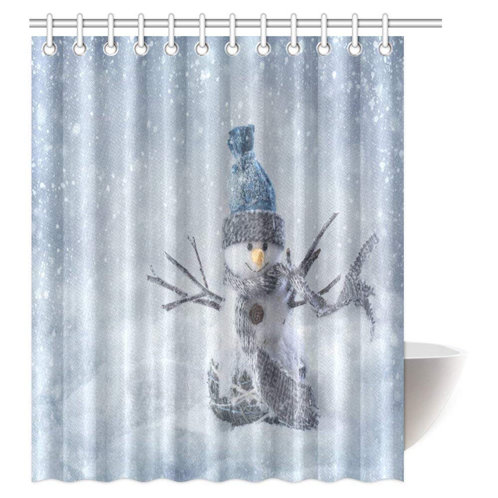 Christmas Shower Curtain Set, Smiling Snowman Standing in the Snow Fabric Bathroom Shower Curtain