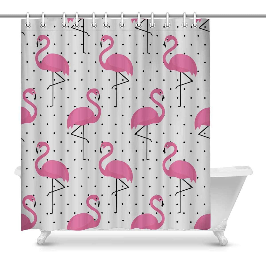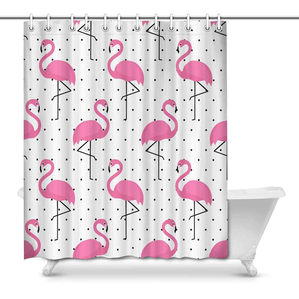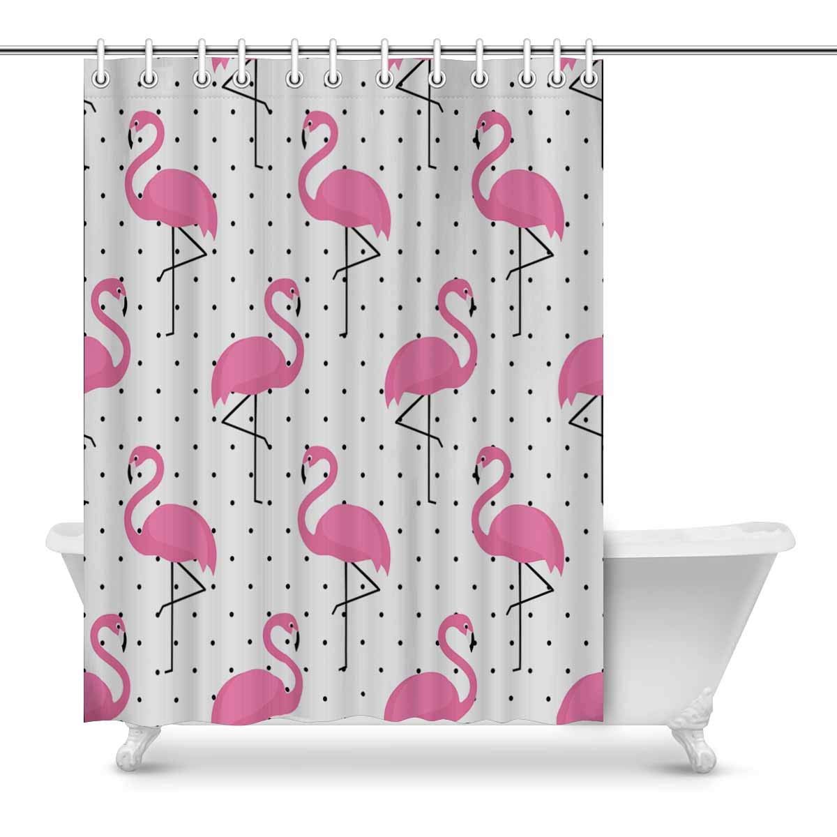 Flamingo Pattern on Polka Dots Fabric Bathroom Shower Curtain Set