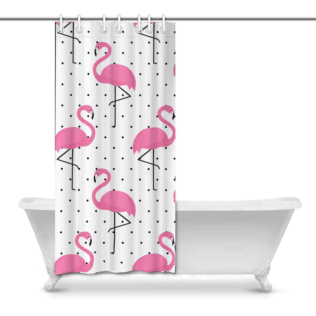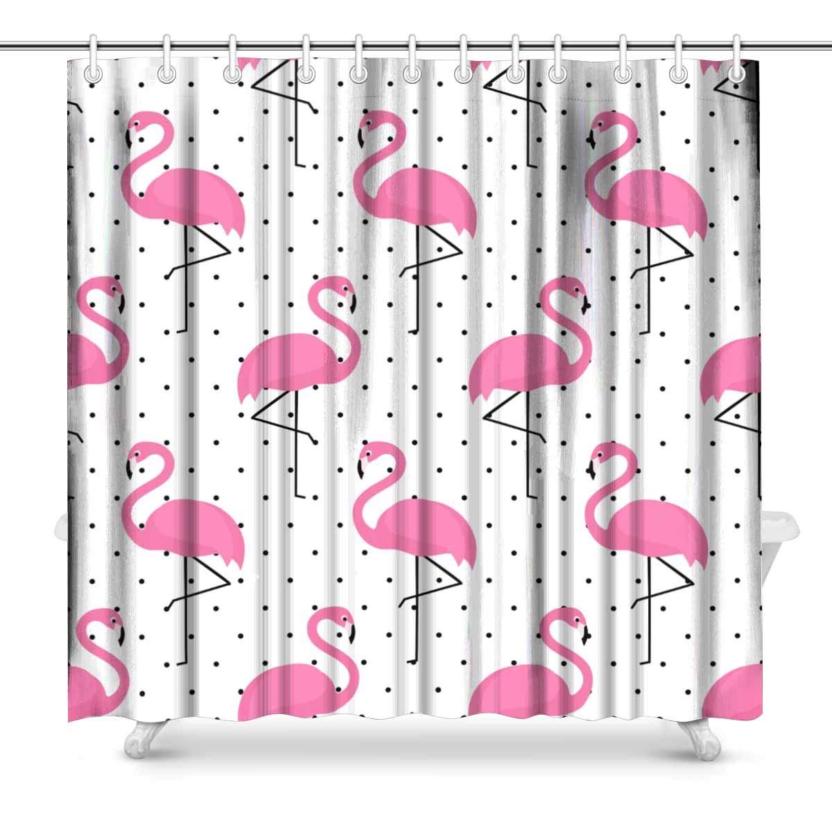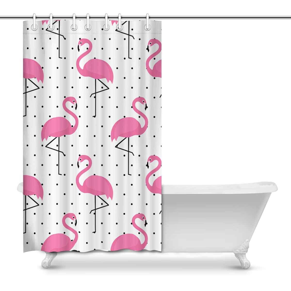 Flamingo Pattern on Polka Dots Fabric Bathroom Shower Curtain Set